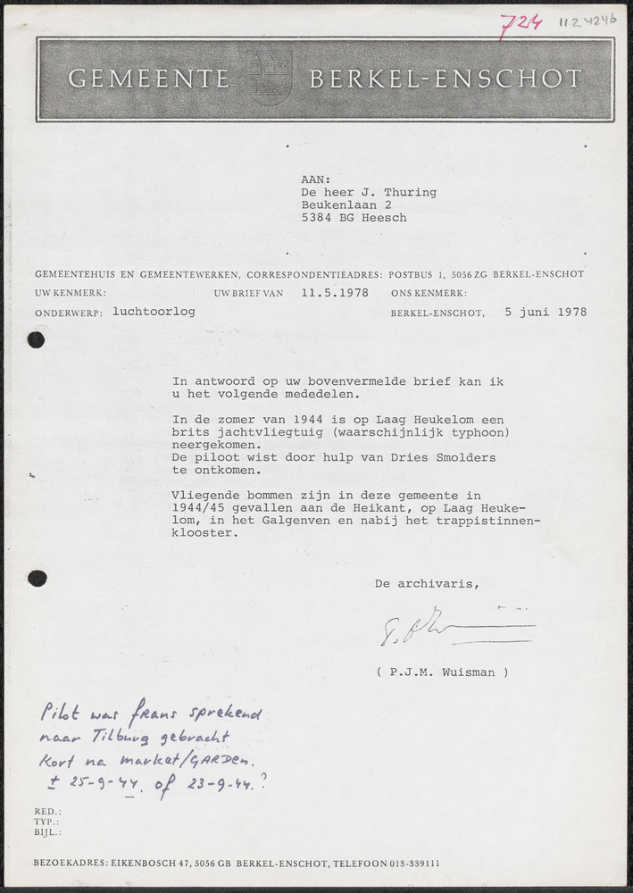 Brief van Gemeente Berkel-Enschot 5 juni 1978.