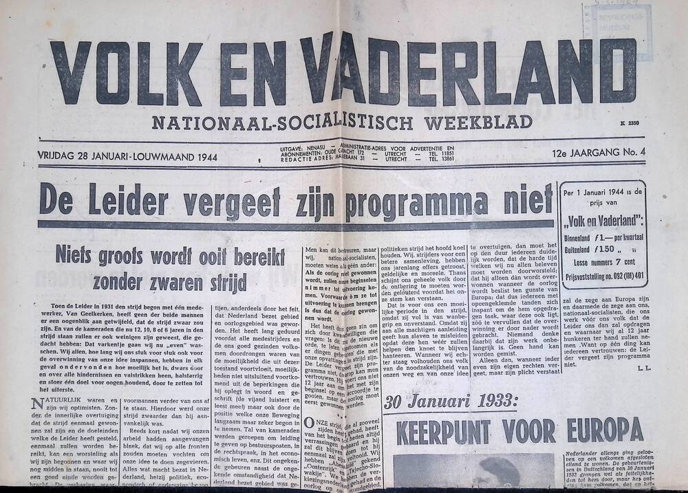 Volk en Vaderland, jaargang 1944: 28 januari