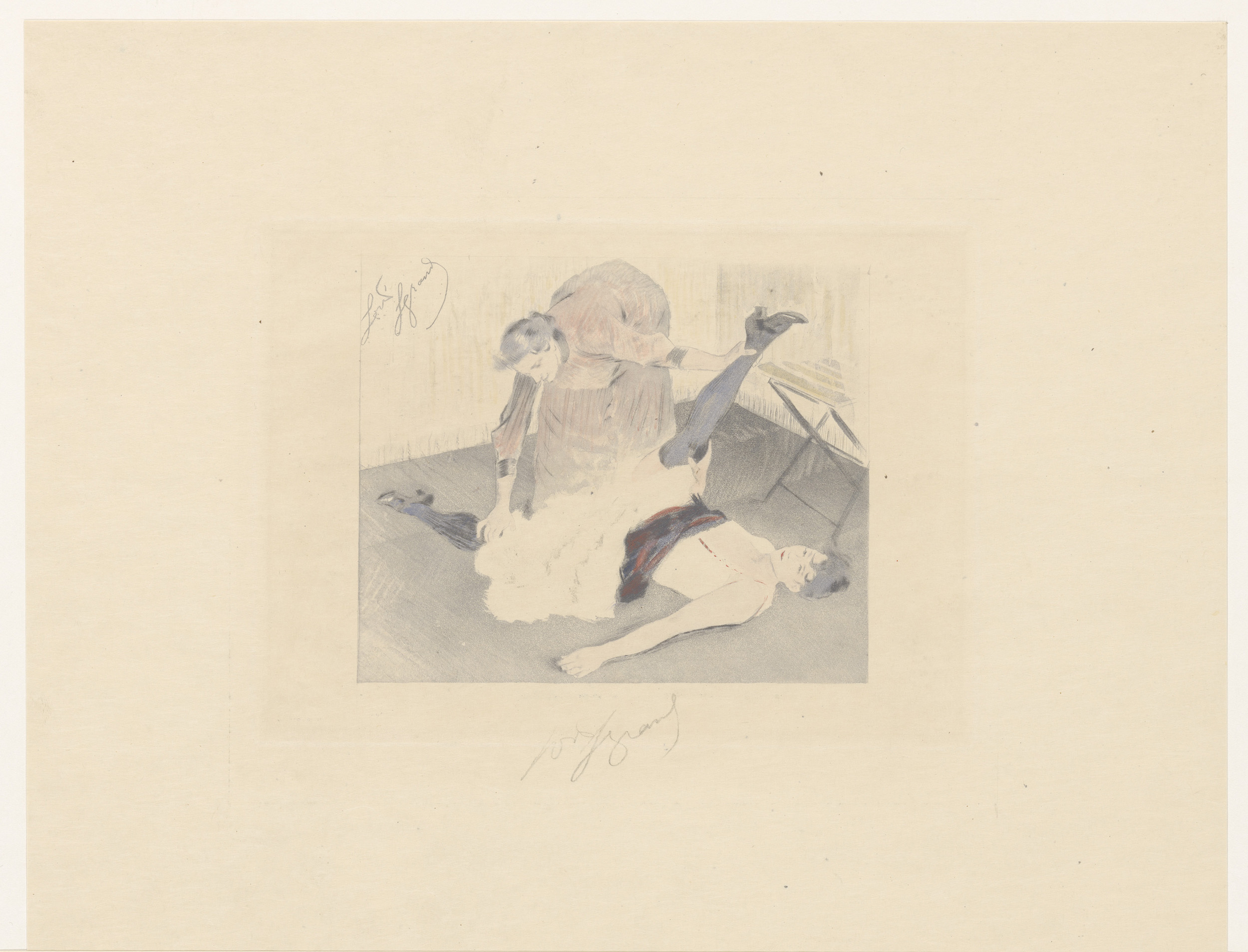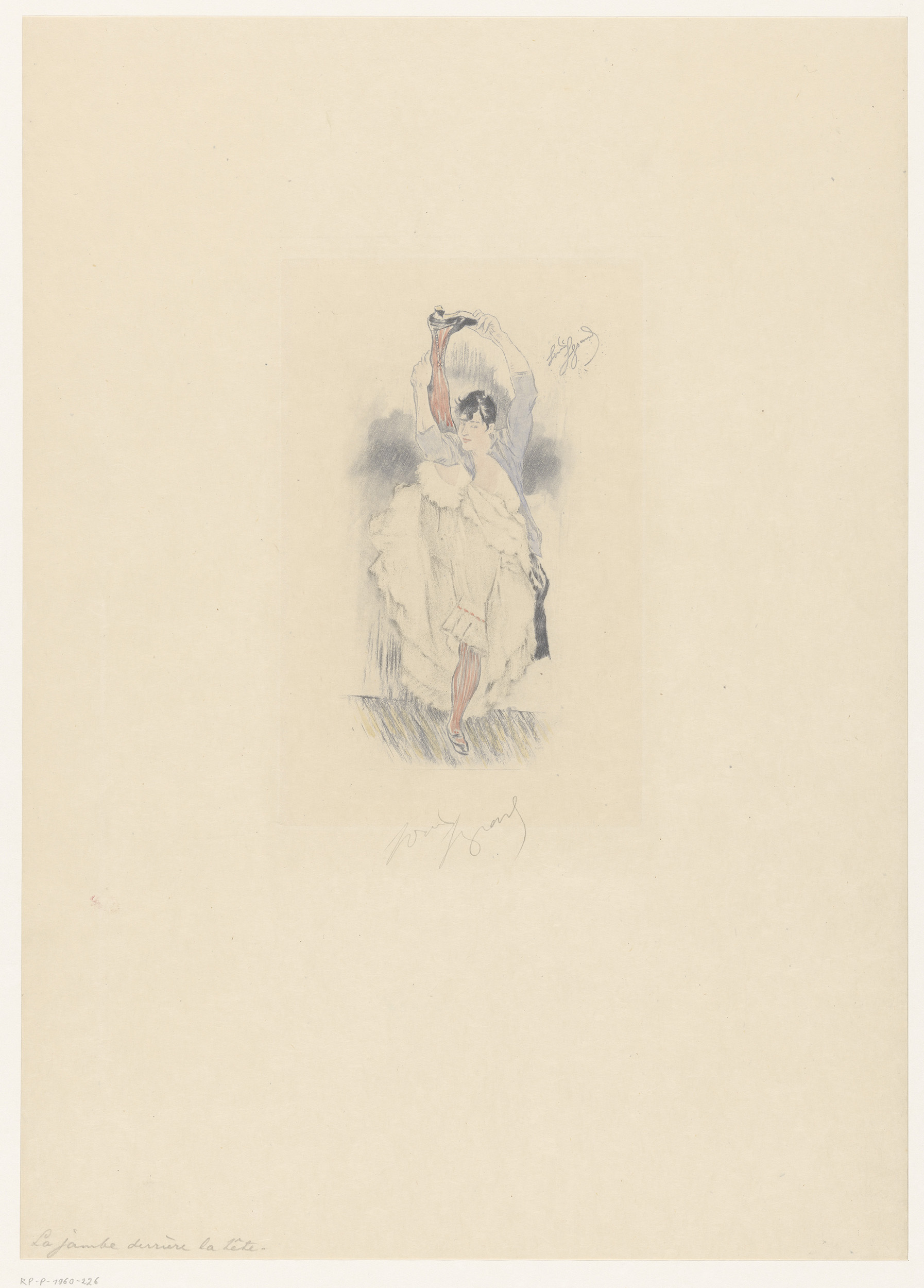 Cancan-danseres met gestrekt been achter haar hoofd