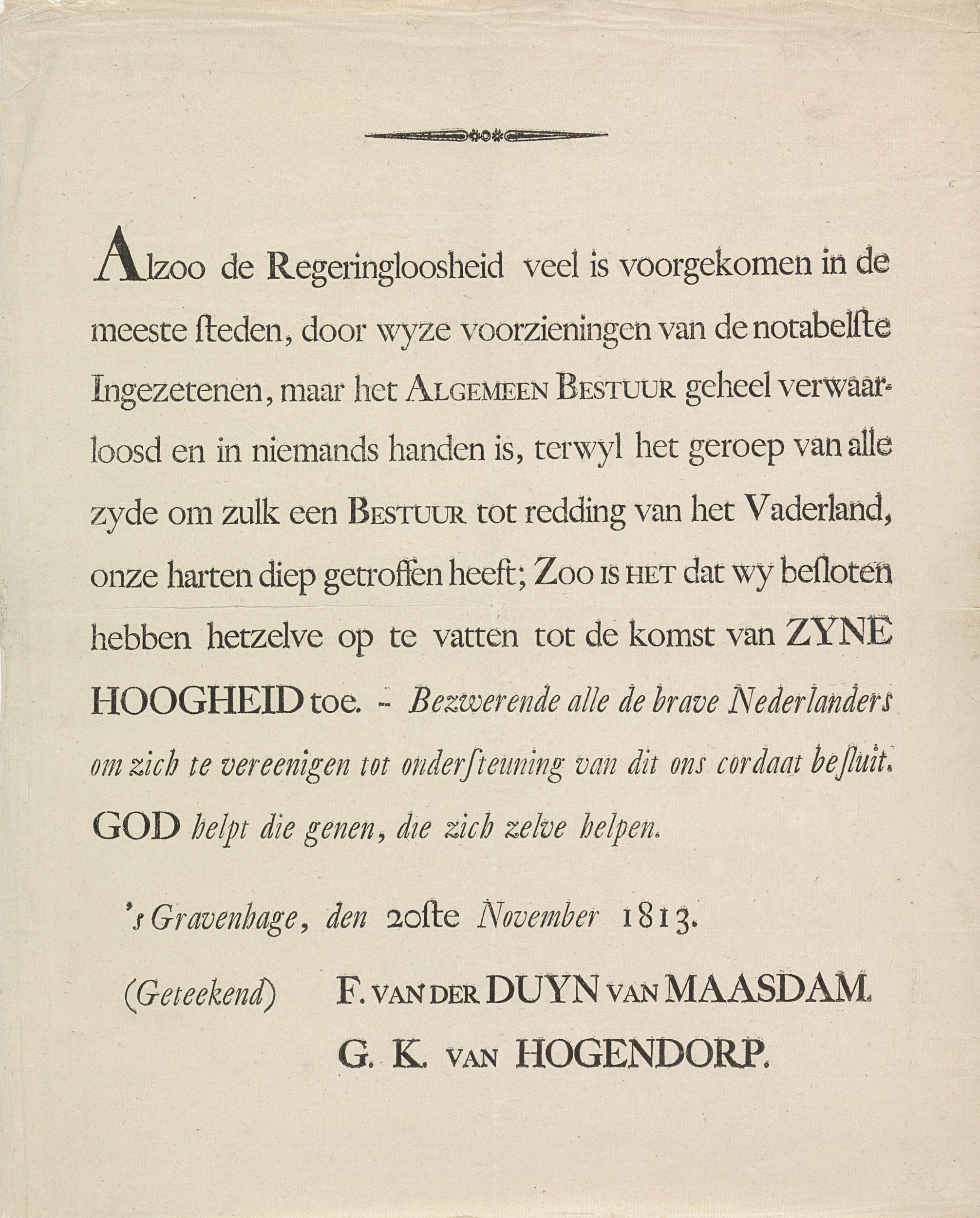 Proclamatie van A.F. van der Duyn en G.K. van Hogend...