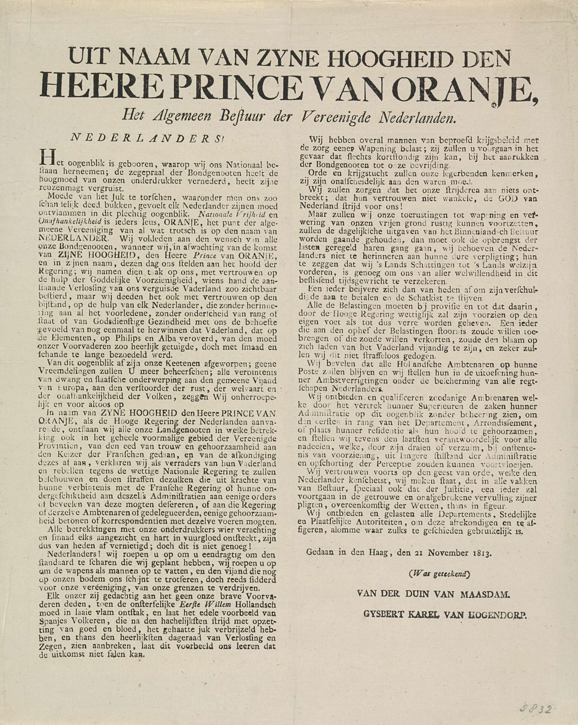 Proclamatie van de Prins van Oranje bij zijn aankoms...
