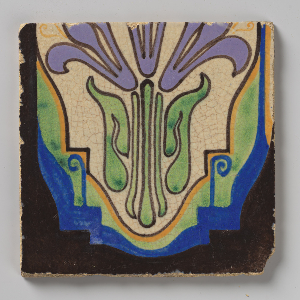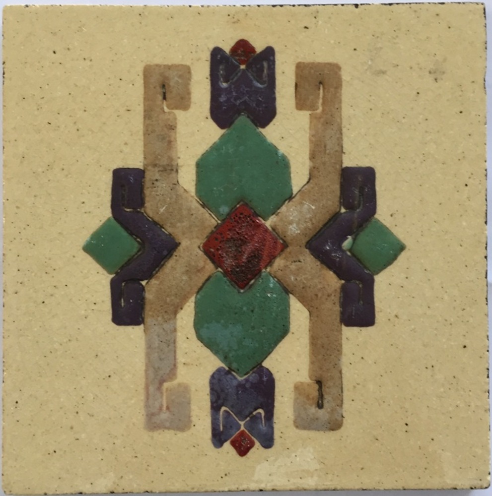 tegel van keramiek met engobe, voorstellende: geomet...
