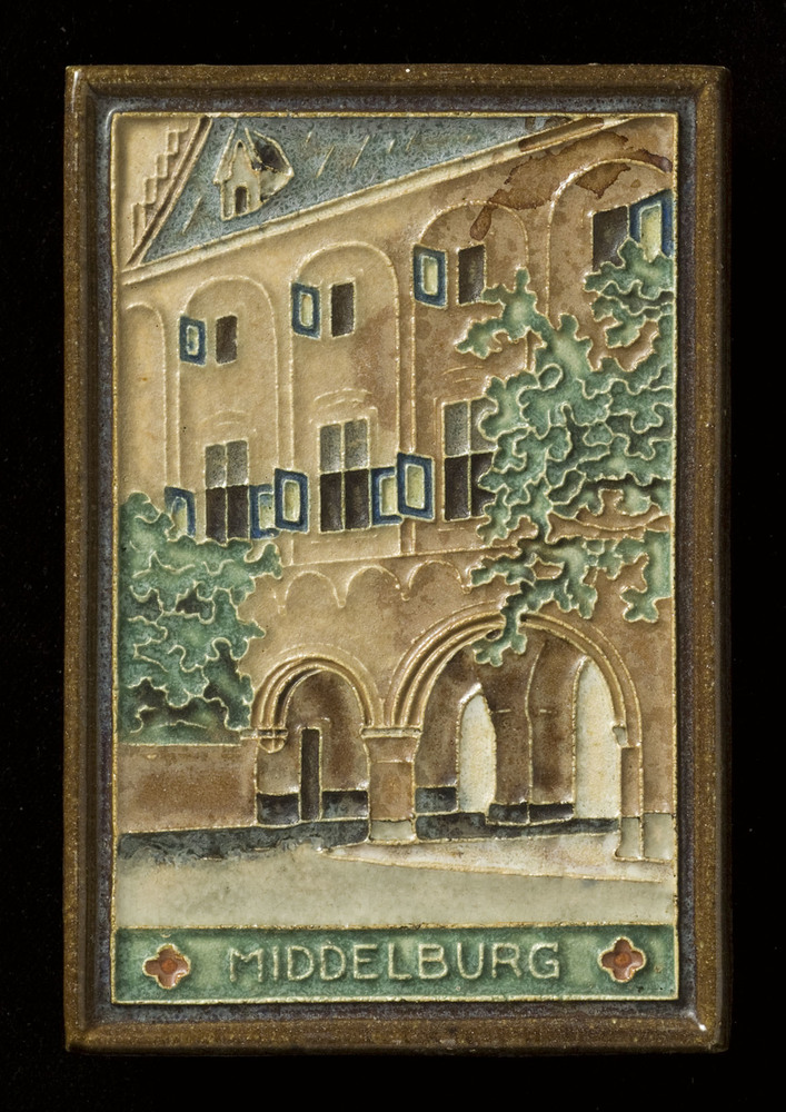 tableautegel van aardewerk in onderglazuur, voorstel...