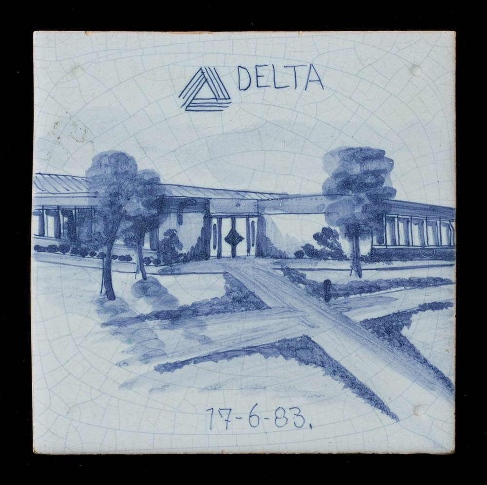 Tegel van keramiek met tinglazuur, voorstellende: De...