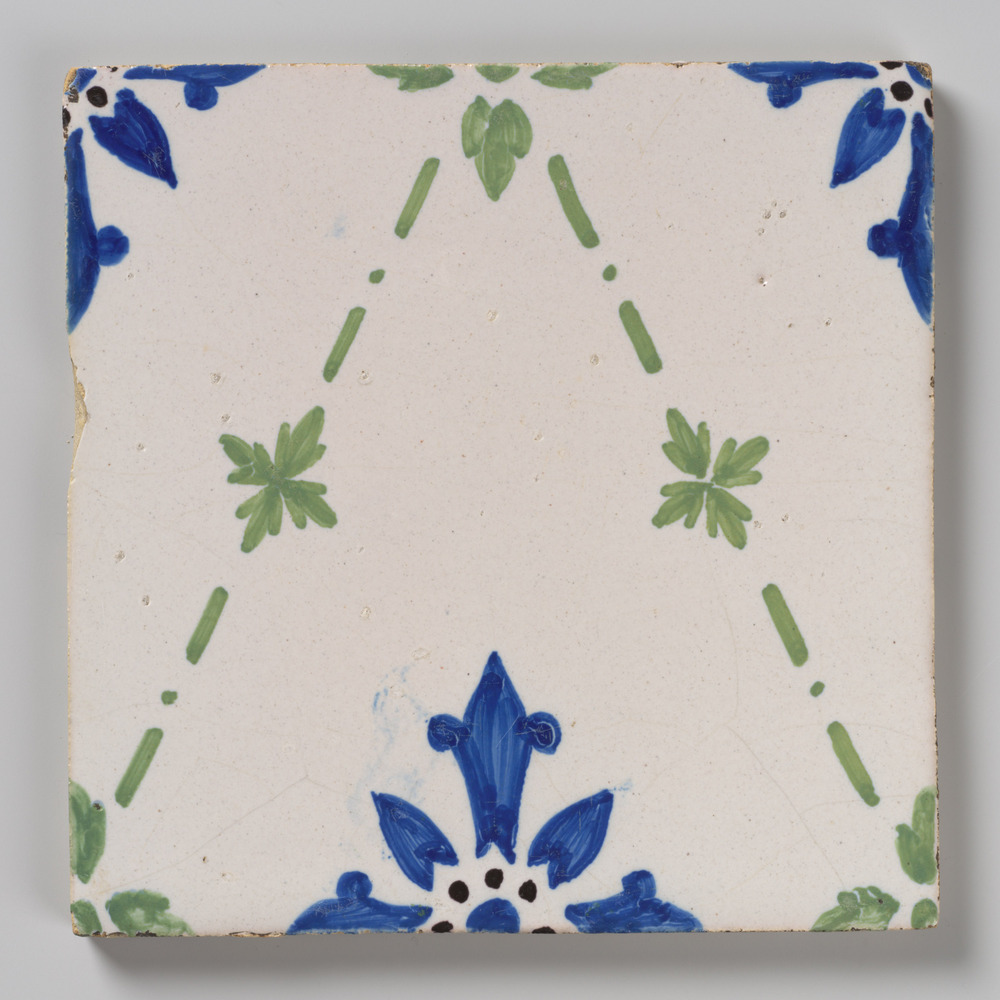 Tegel van keramiek met tinglazuur, voorstellende: Se...