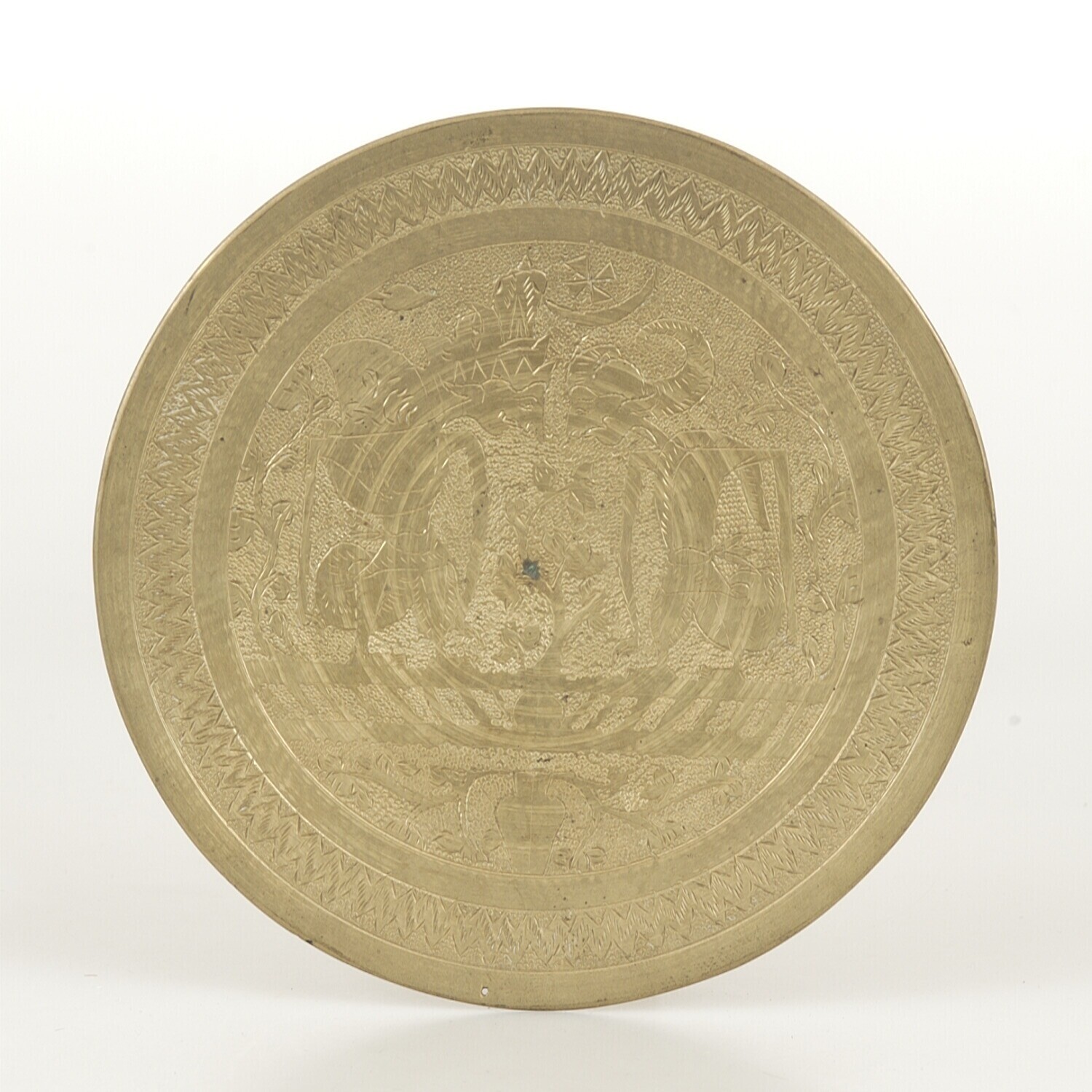 Onderkant van een messing sirihpot in de vorm van ee...