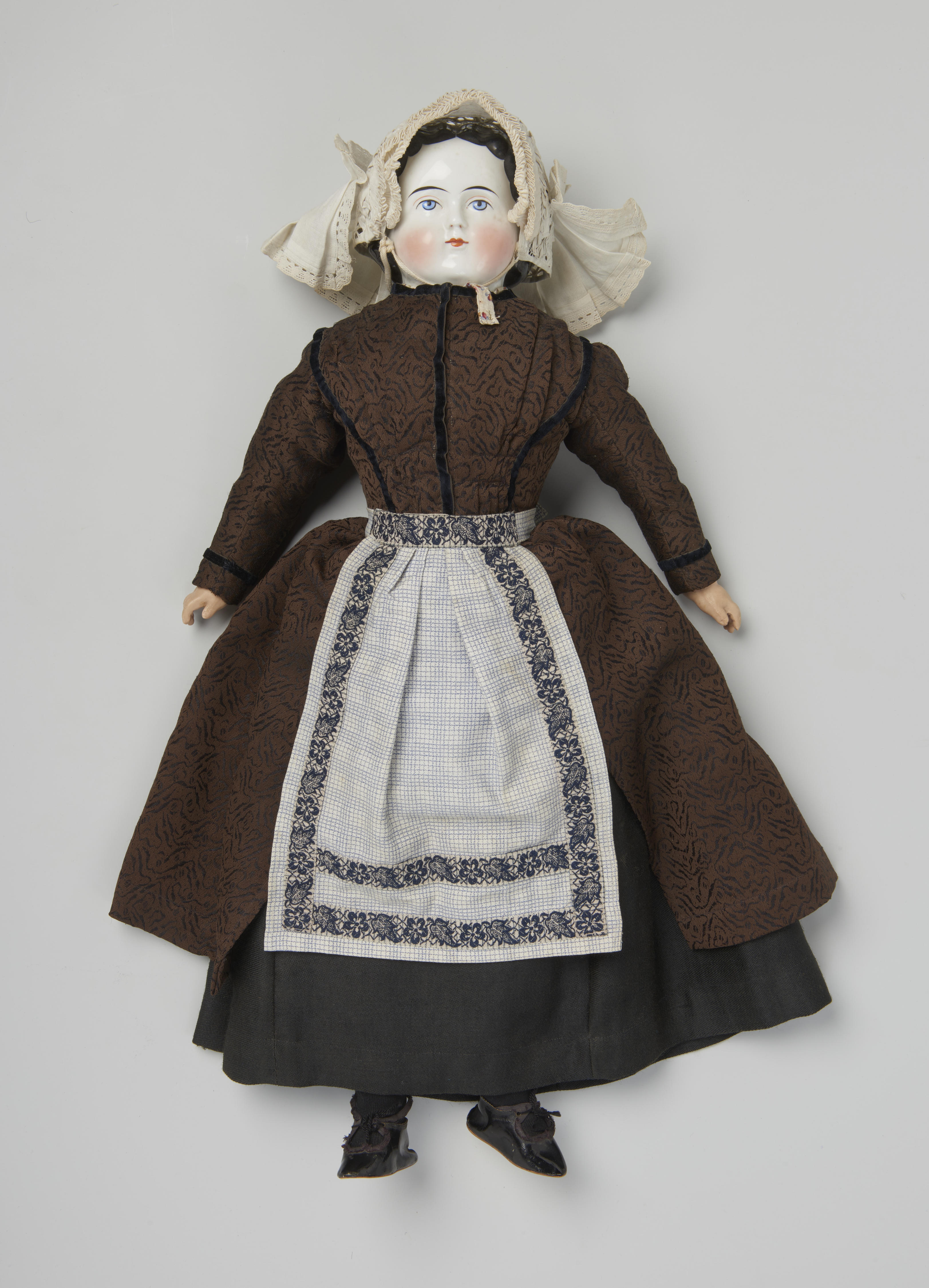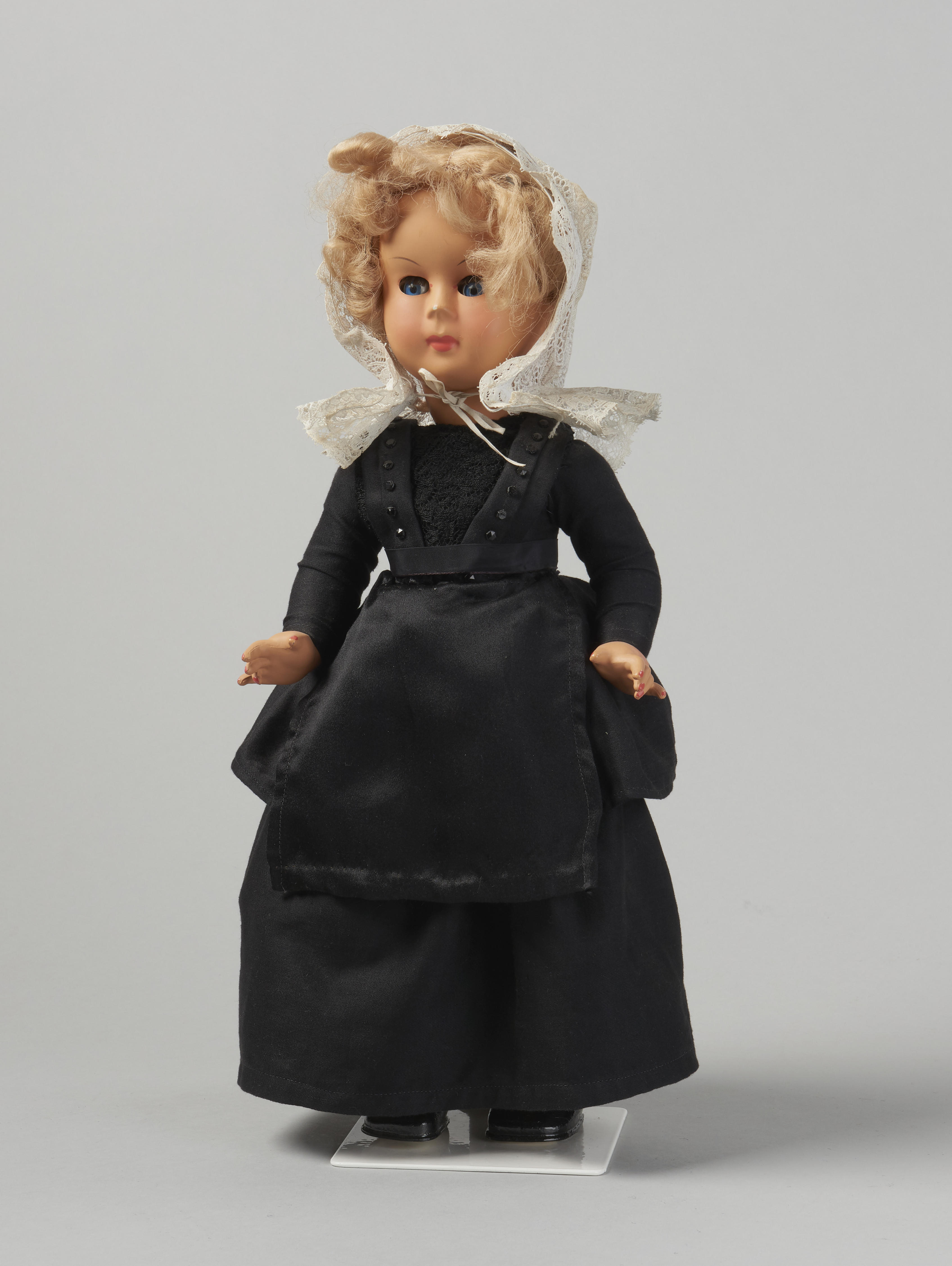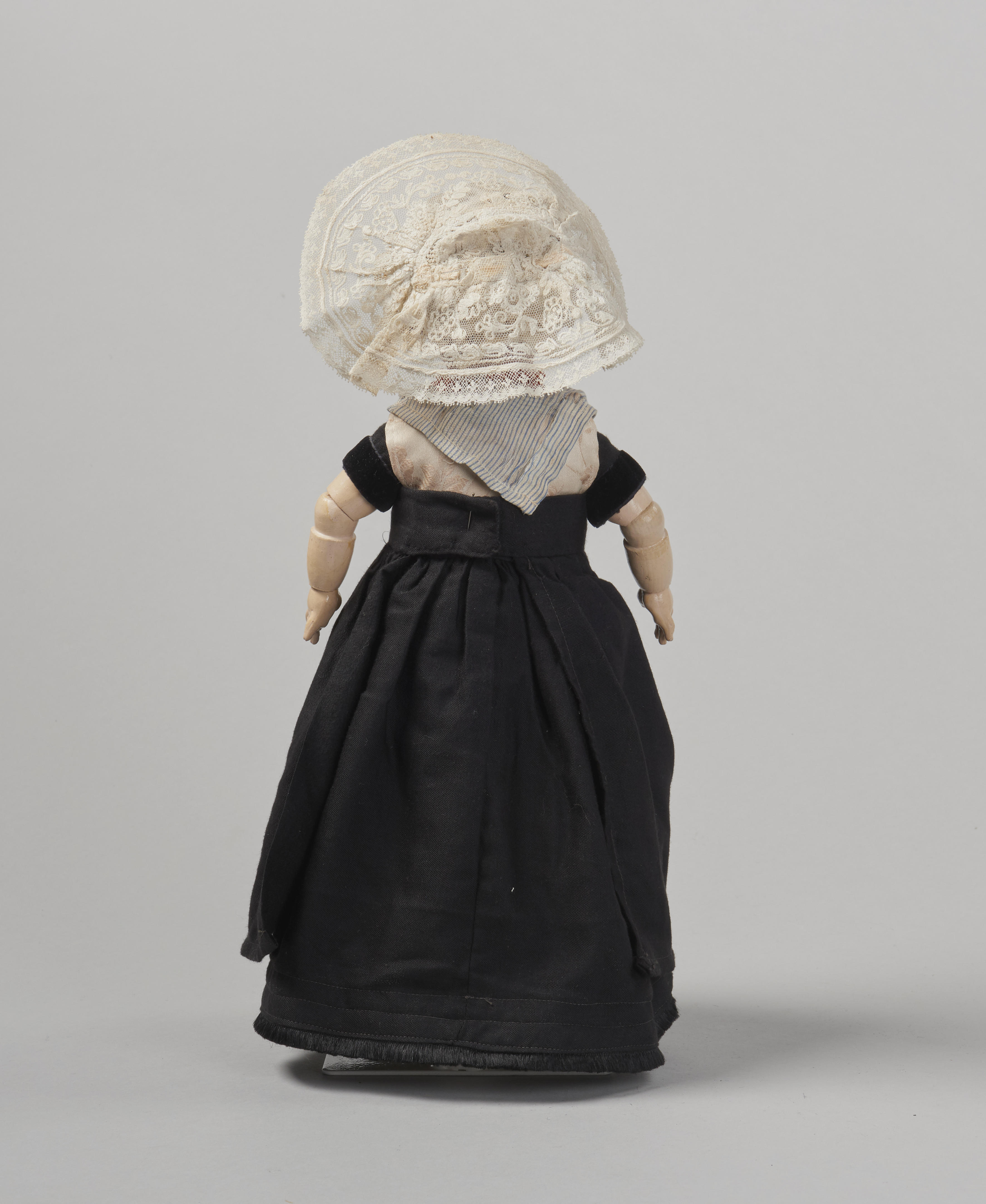 Pop, gekleed als Bunschoter meisje in rouwdracht
