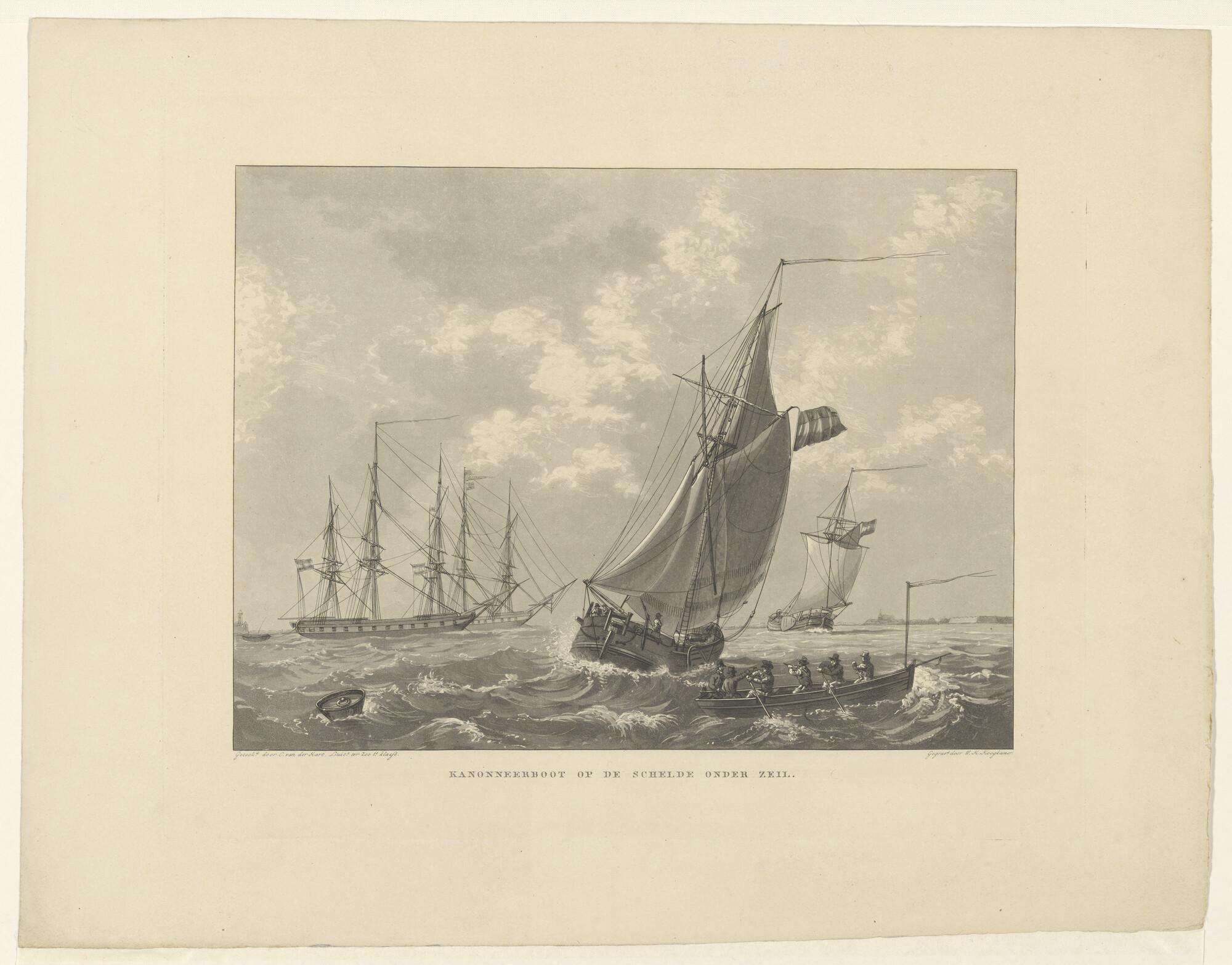 Een kanonneerboot op de Schelde onder zeil
