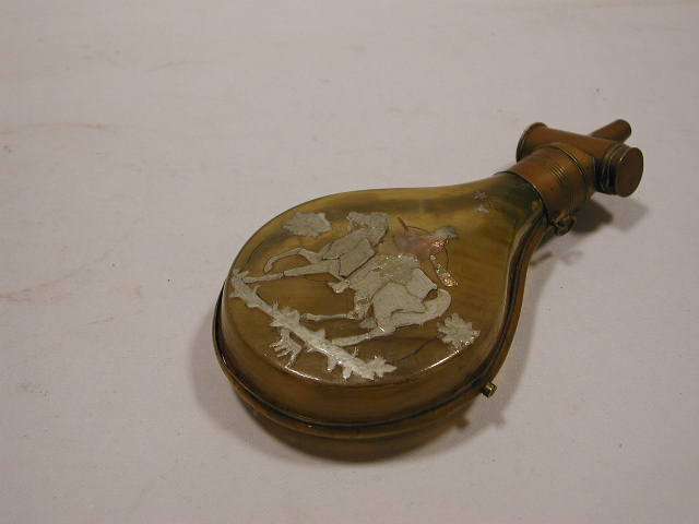 Kruithoorn gemaakt van hoorn en messing