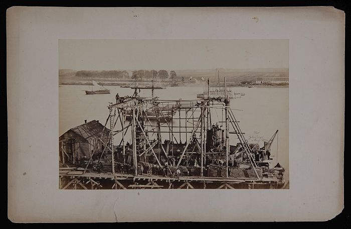 Foto van bouw draaibrug Spoorweghaven, met op voorgr...
