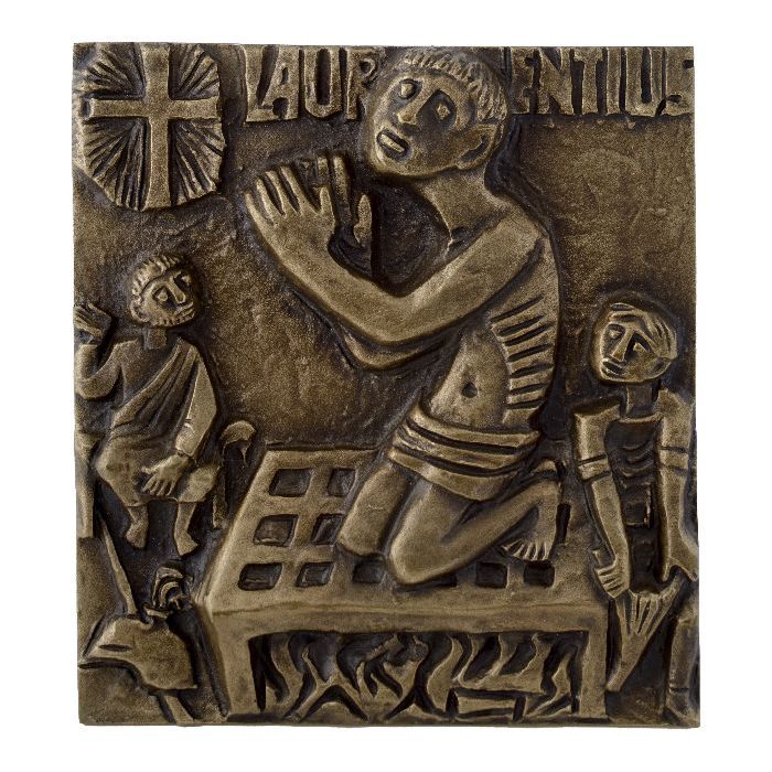 Plaquette met in reliëf de H. Laurentius op het rooster