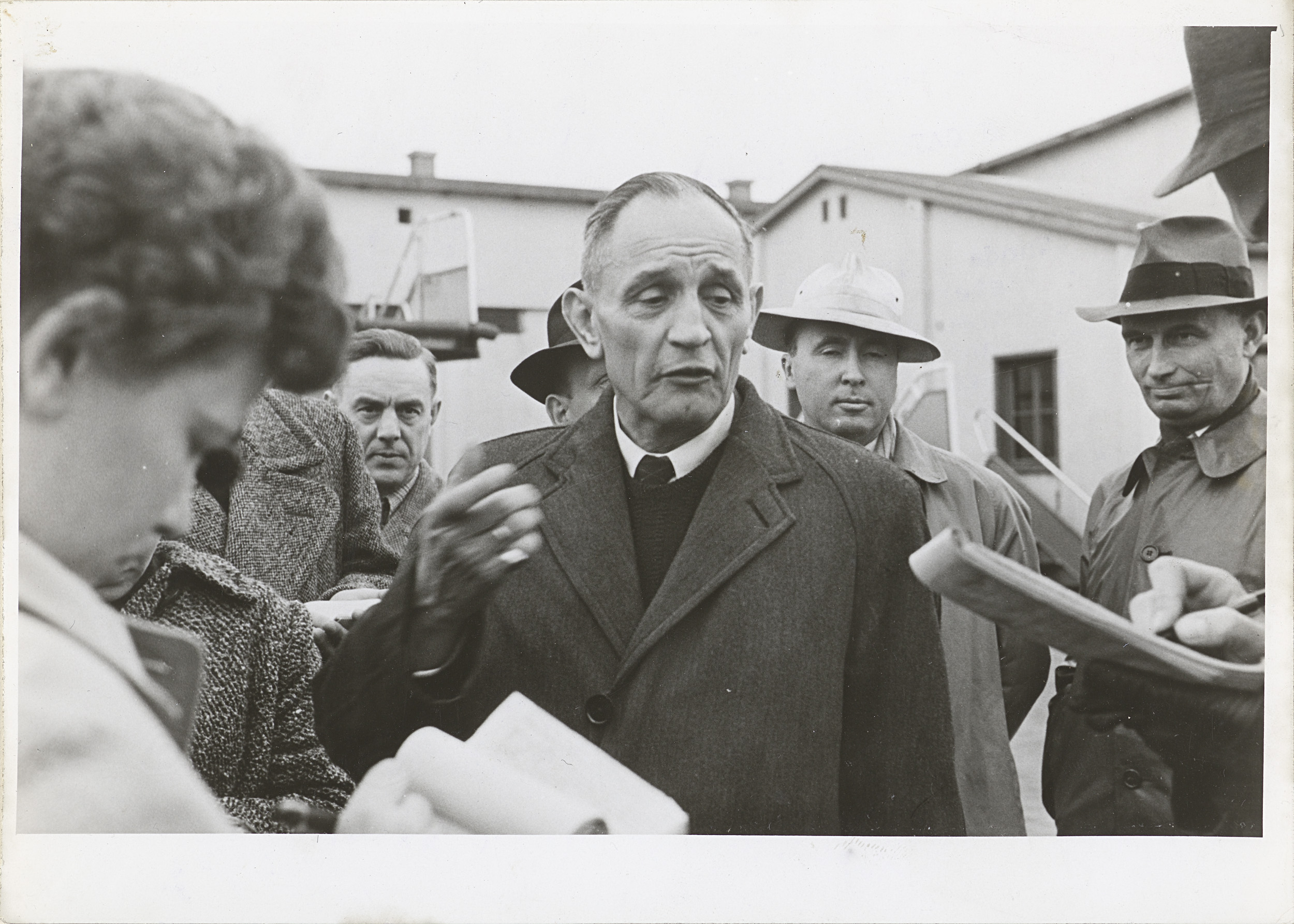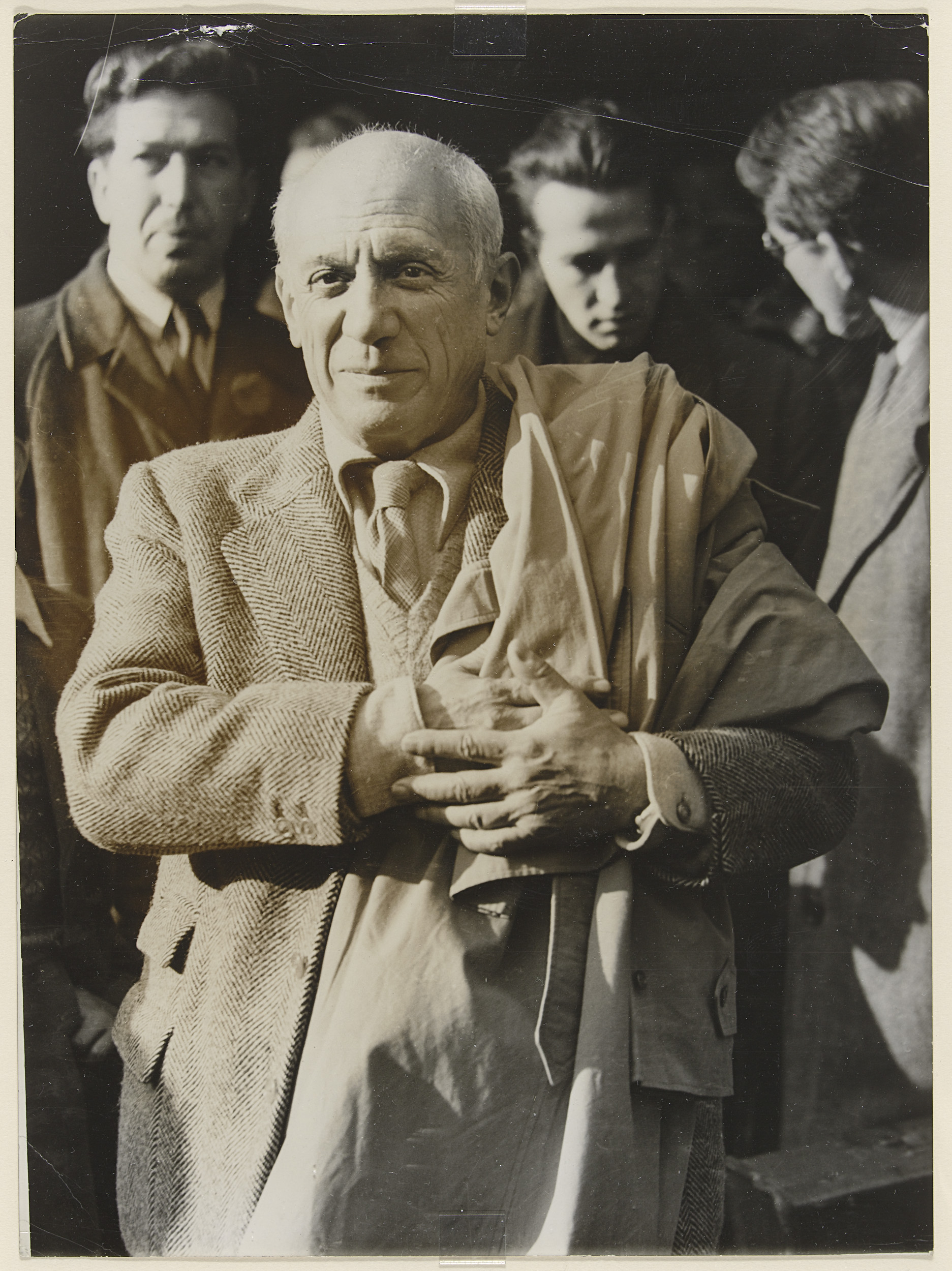 Pablo Picasso bij aankomst op Victoria Station, voor...