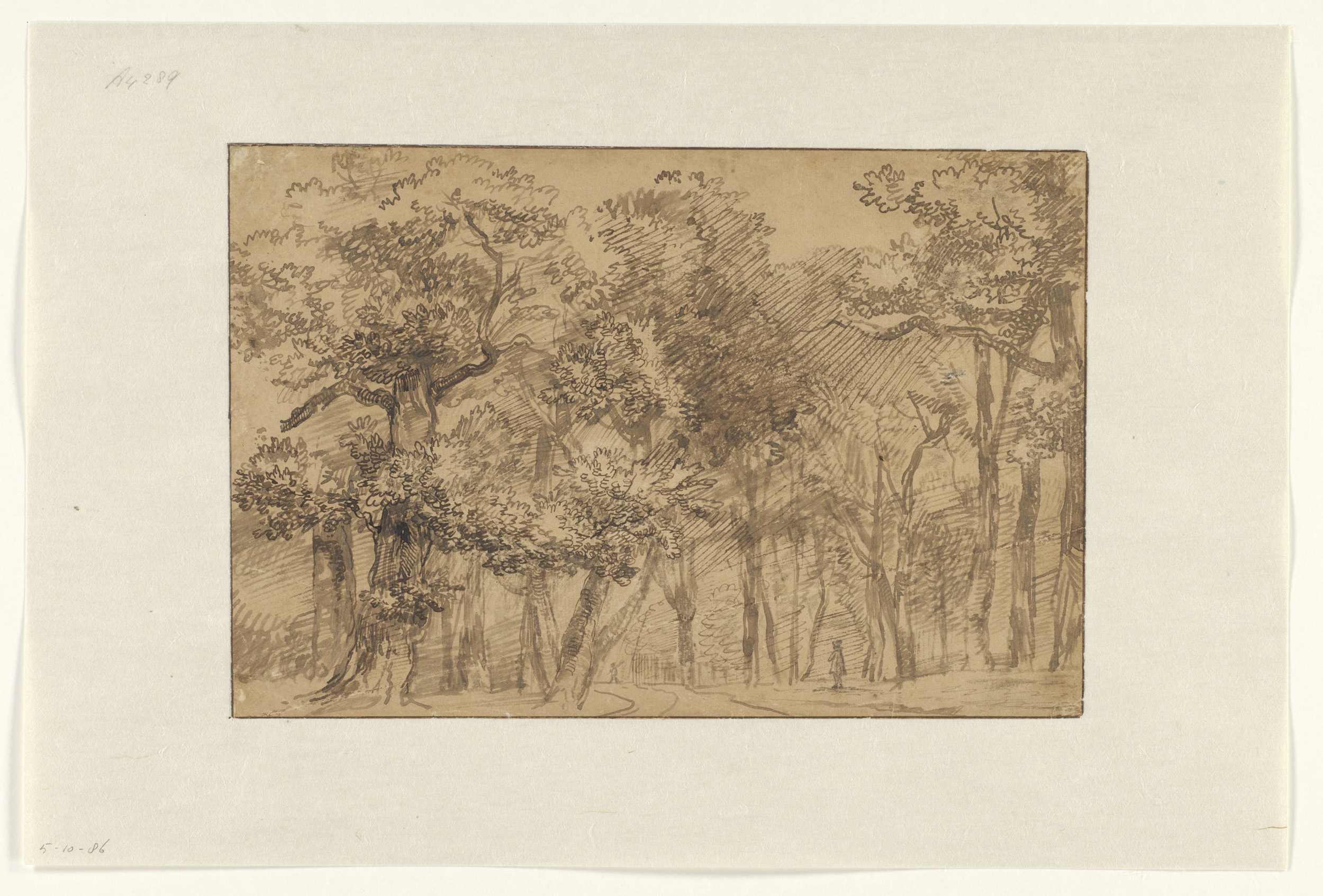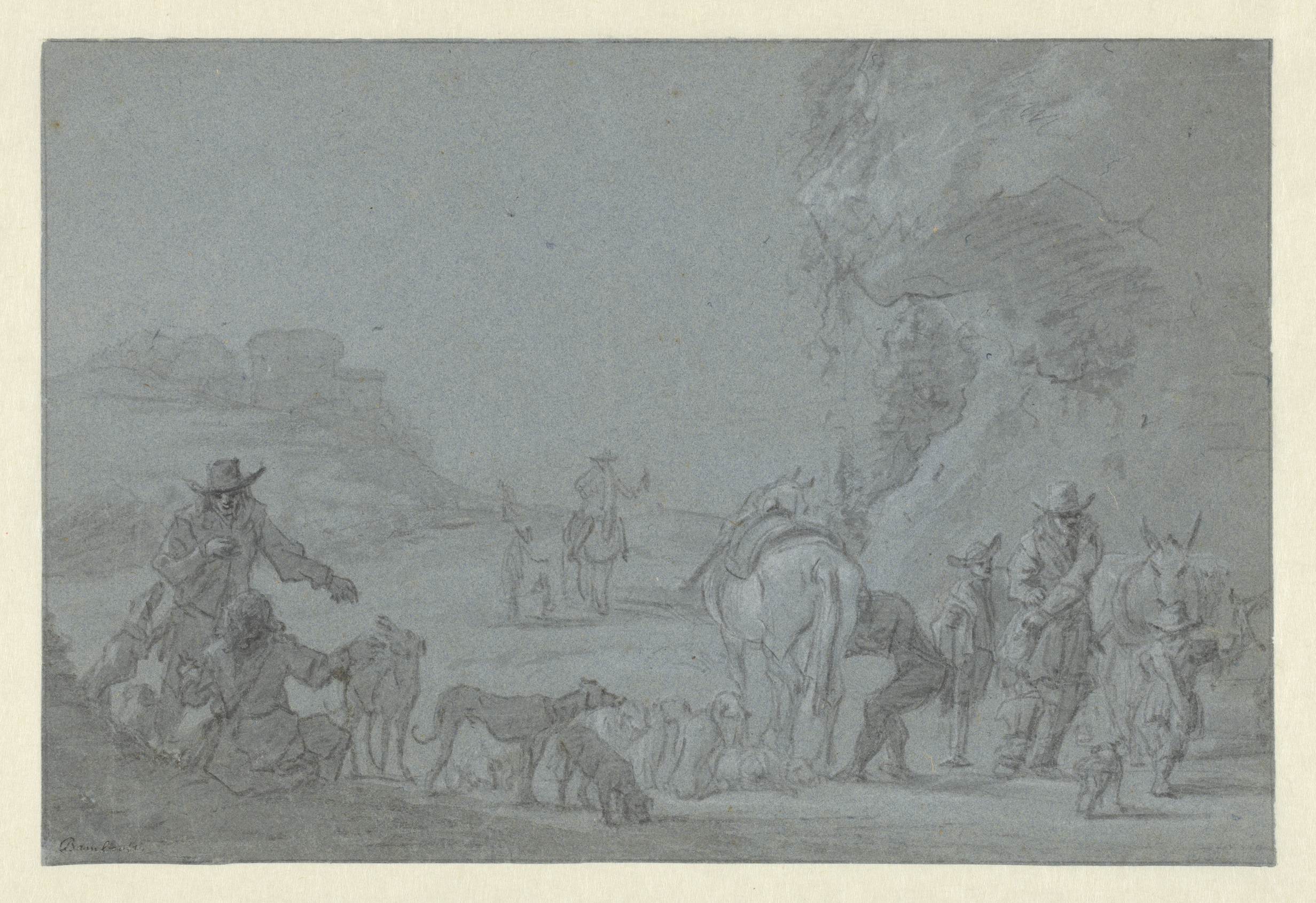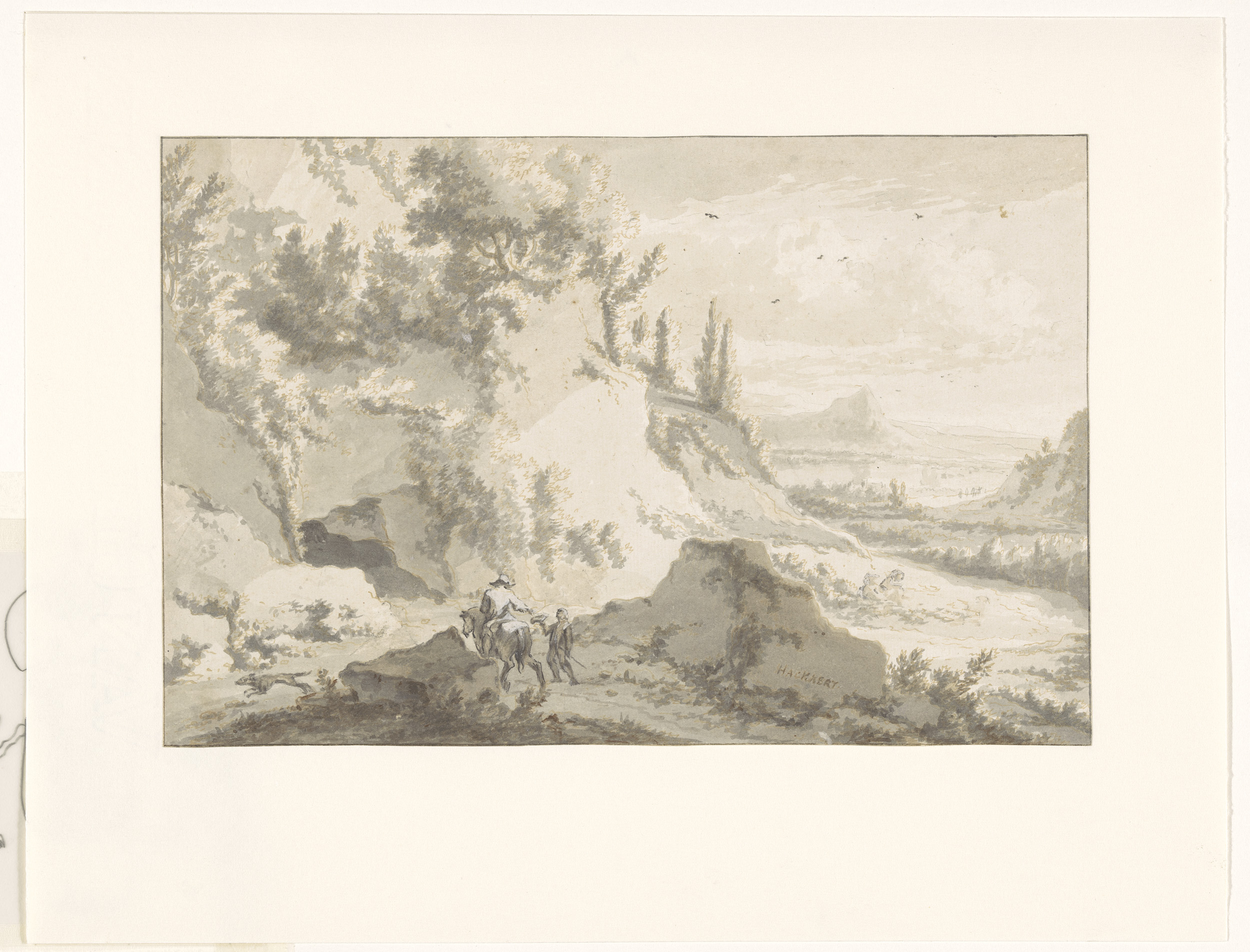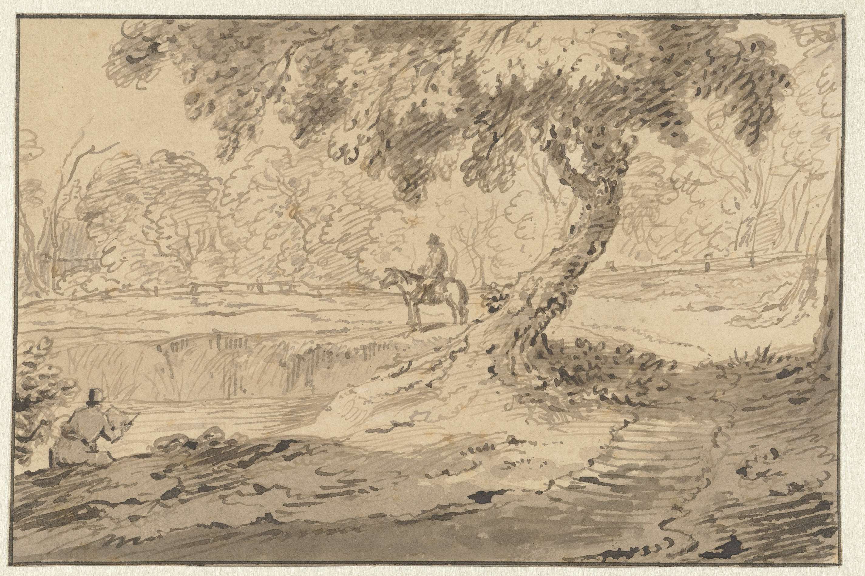 Boslandschap met ruiter en tekenaar