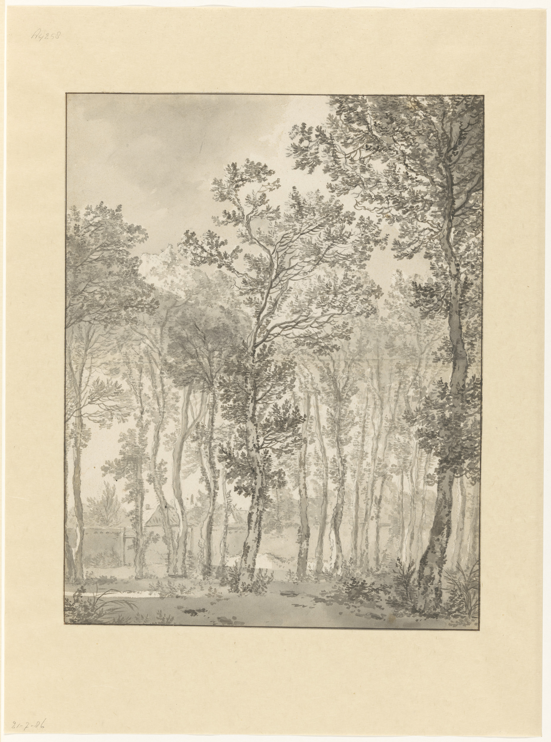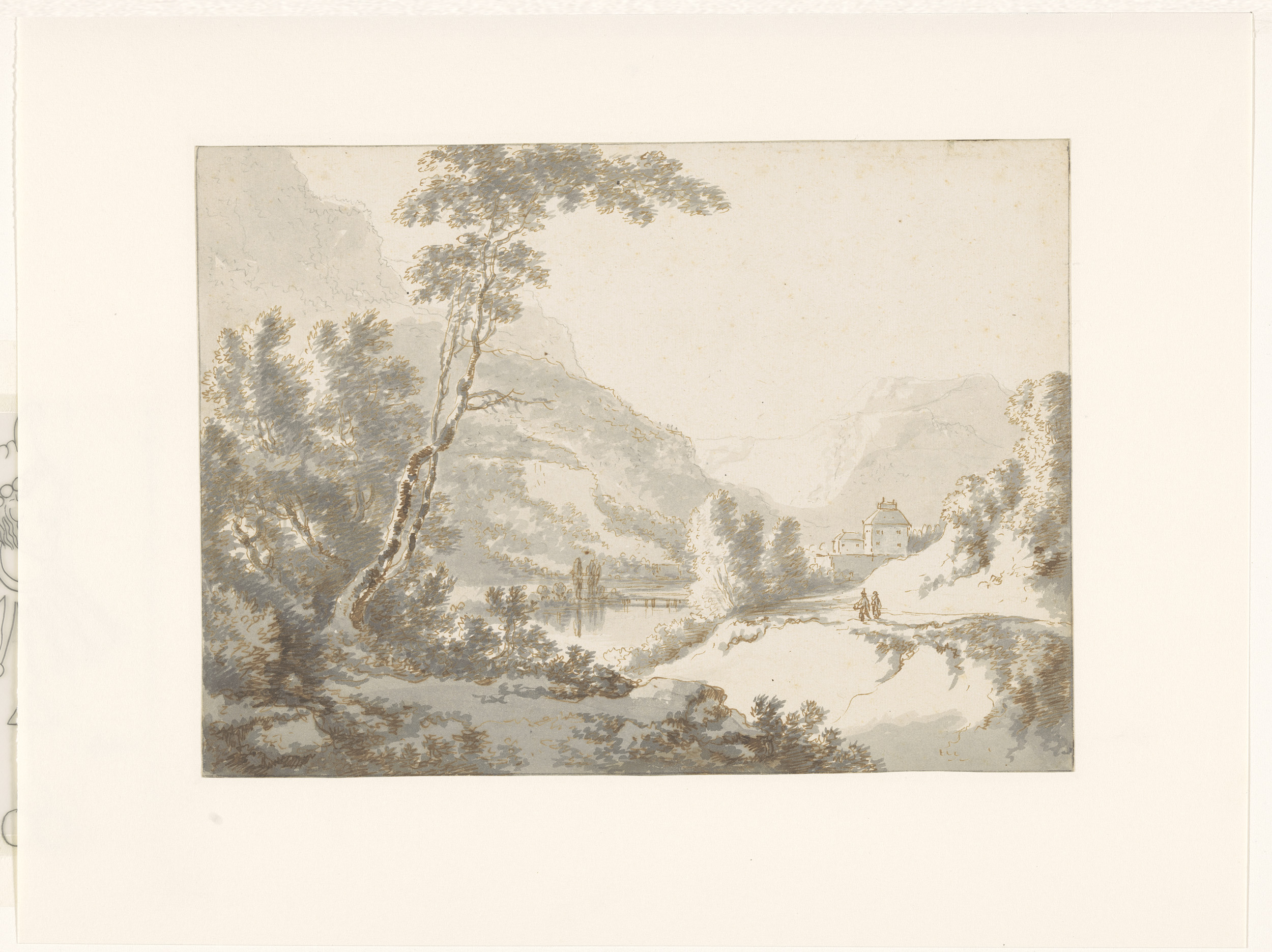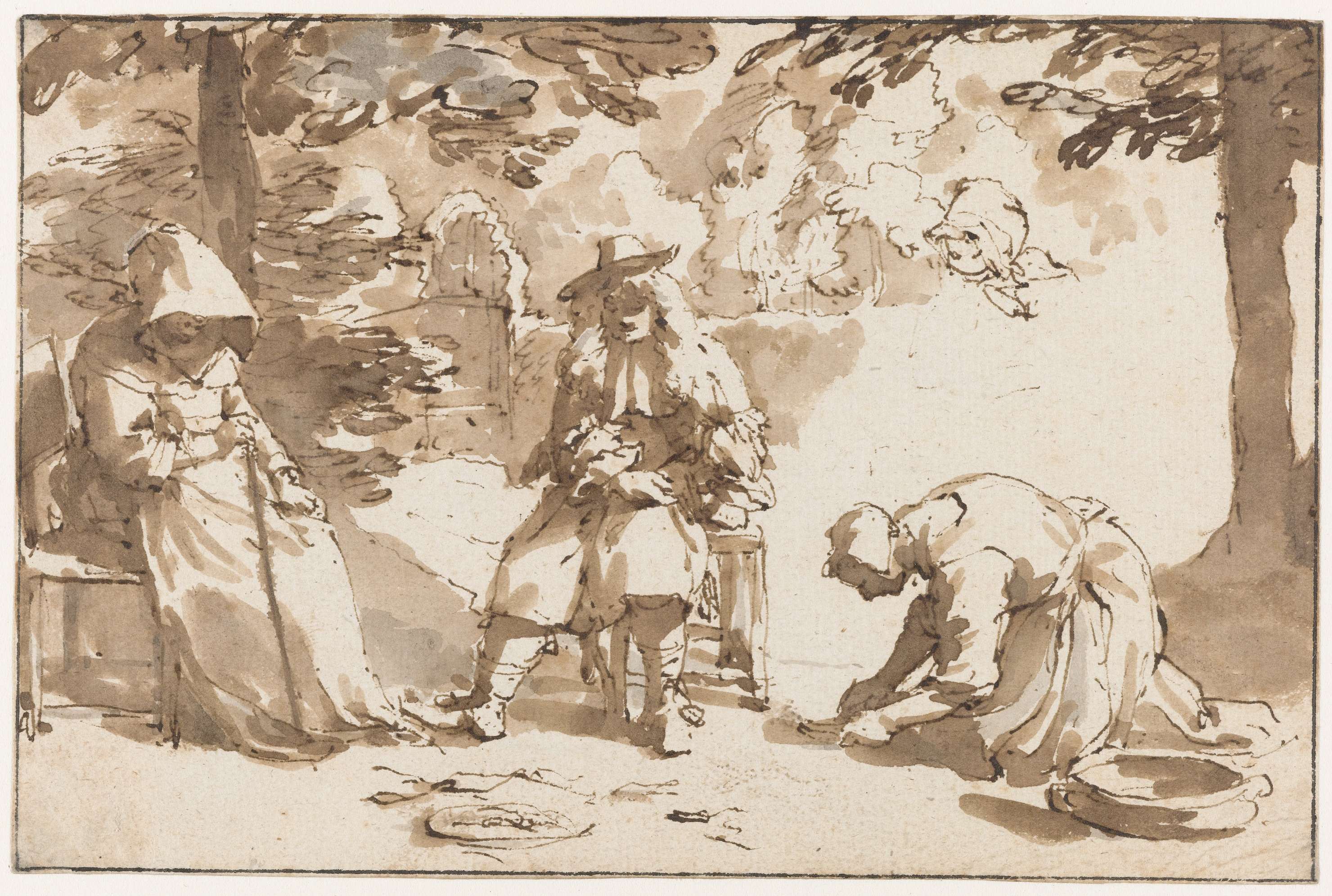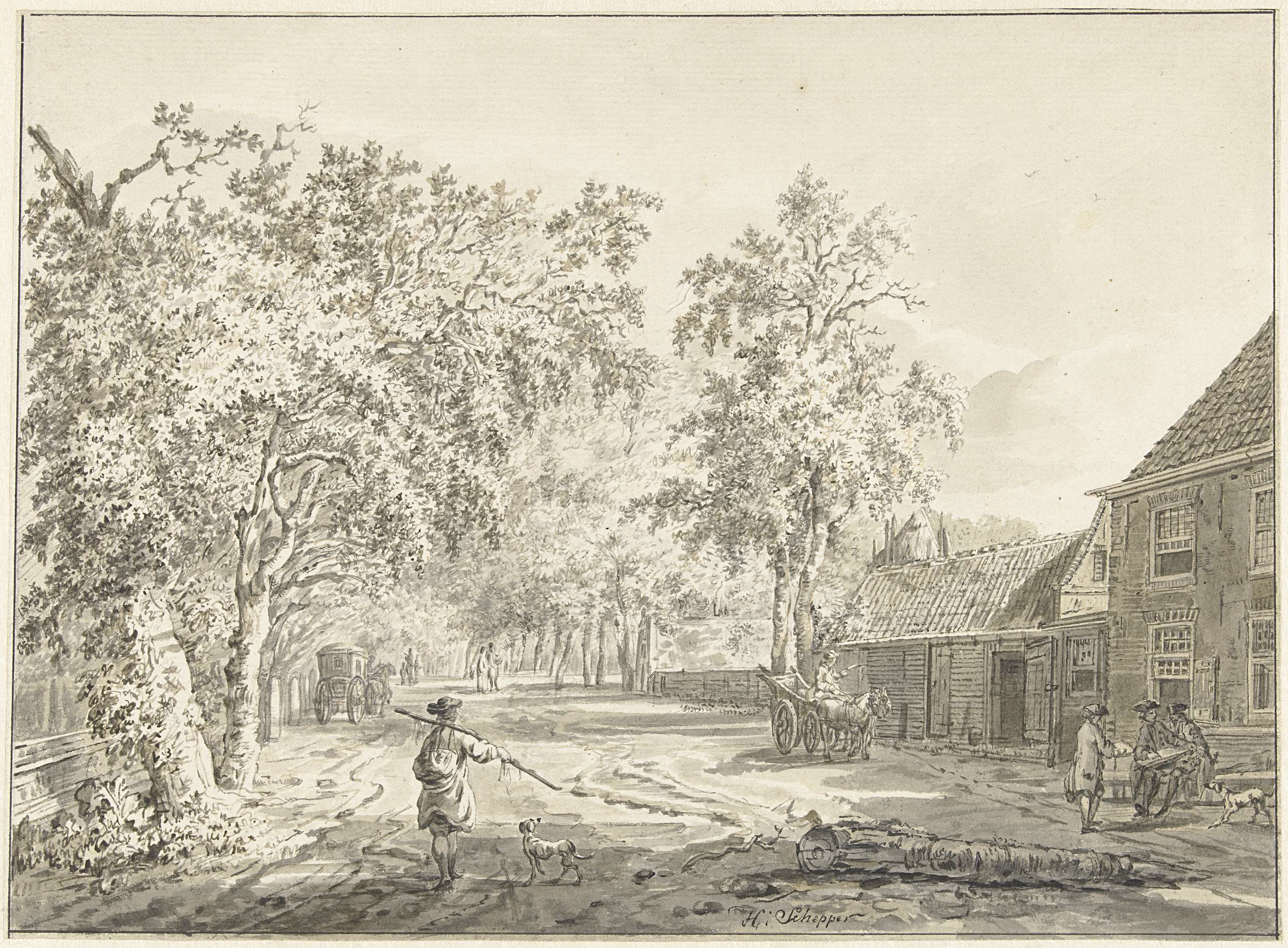 Boslandschap met ruiter en tekenaar