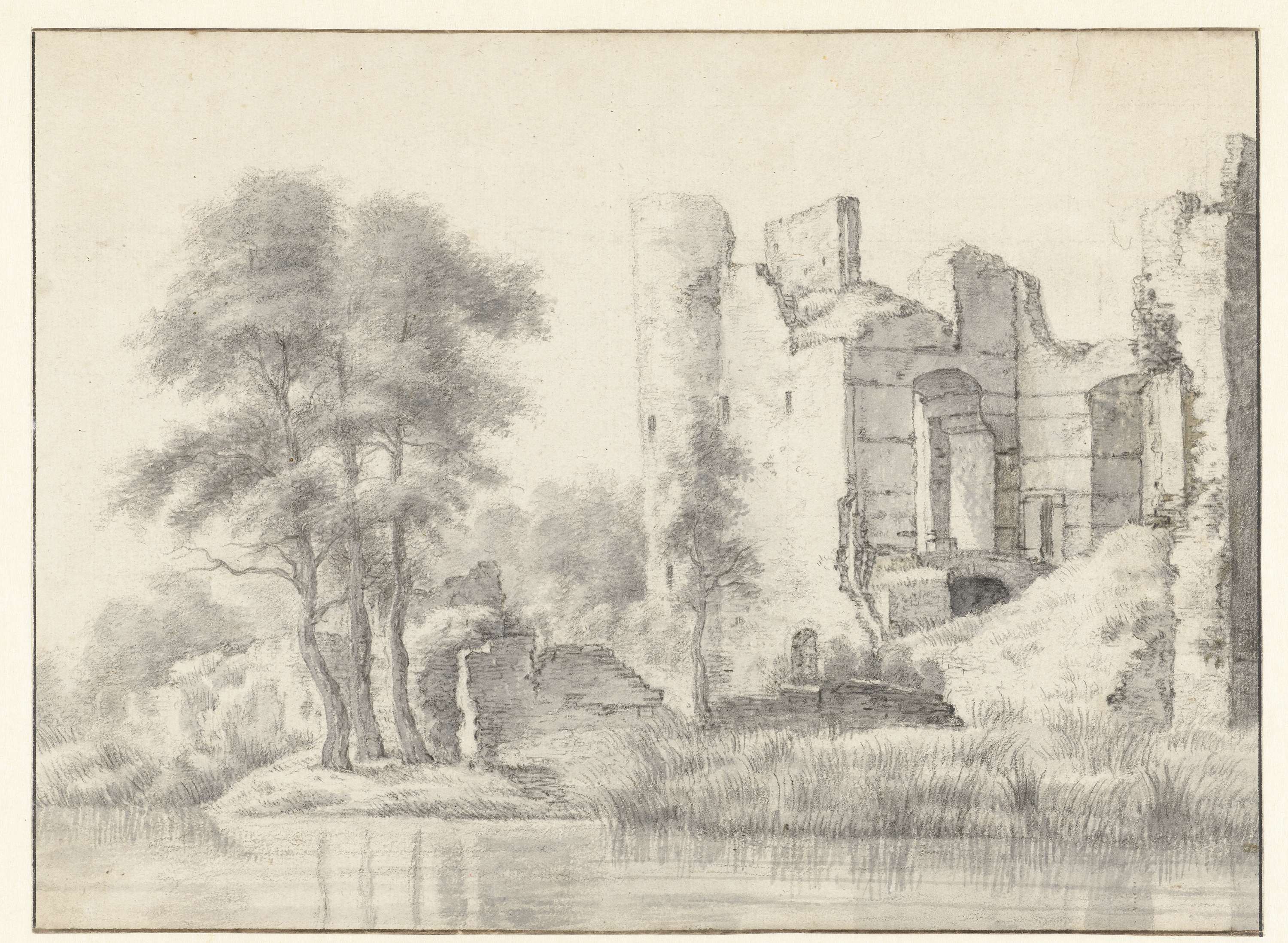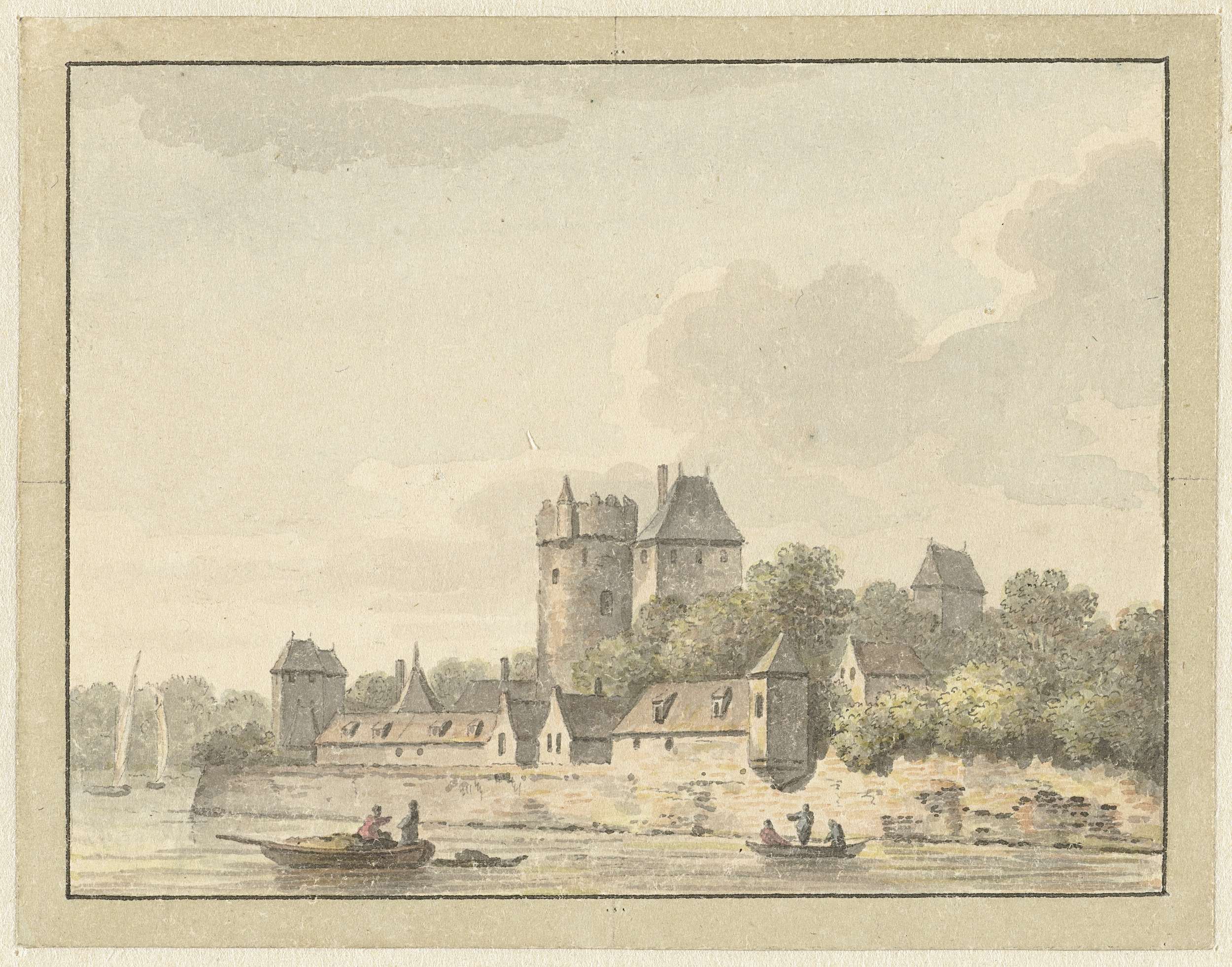 Gezicht op de Waal met het kasteel Zuilichem