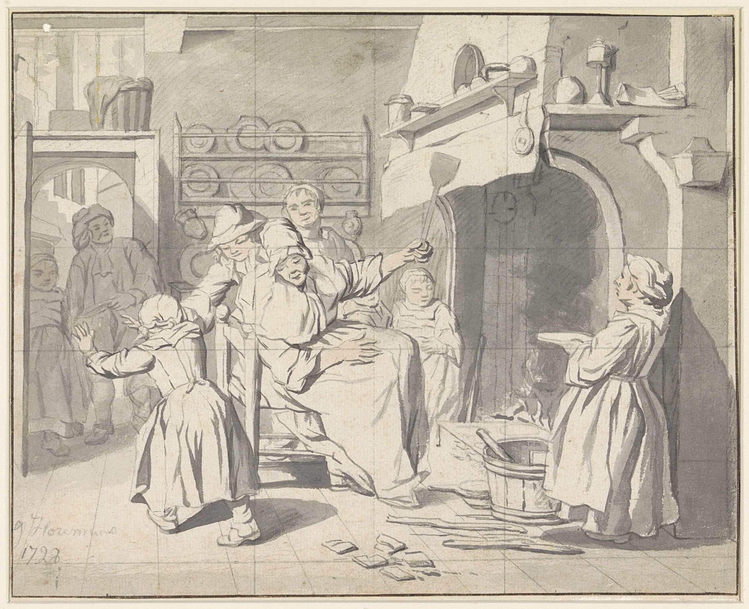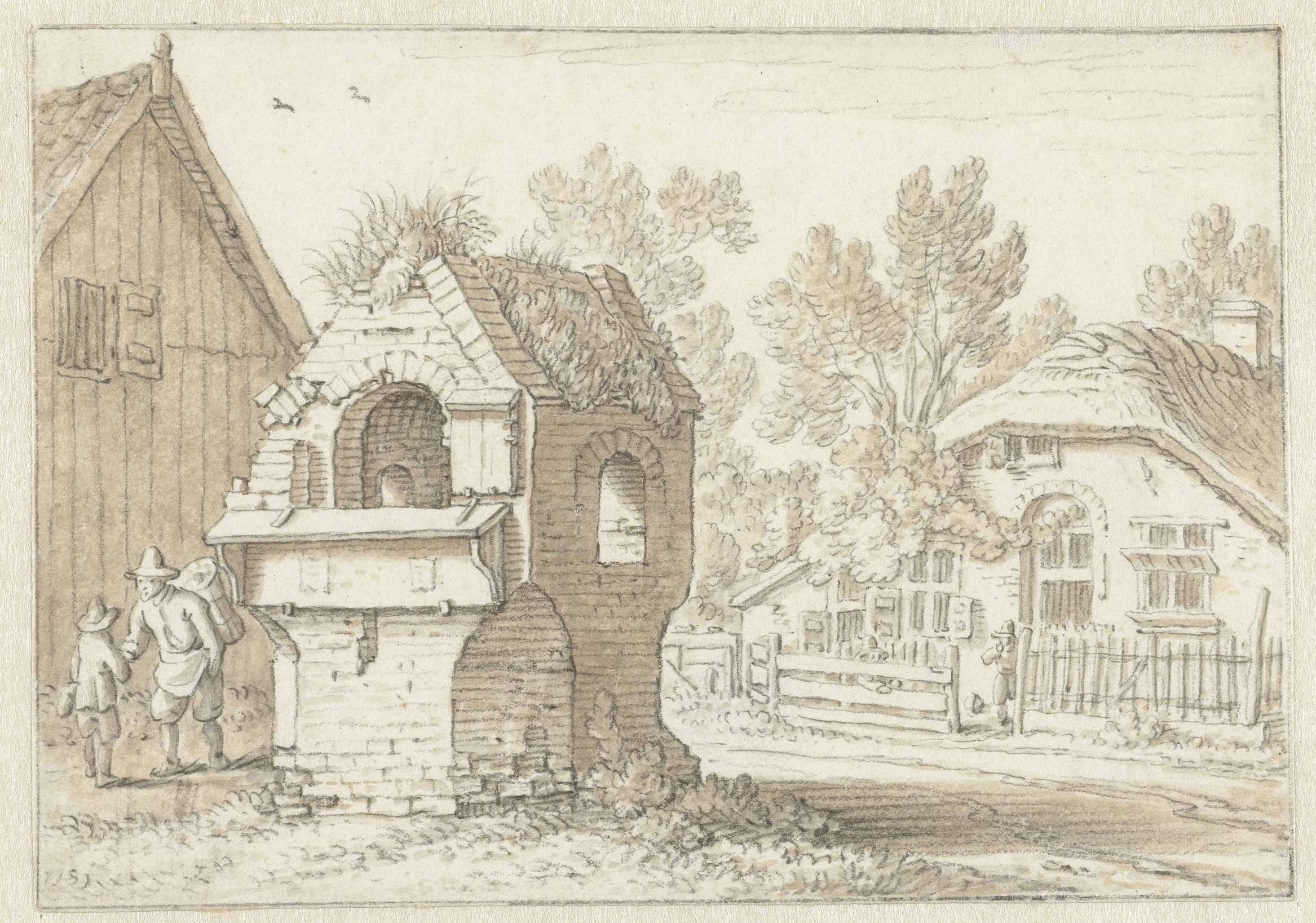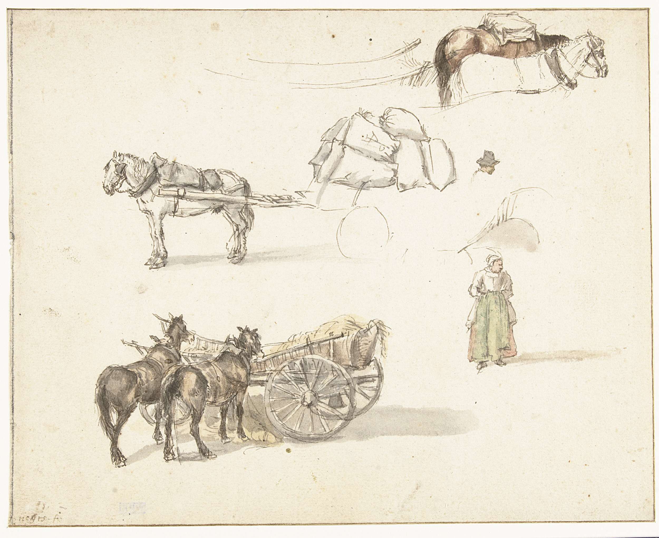 Enkele studies van karren en een staande boerin