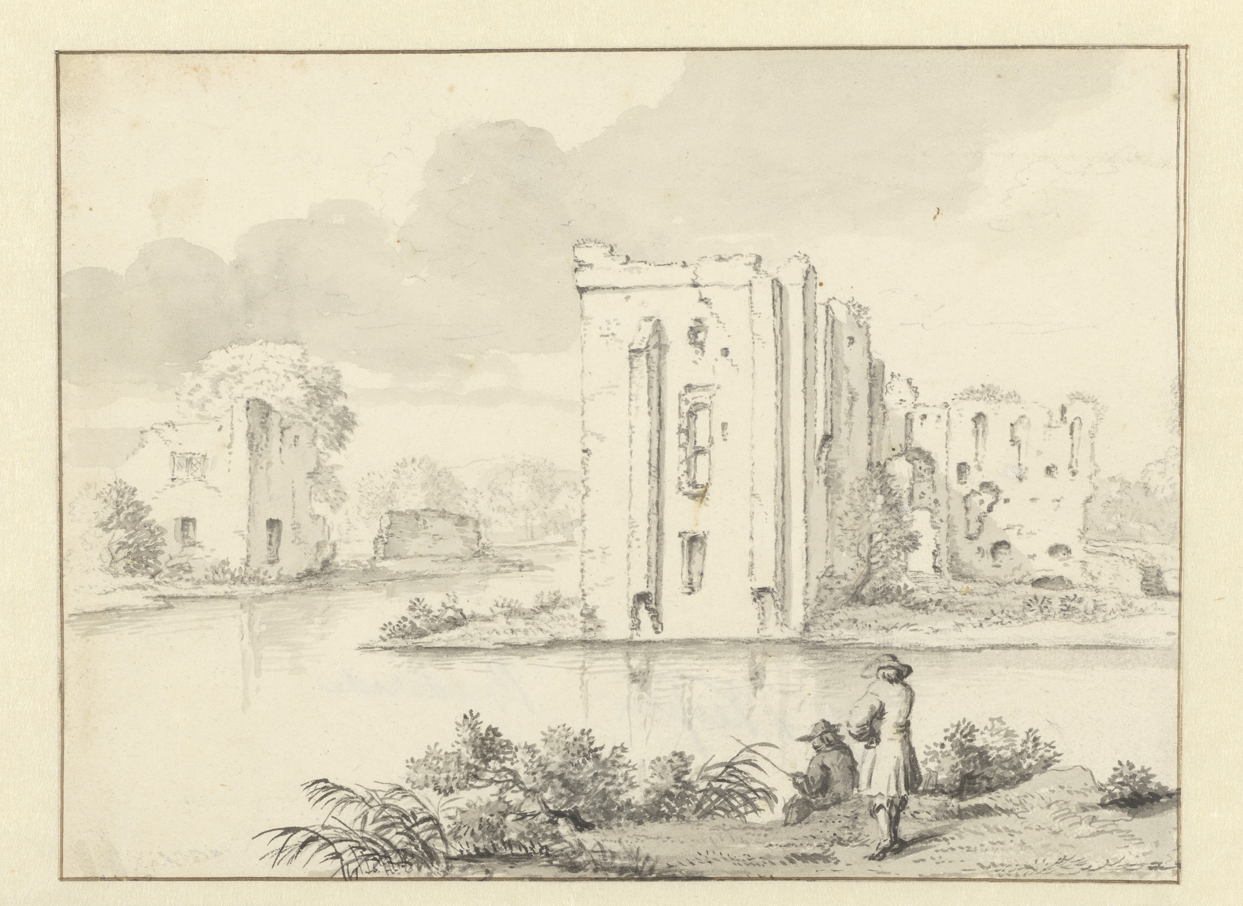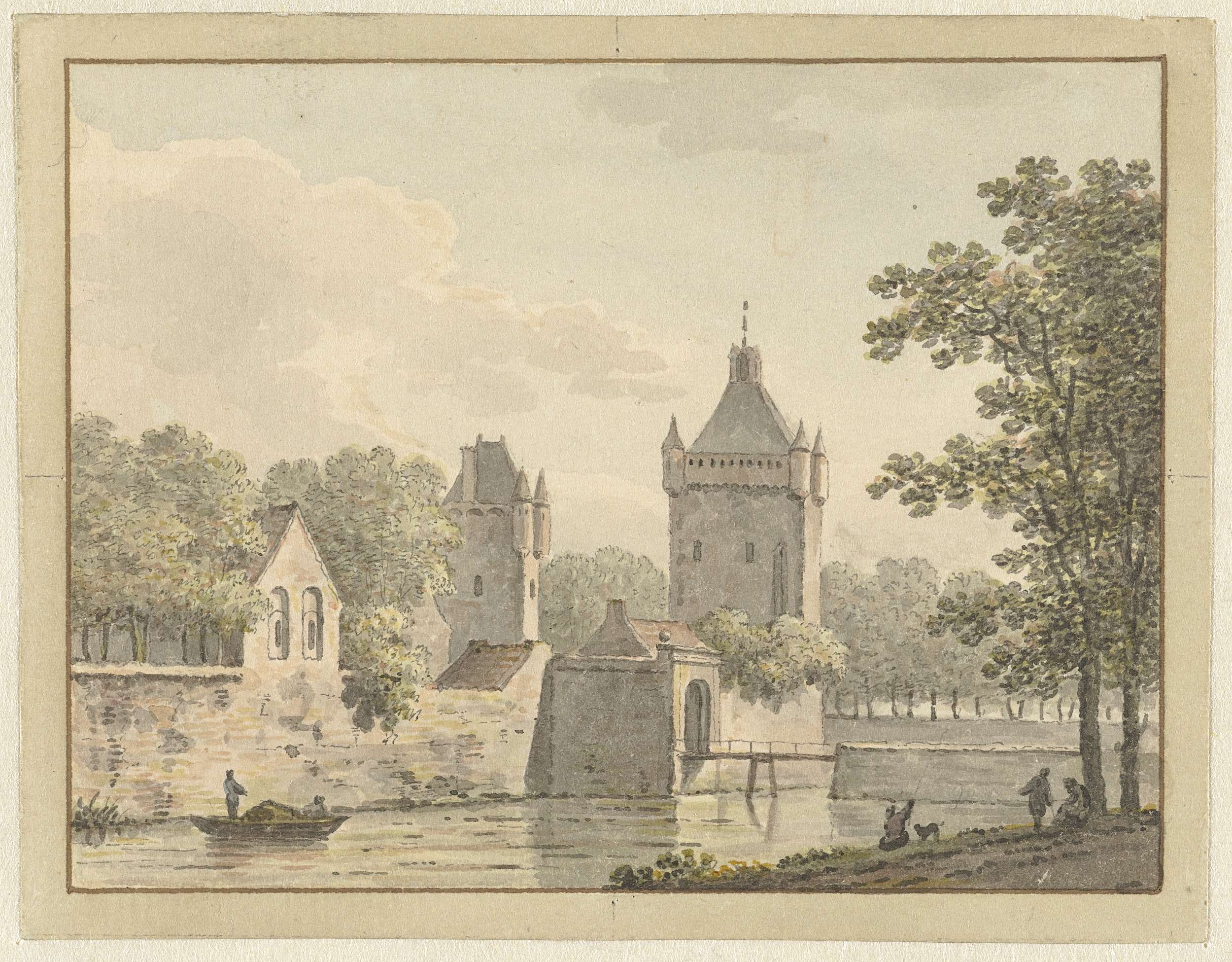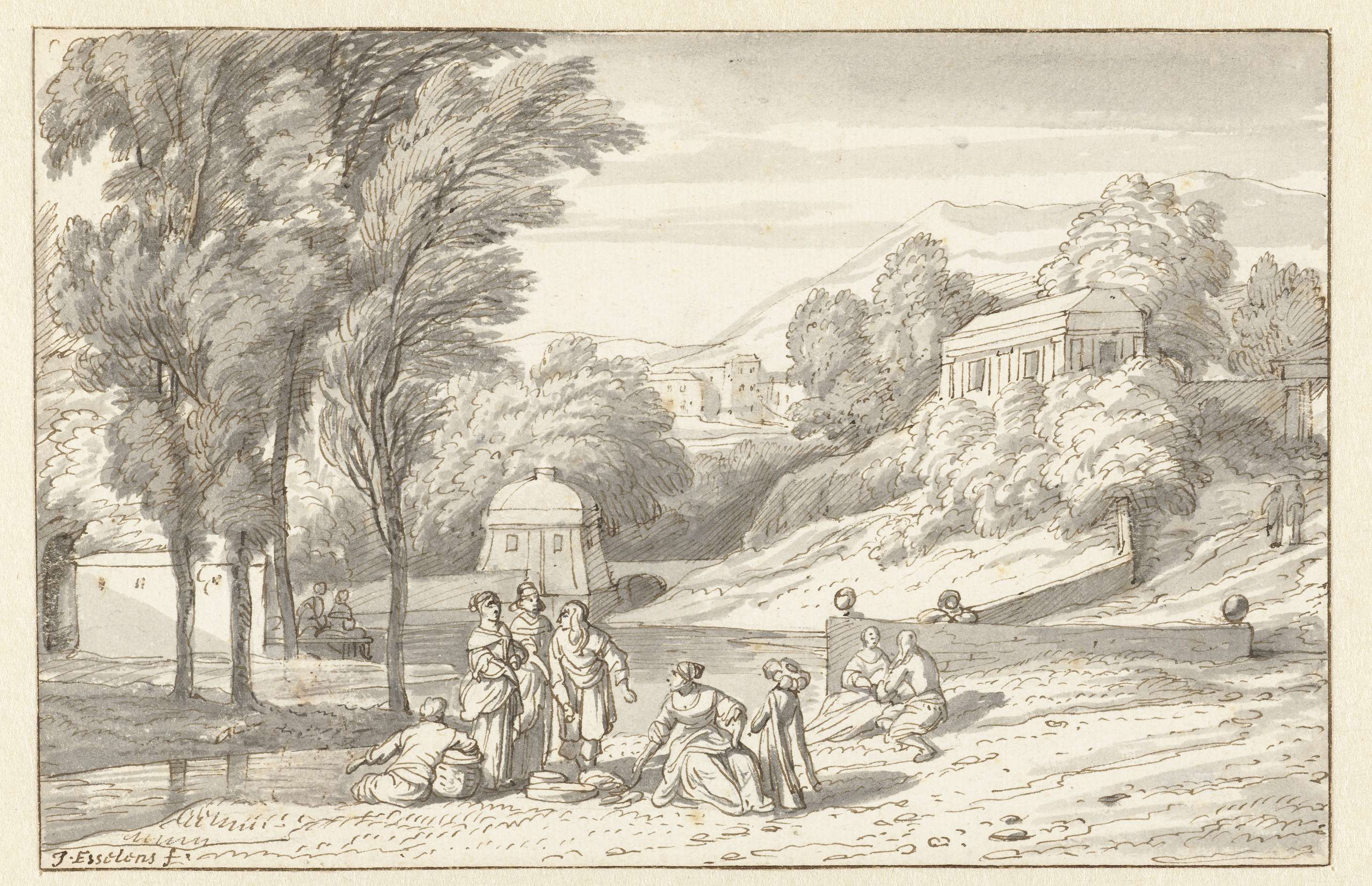 Parkgezicht met op de voorgrond een gezelschap