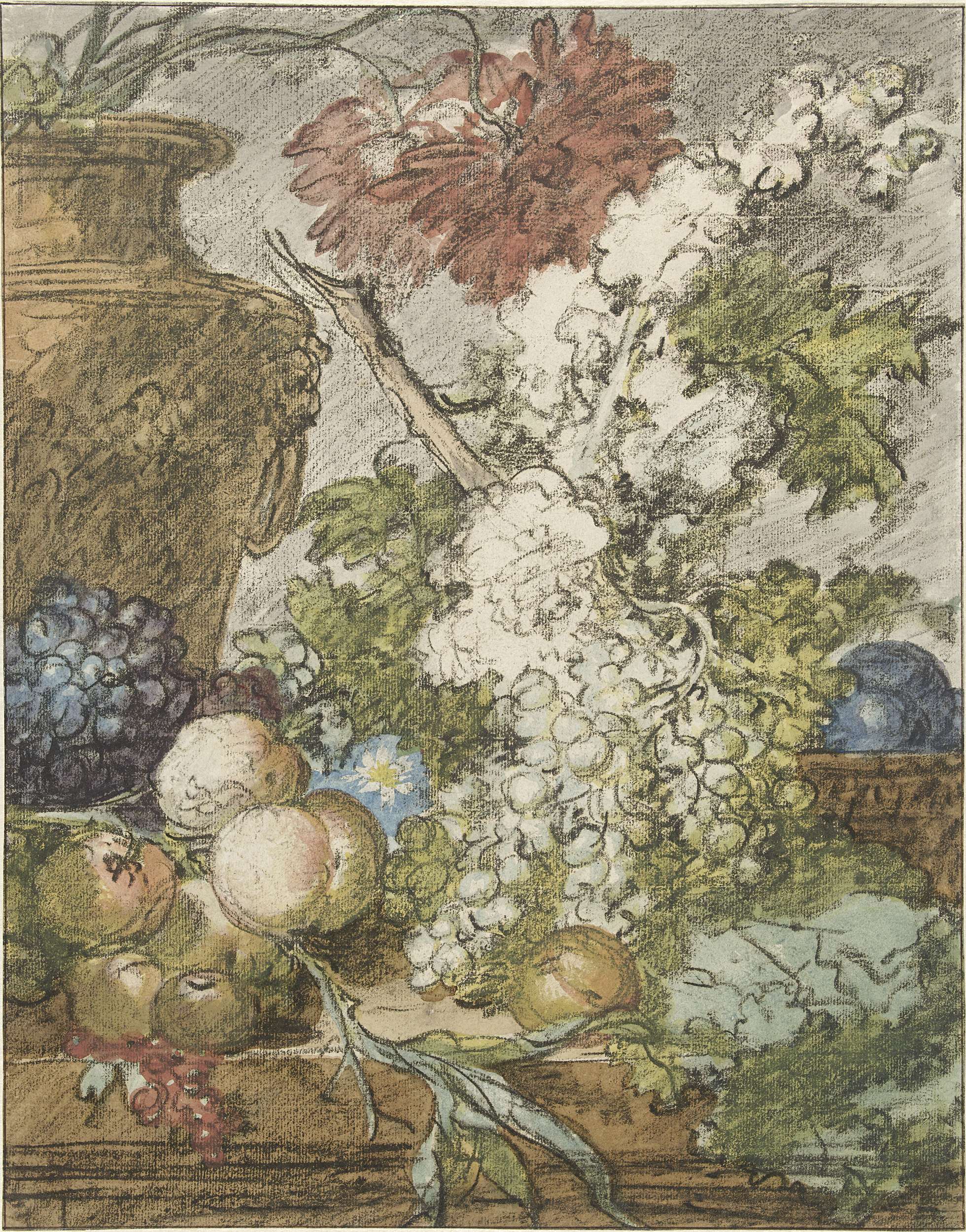Schets voor een stilleven van vruchten en bloemen