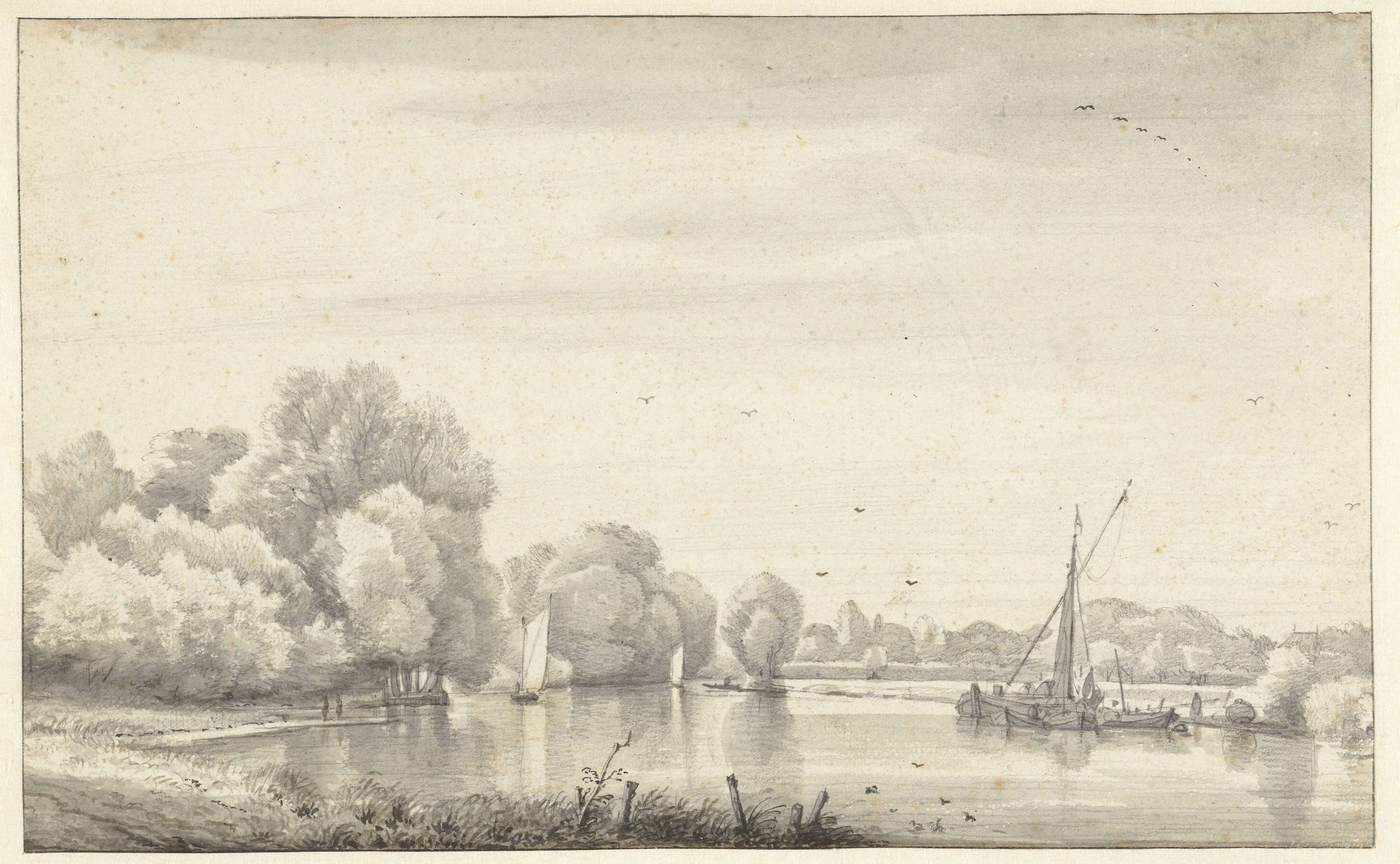 Rivier tussen bomen en weiden