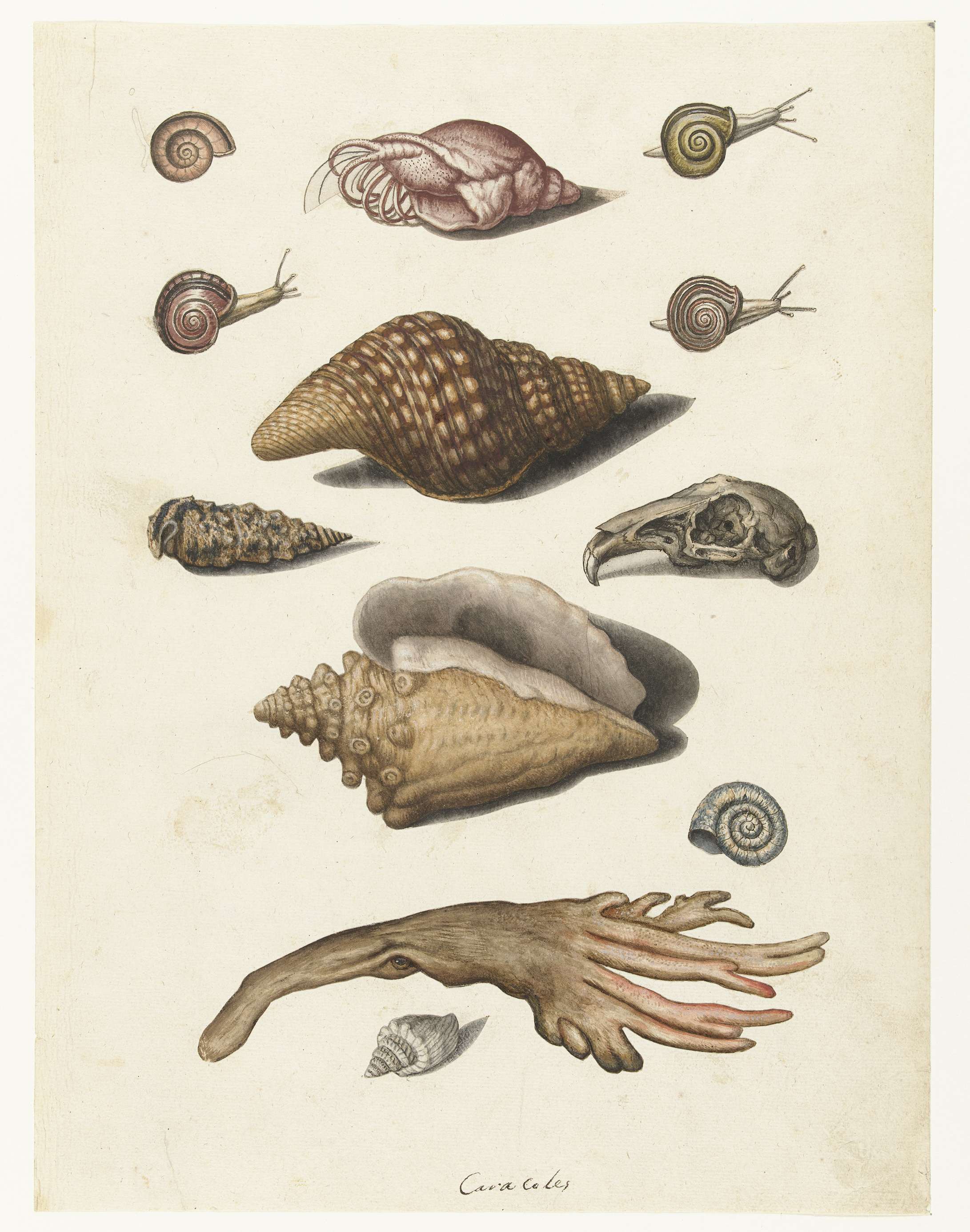 Schelpdieren, zeewier, slakken en konijnenschedel