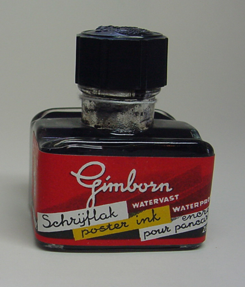 Fles van glas met schrijflak door H. van Gimborn N.V...