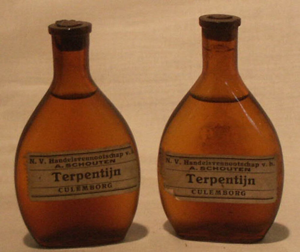 2 flesjes gevuld met terpentijn, geassocieerd met ve...