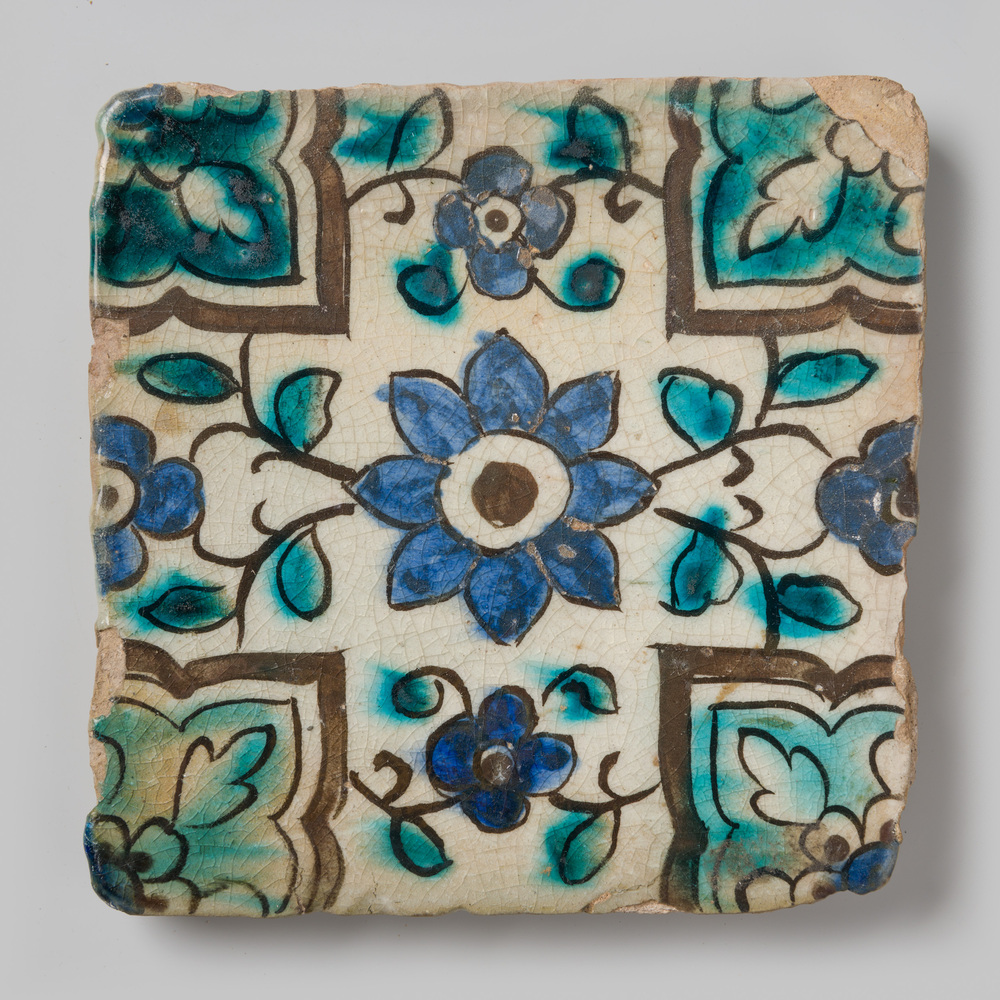 Tegelveld van aardewerk met glazuur, floraal decor, ...