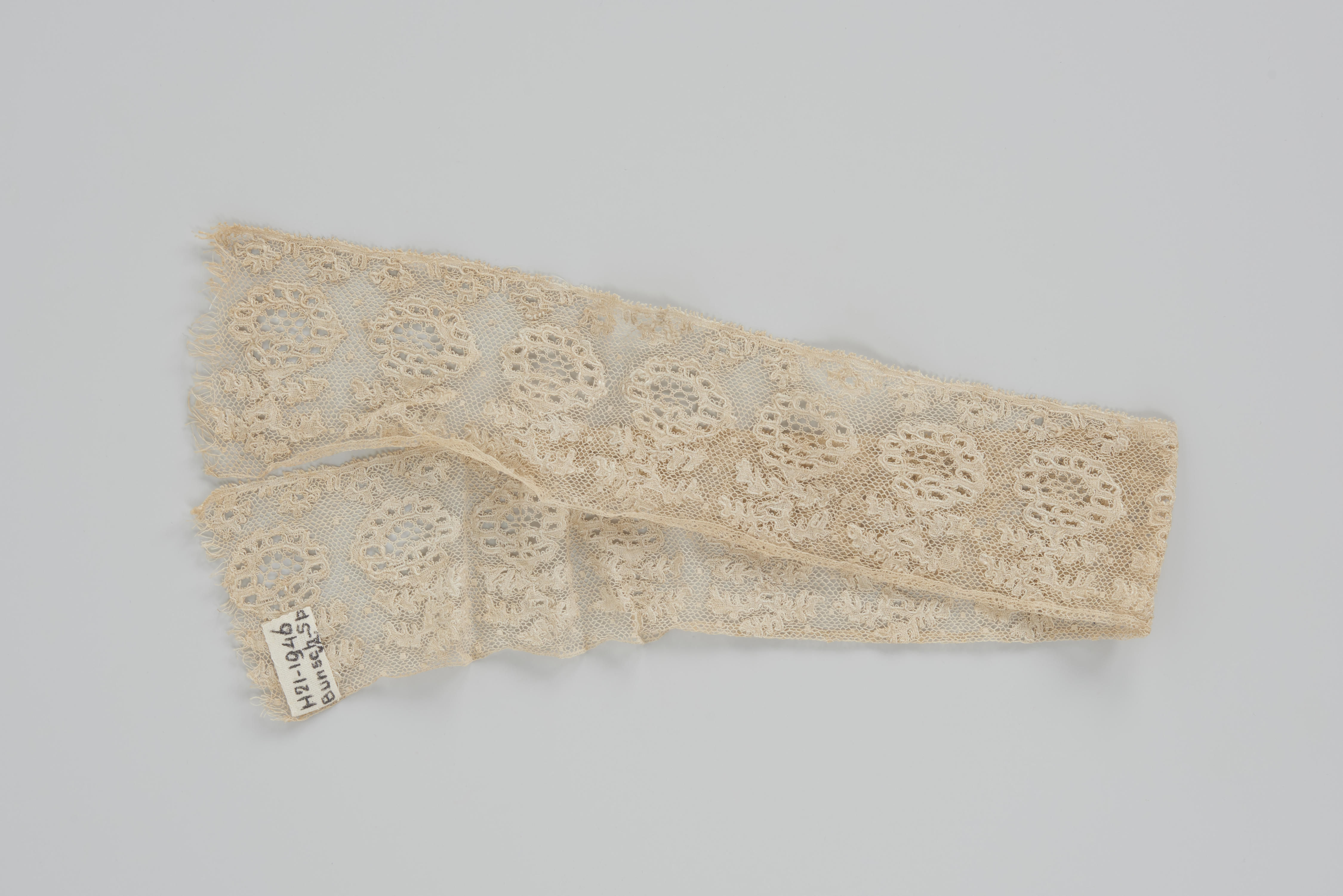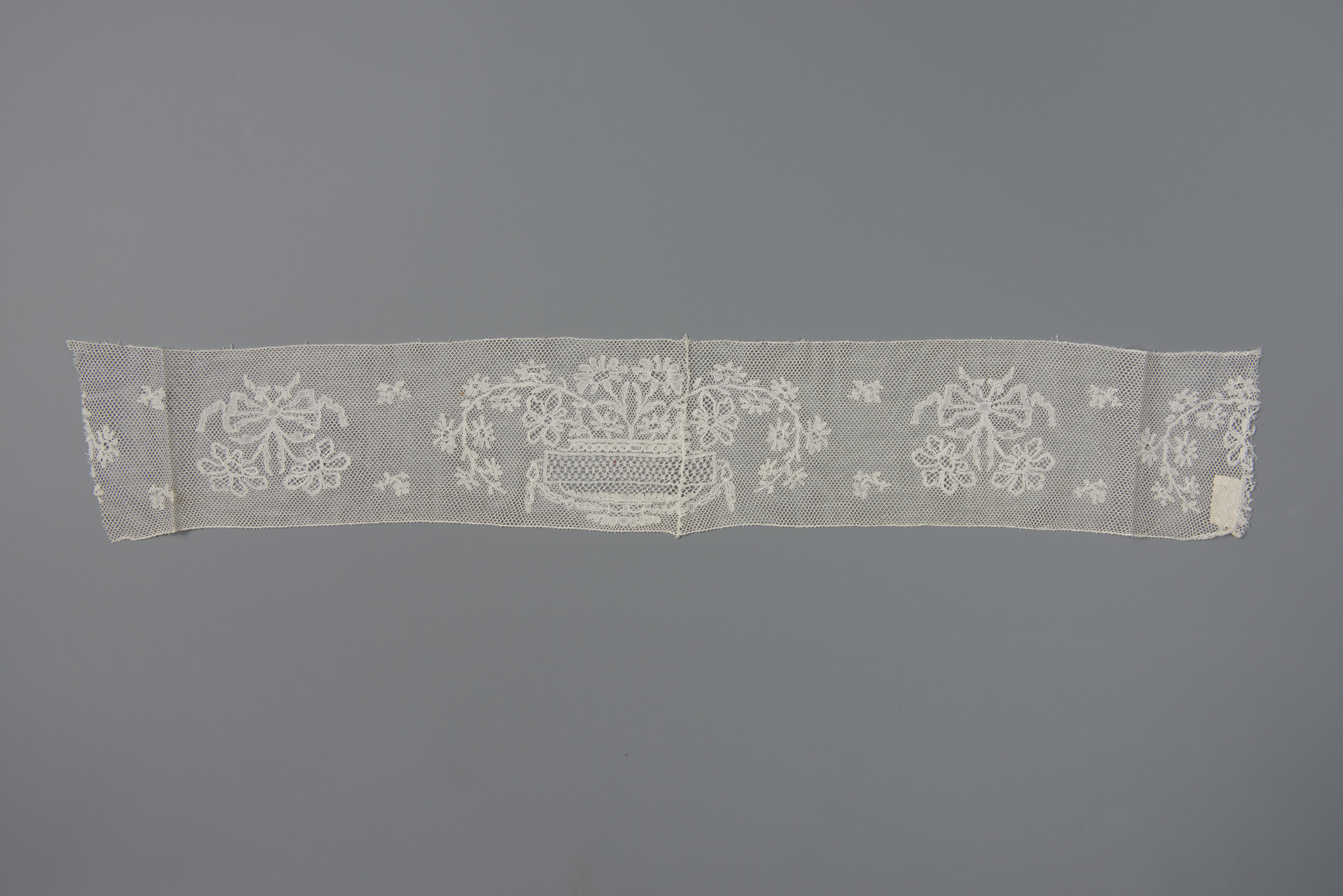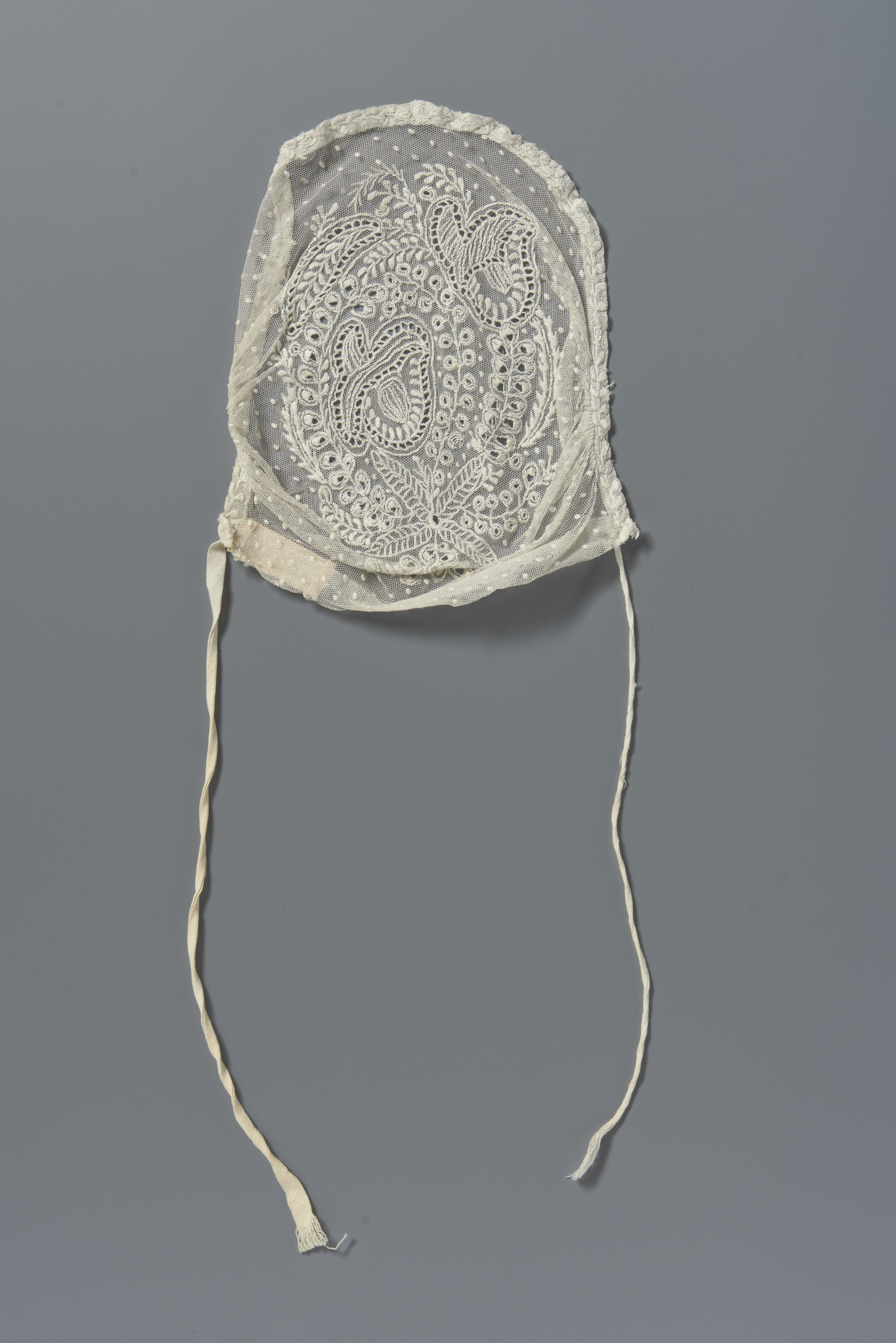 Strook van oorijzermuts met tuleborduurwerk, Barendr...