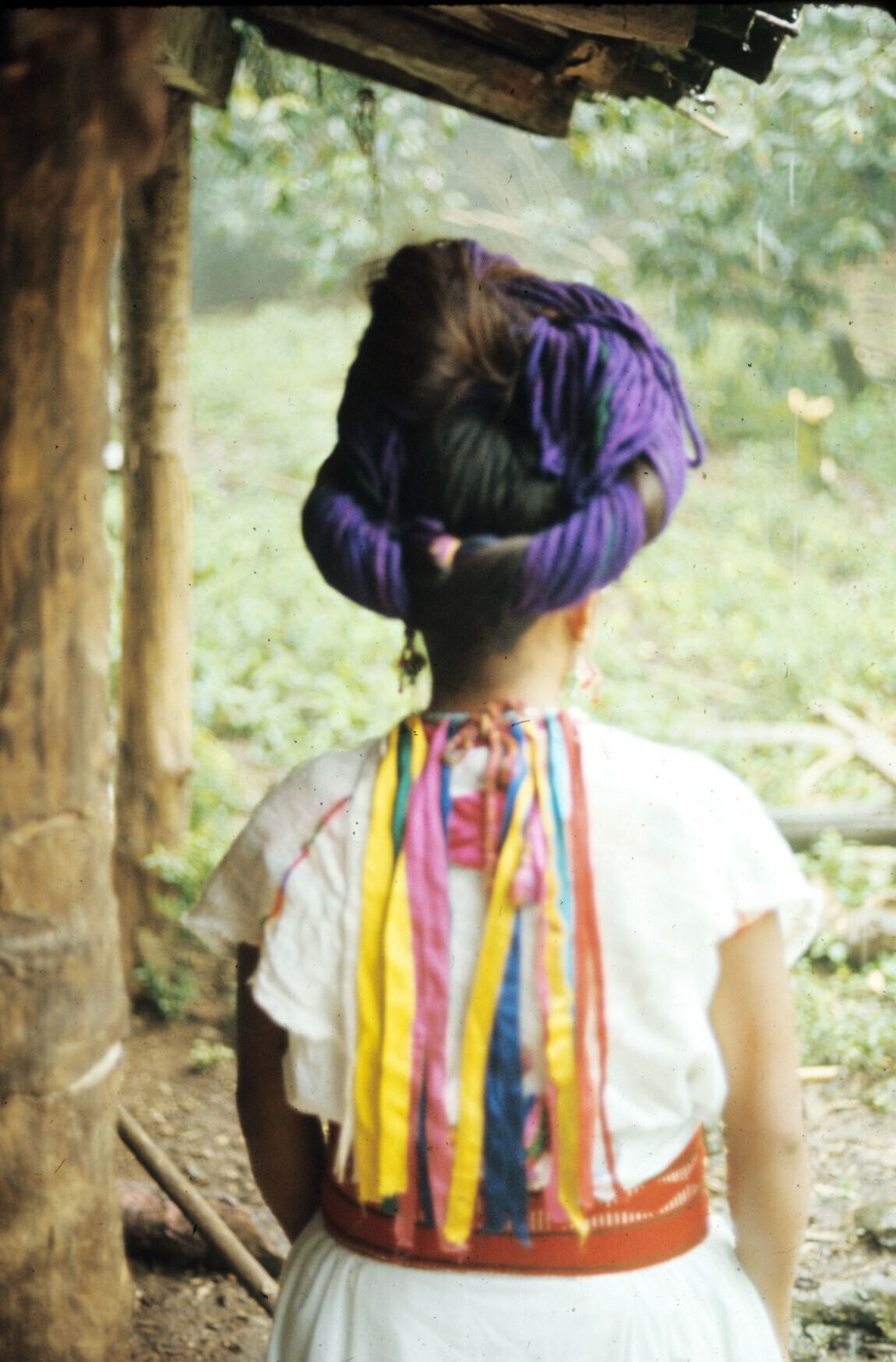 meisjes en vrouwen; NB meisje met hua'cal (draagmand)