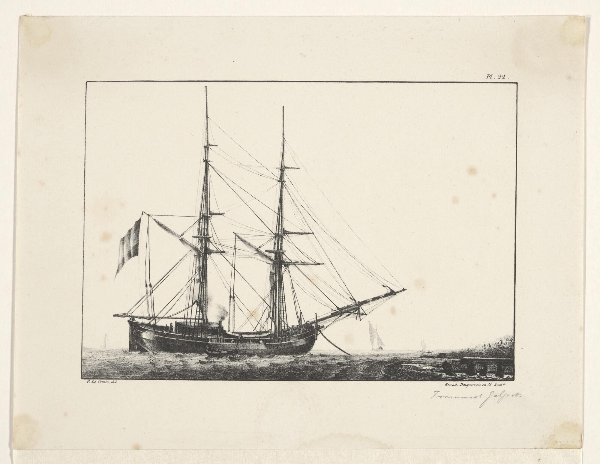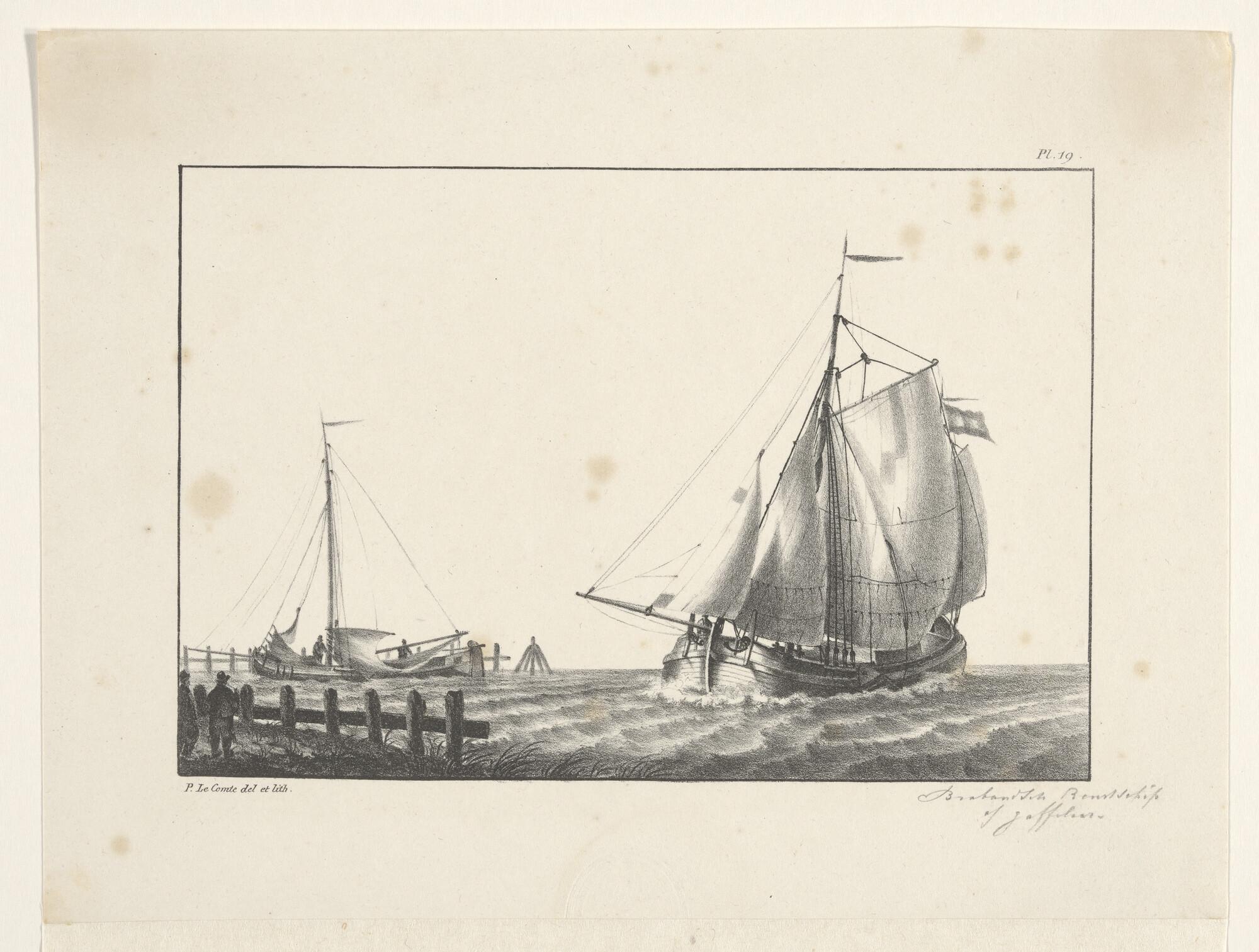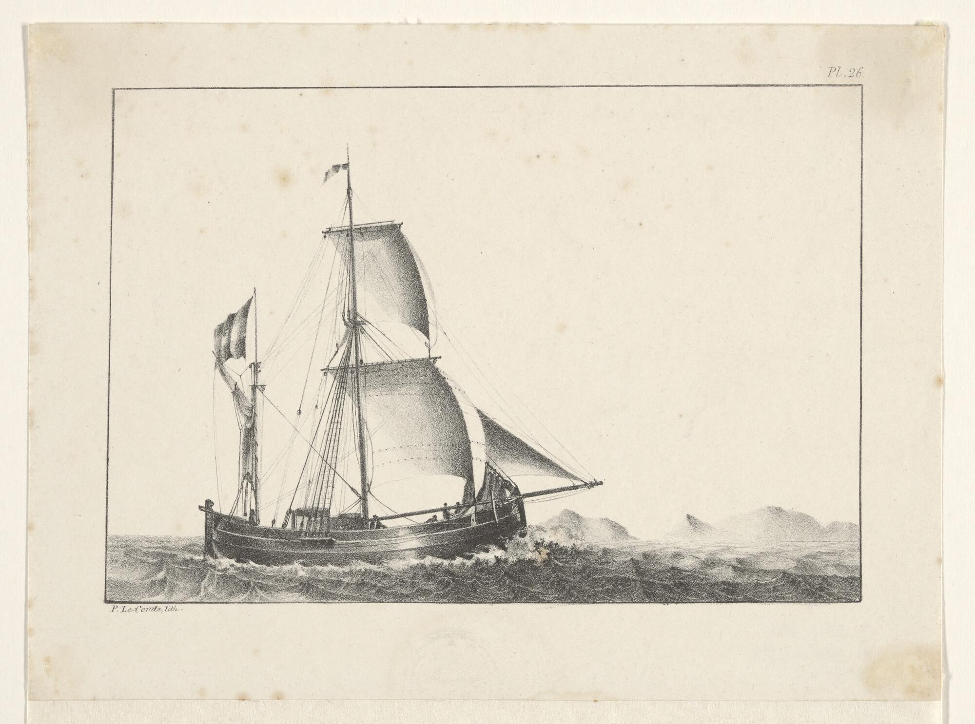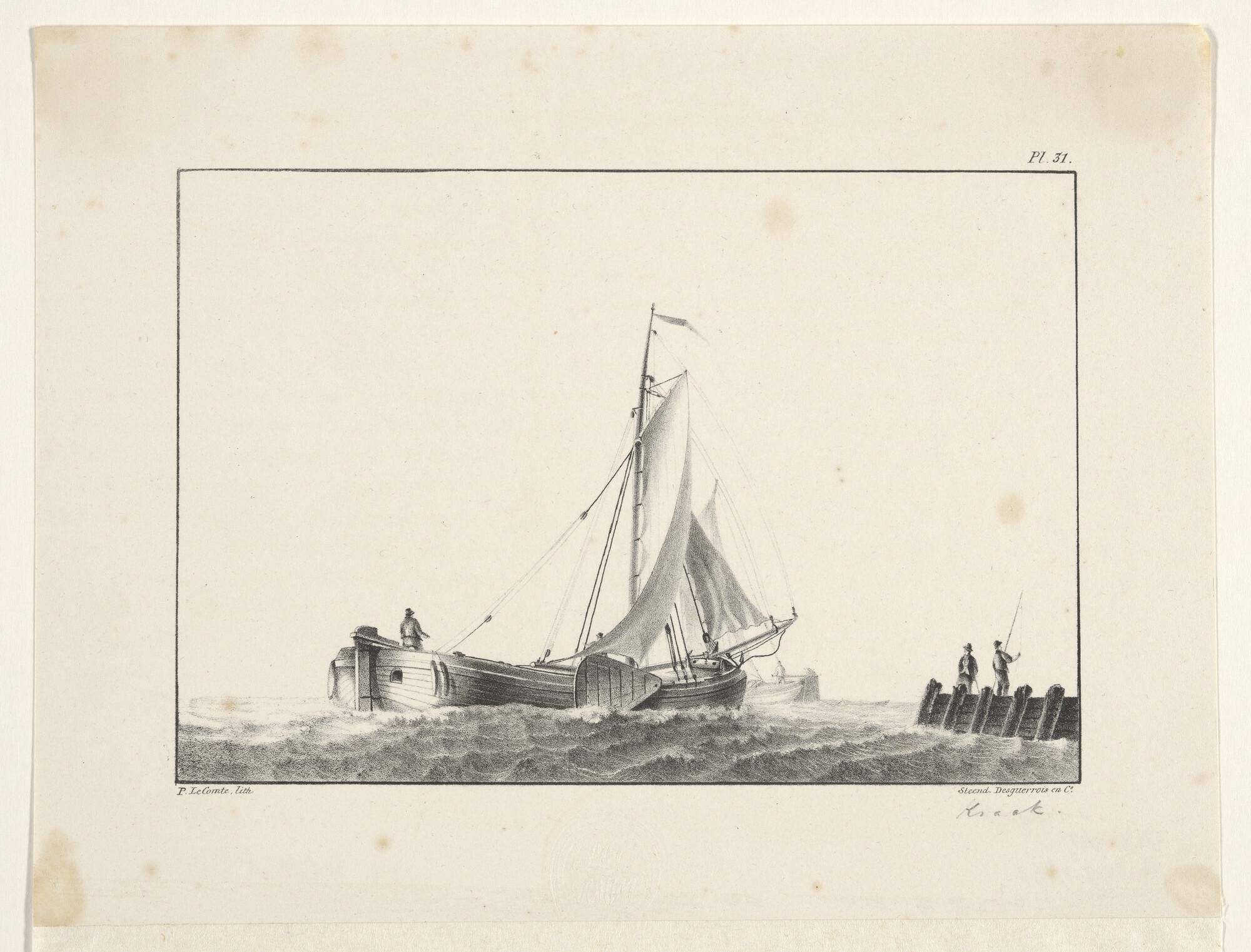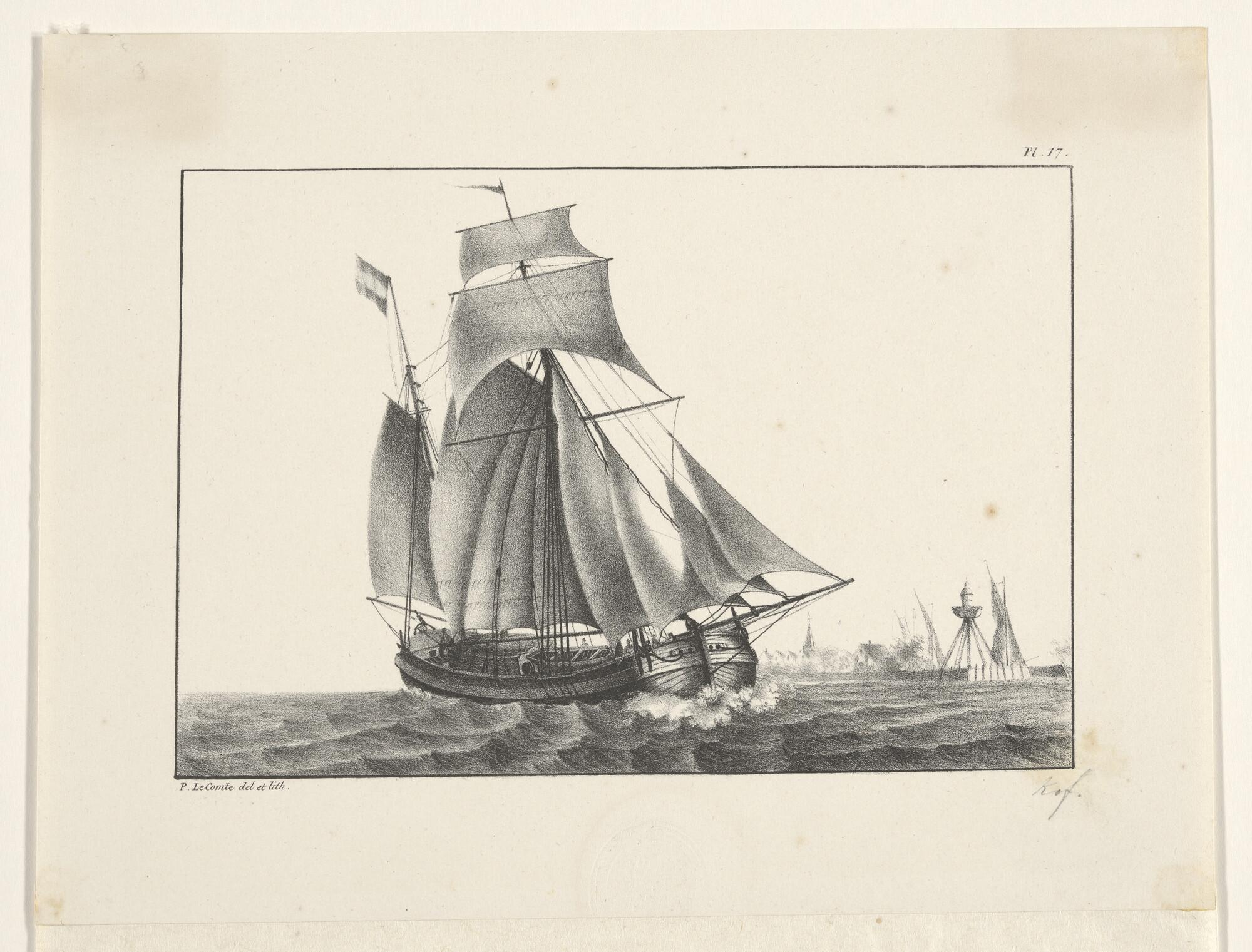 Een eenmast koopvaardij-hoeker