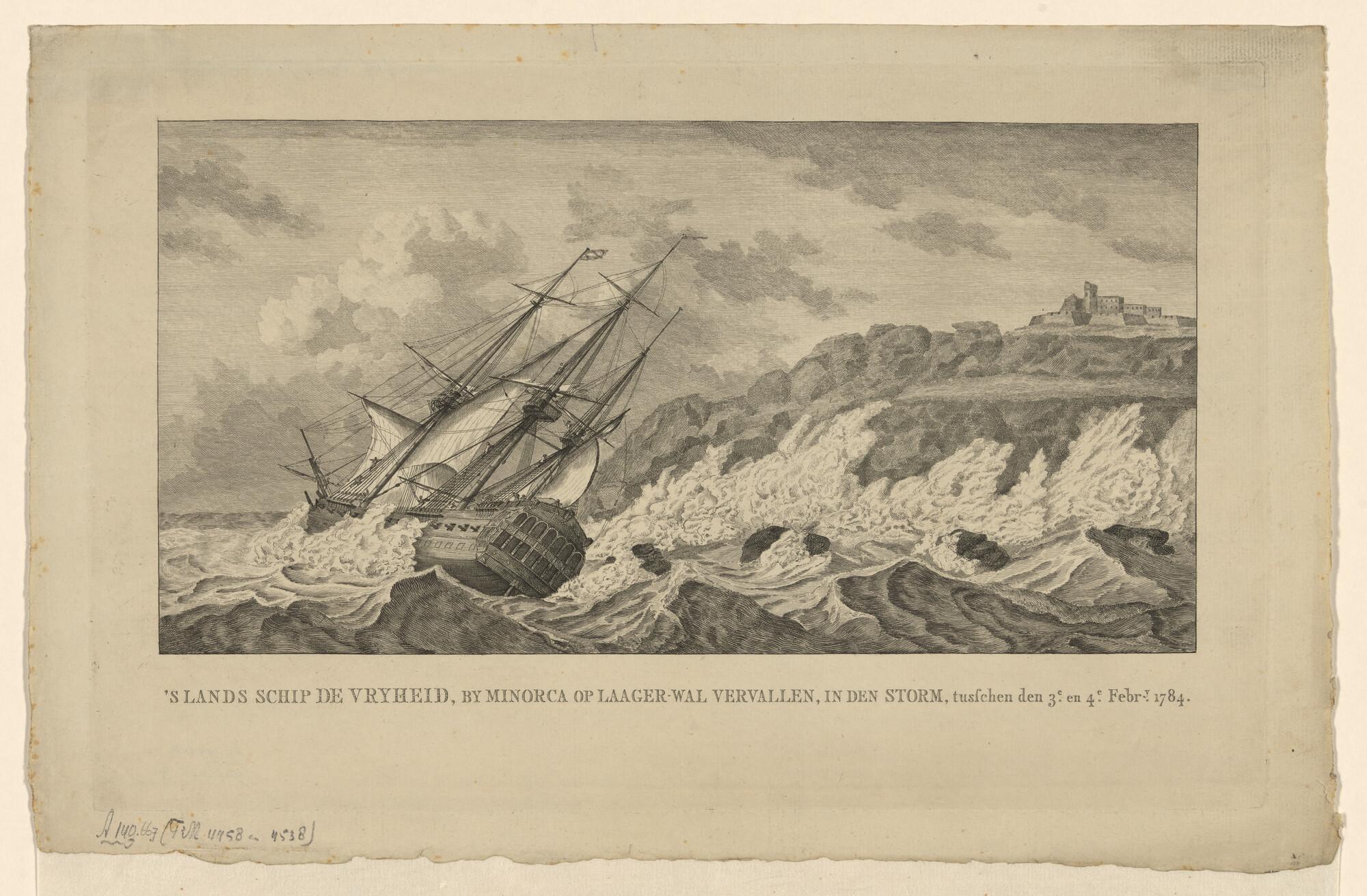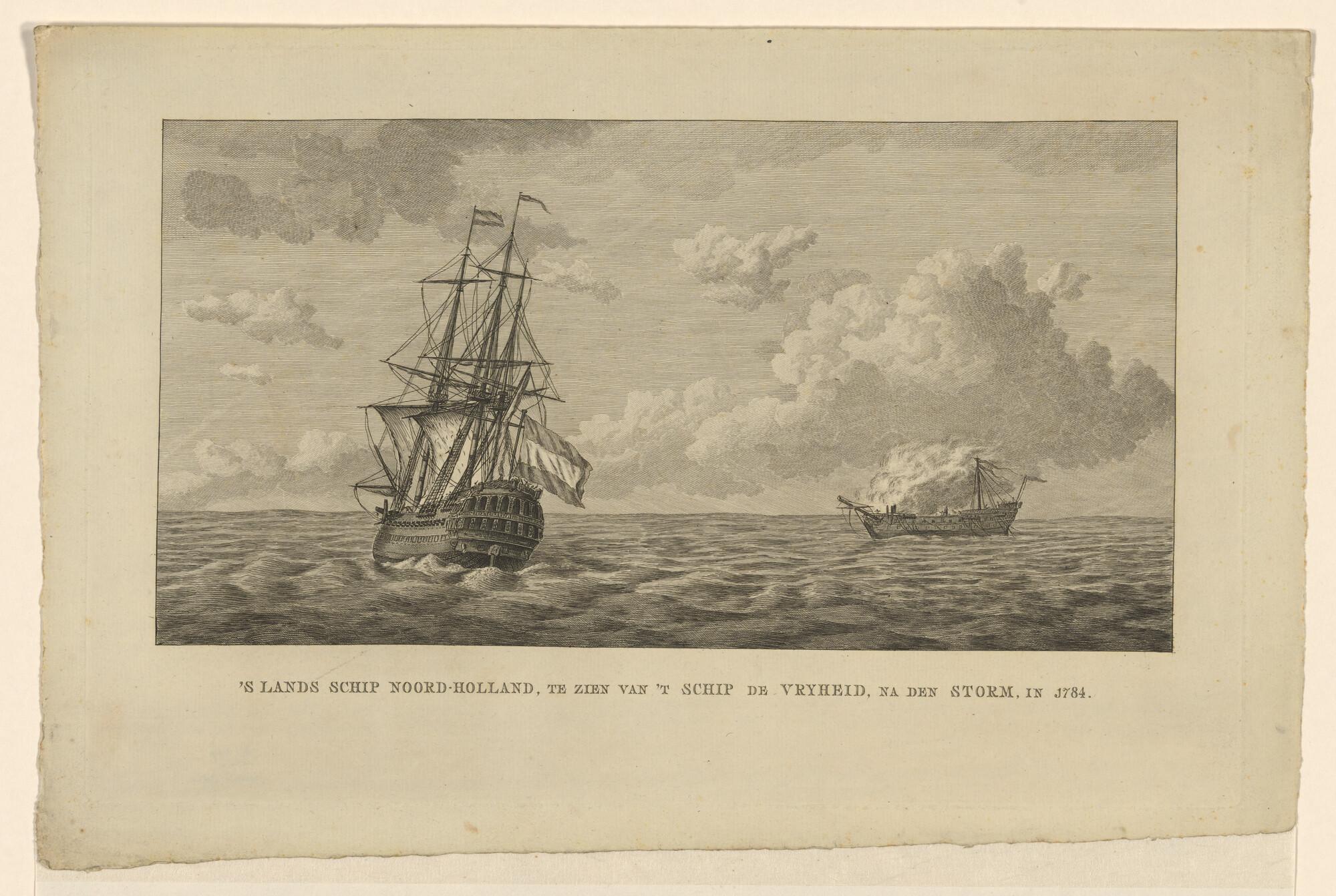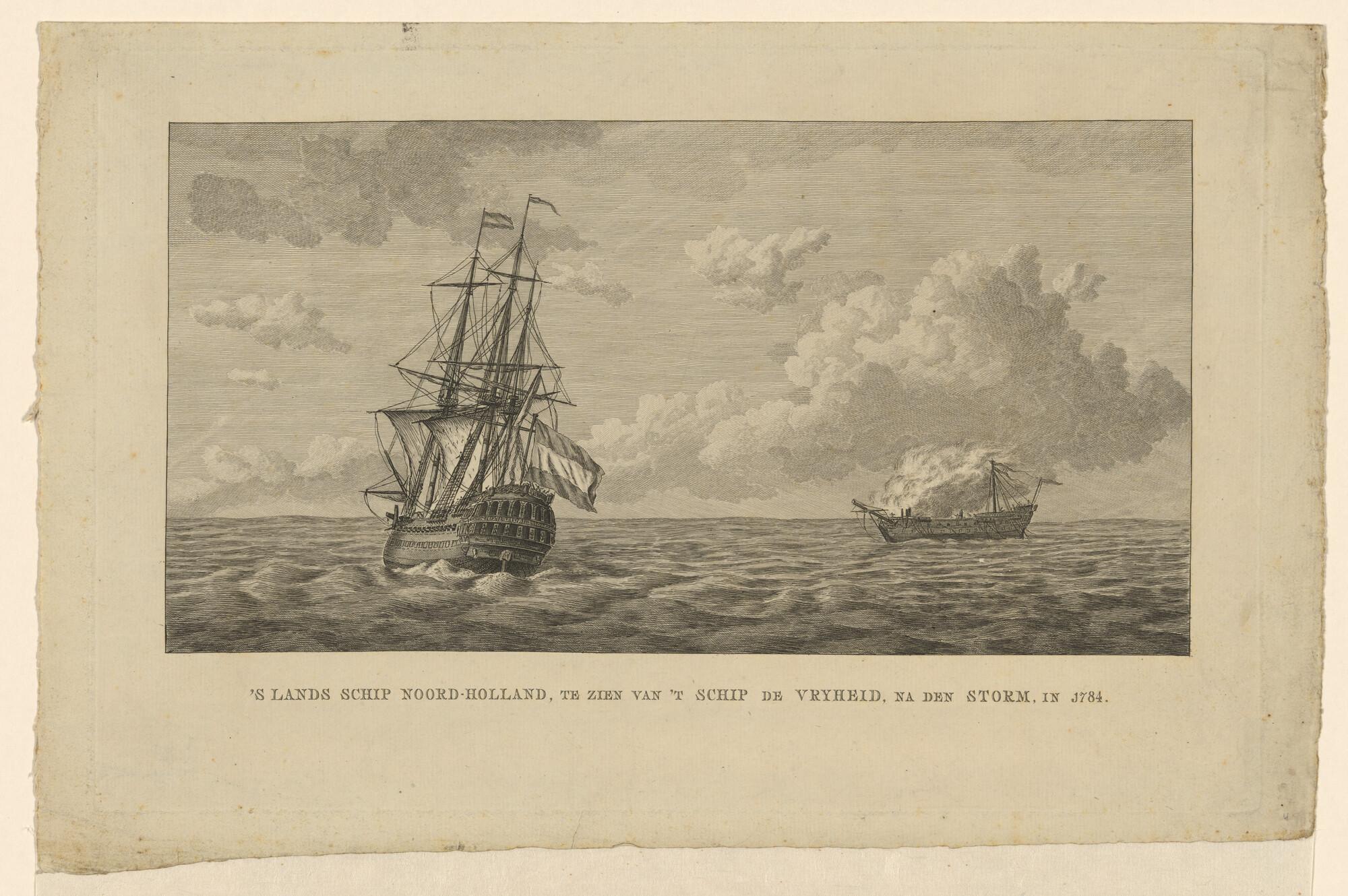 Het oorlogsschip 'Noord-Holland', na de storm in 1784