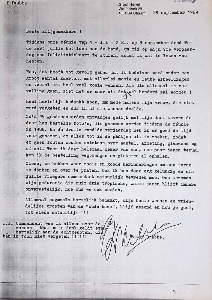 Aan de reünisten van 1-3-2 R.I 1e Divisie 7 December...