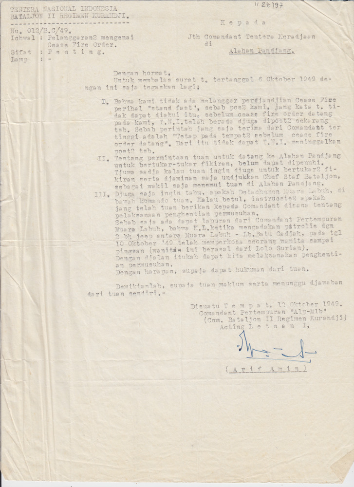 Cease Fire Order in het Indonesisch
