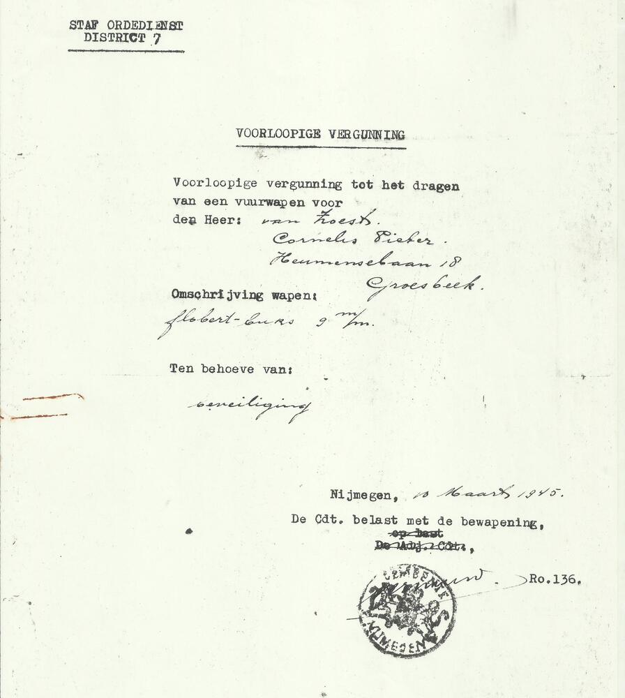 Bewijs van goed gedrag van de stad Nijmegen van J. v...
