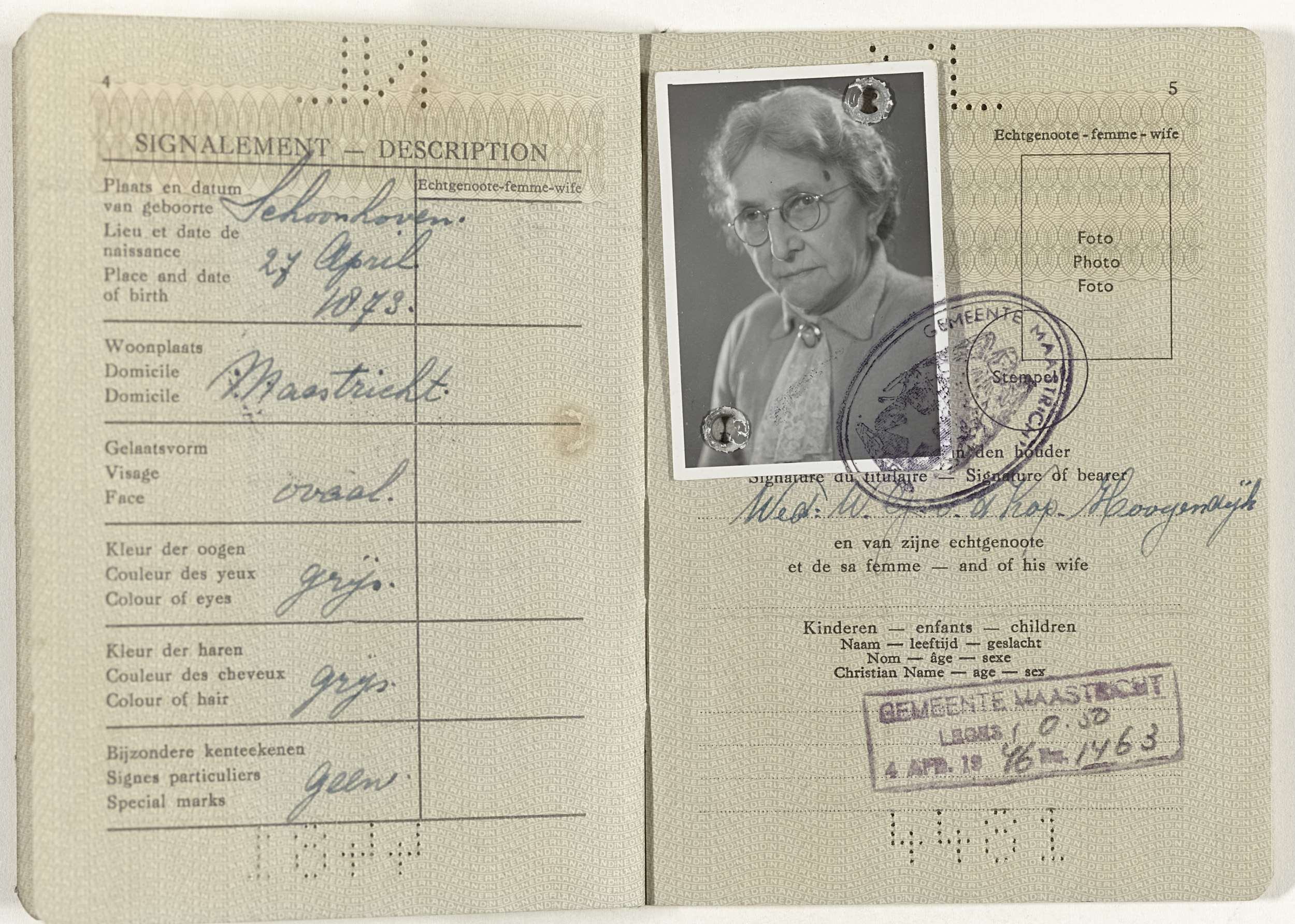 Paspoort van Wilhelmina Gerarda Hoogendijk