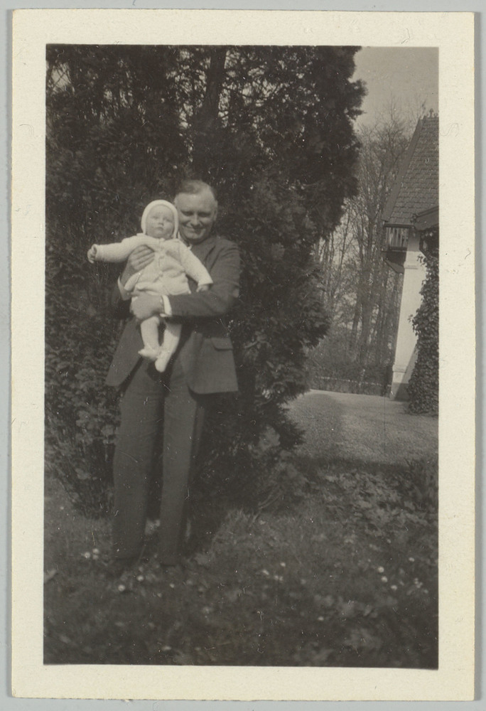 Man met een baby voor Klein Biljoen