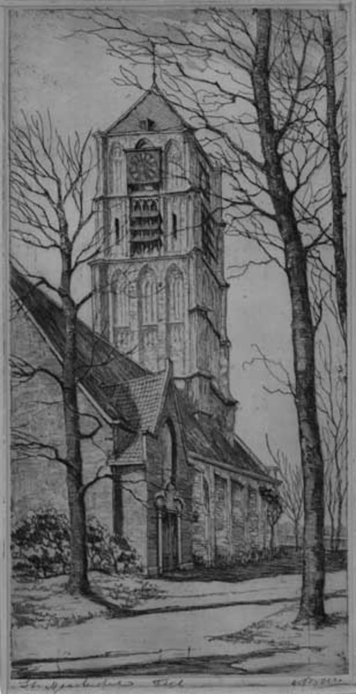Ets, voorstellende de St. Maartenskerk te Tiel, verv...