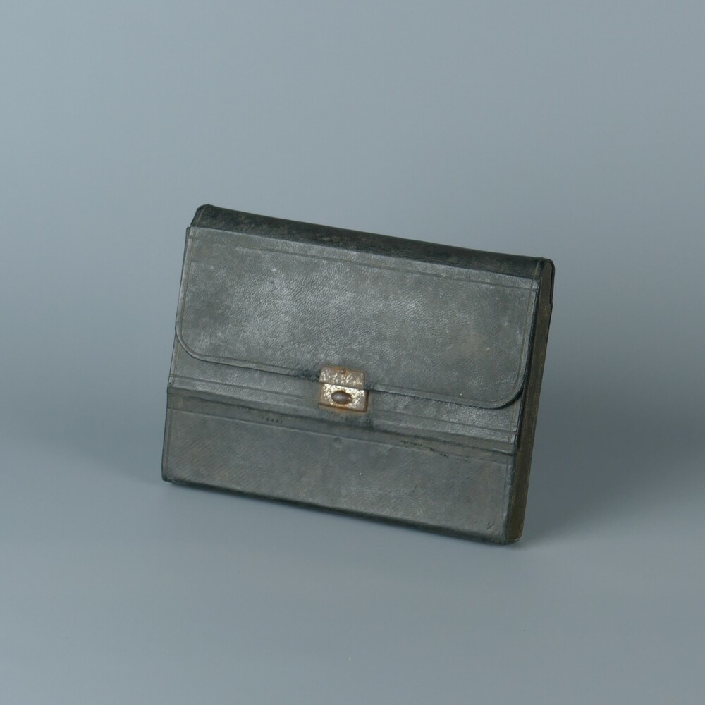 etui van leer met drukkersluiting, inhoudend 10 blan...