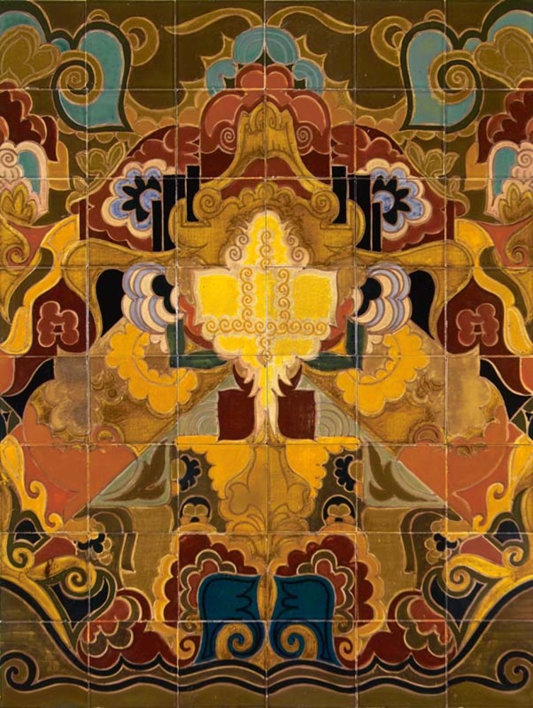 Tableau van 48 keramische tegels met een ornamenteel...