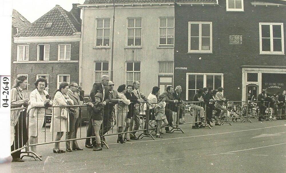Foto intocht Canadezen in Nederlandse binnenstad. Hu...