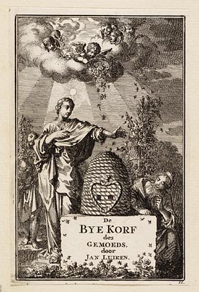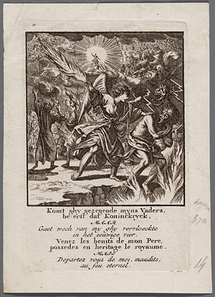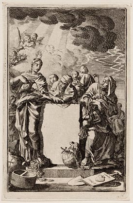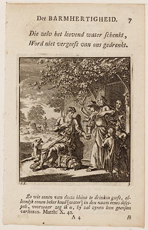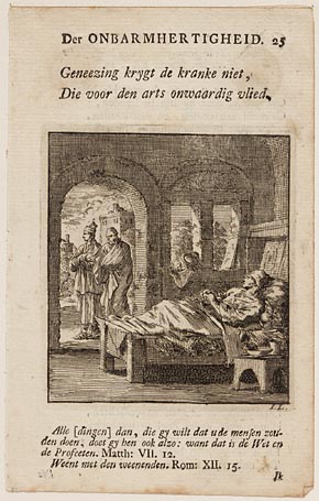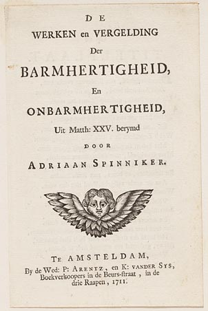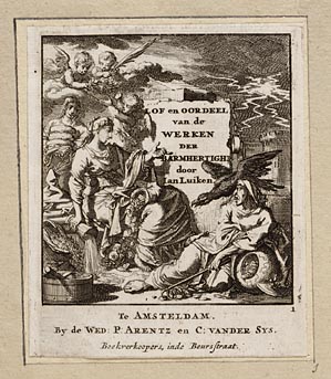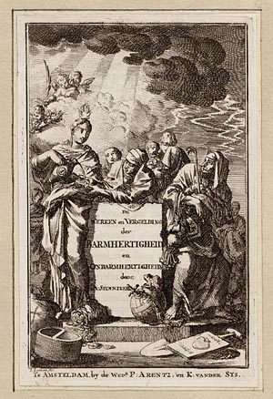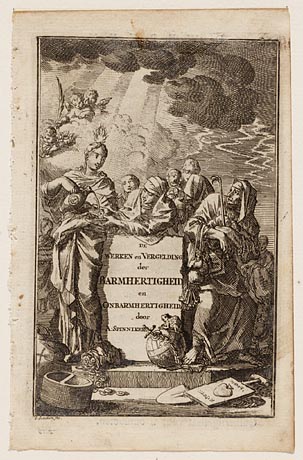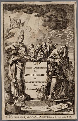 Titelprent "Lof en oordeel der werken der barmhertig...