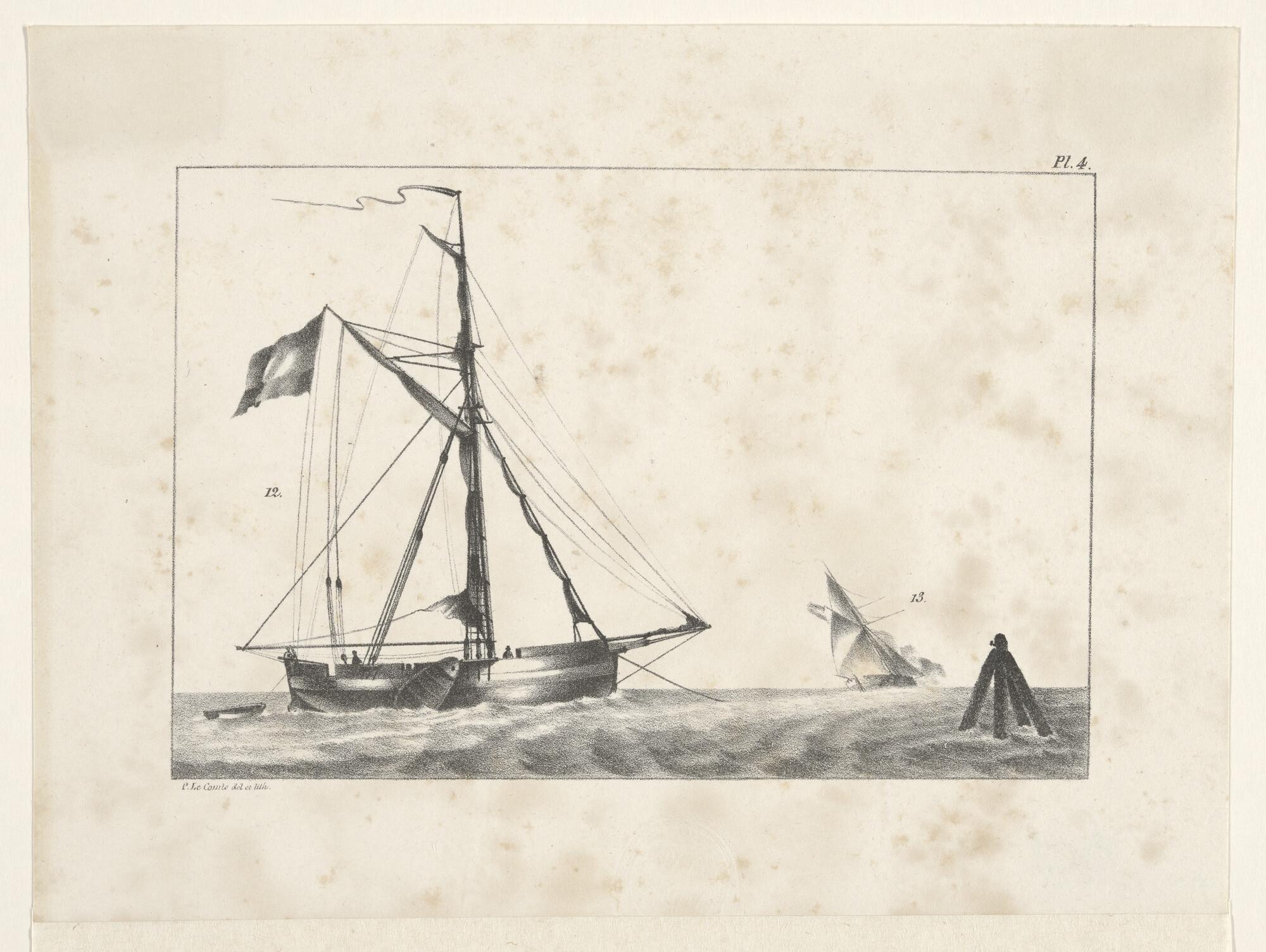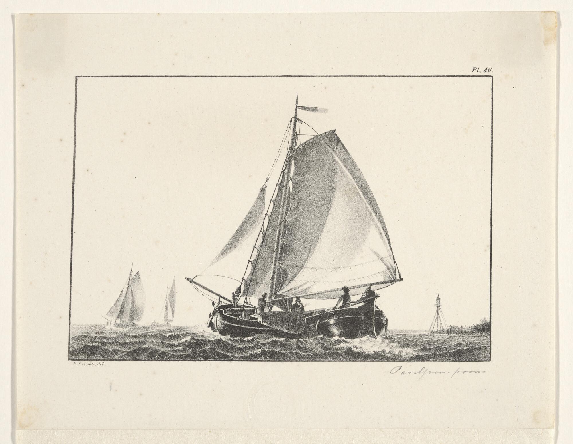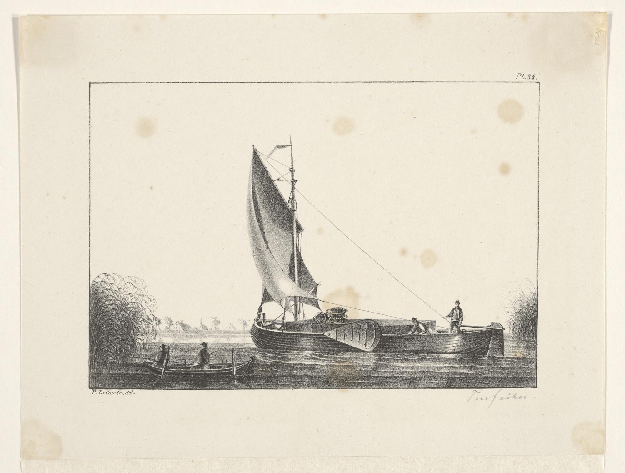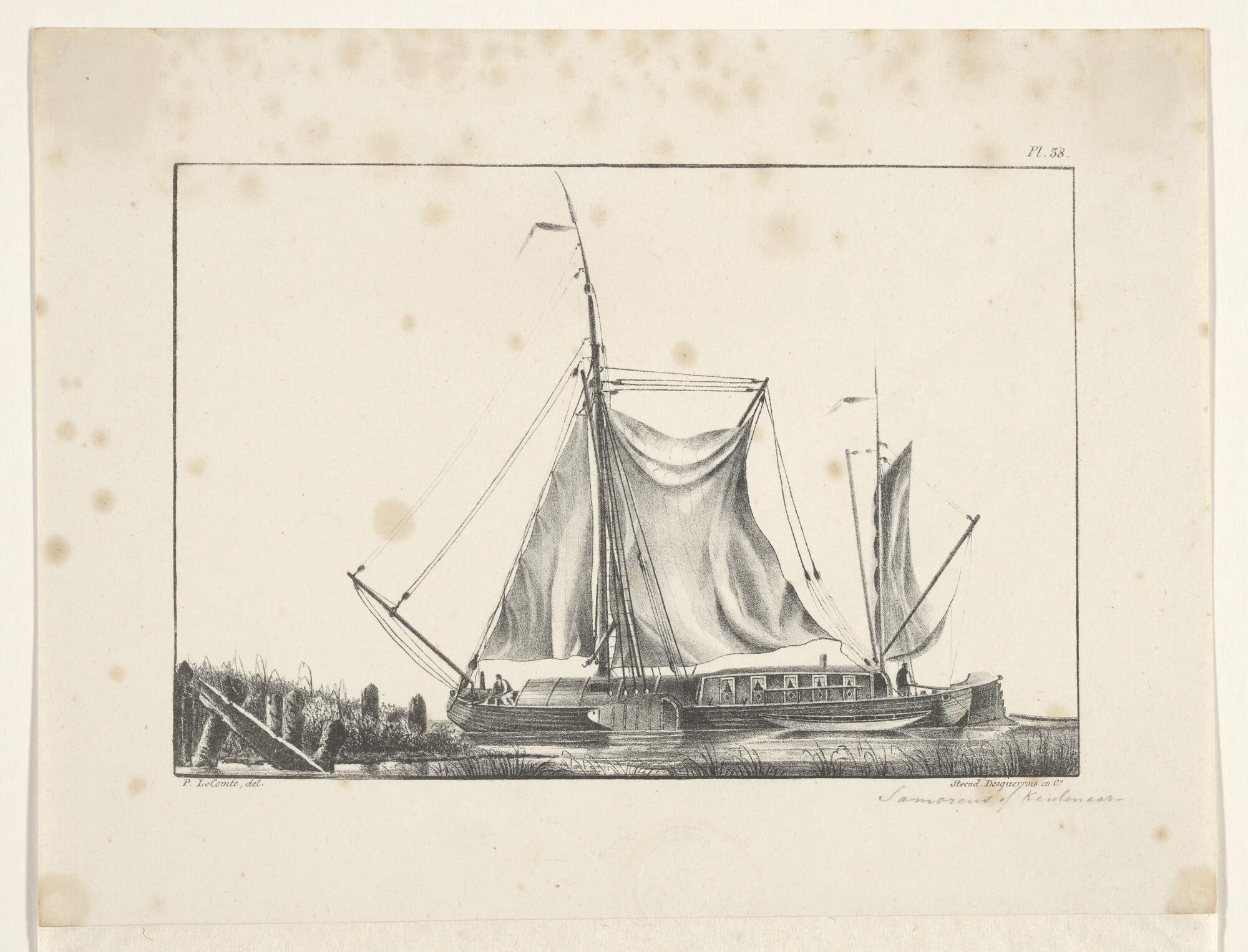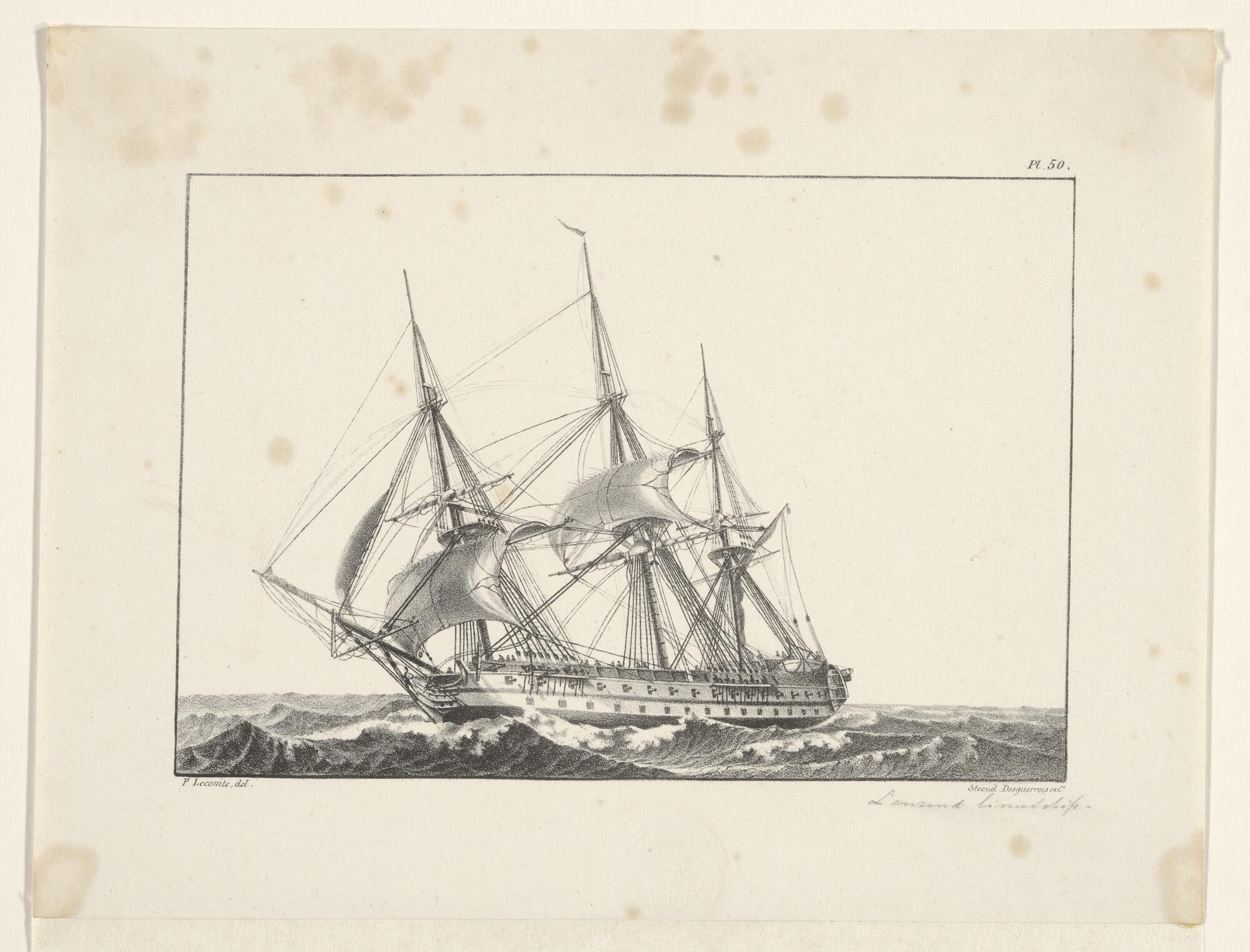 Prent van een marszeil met uitgeënterd volk op de Ra