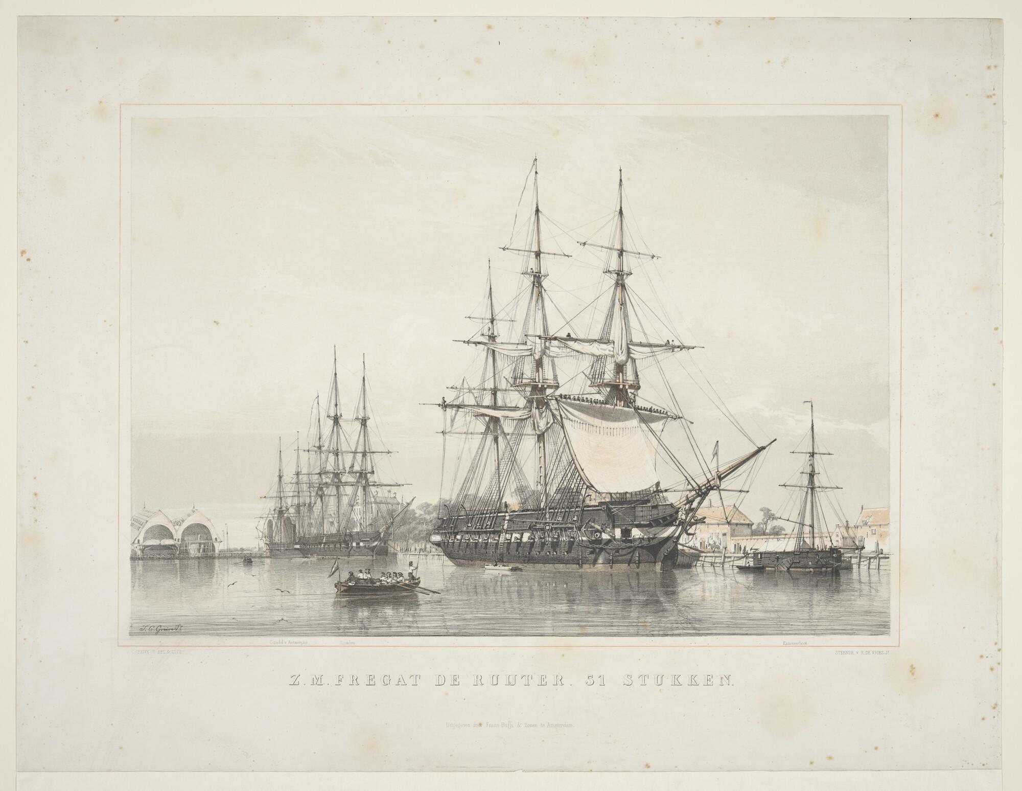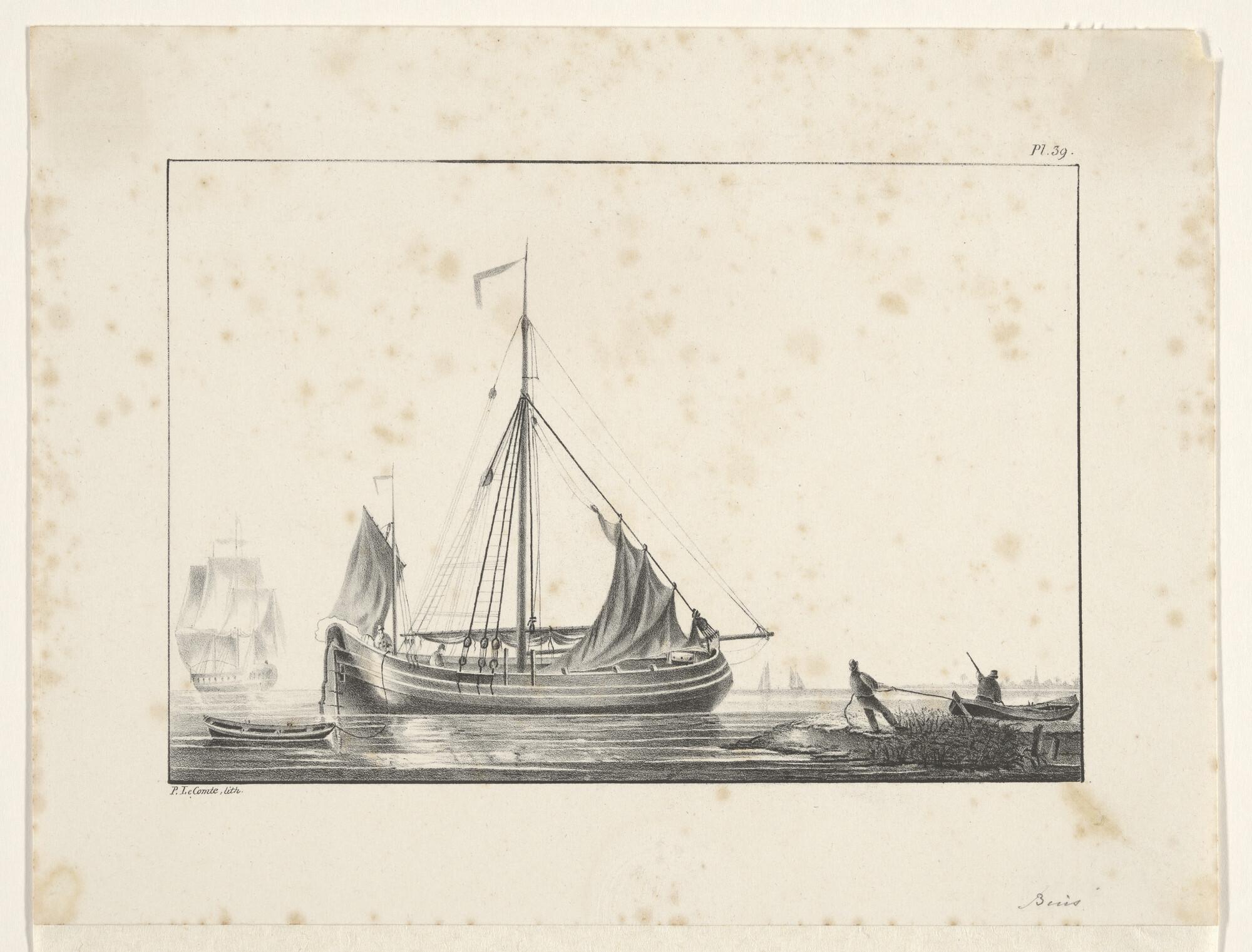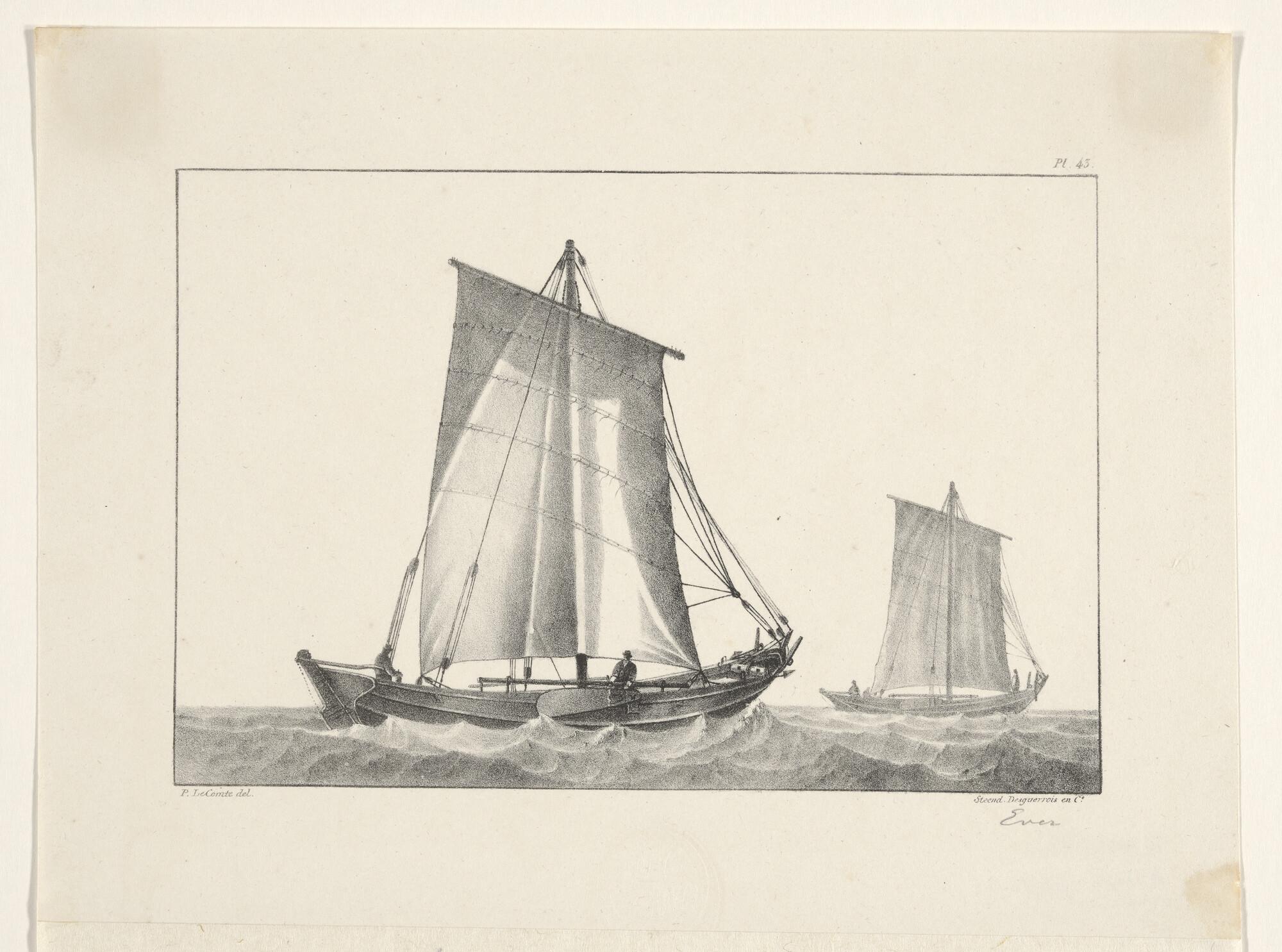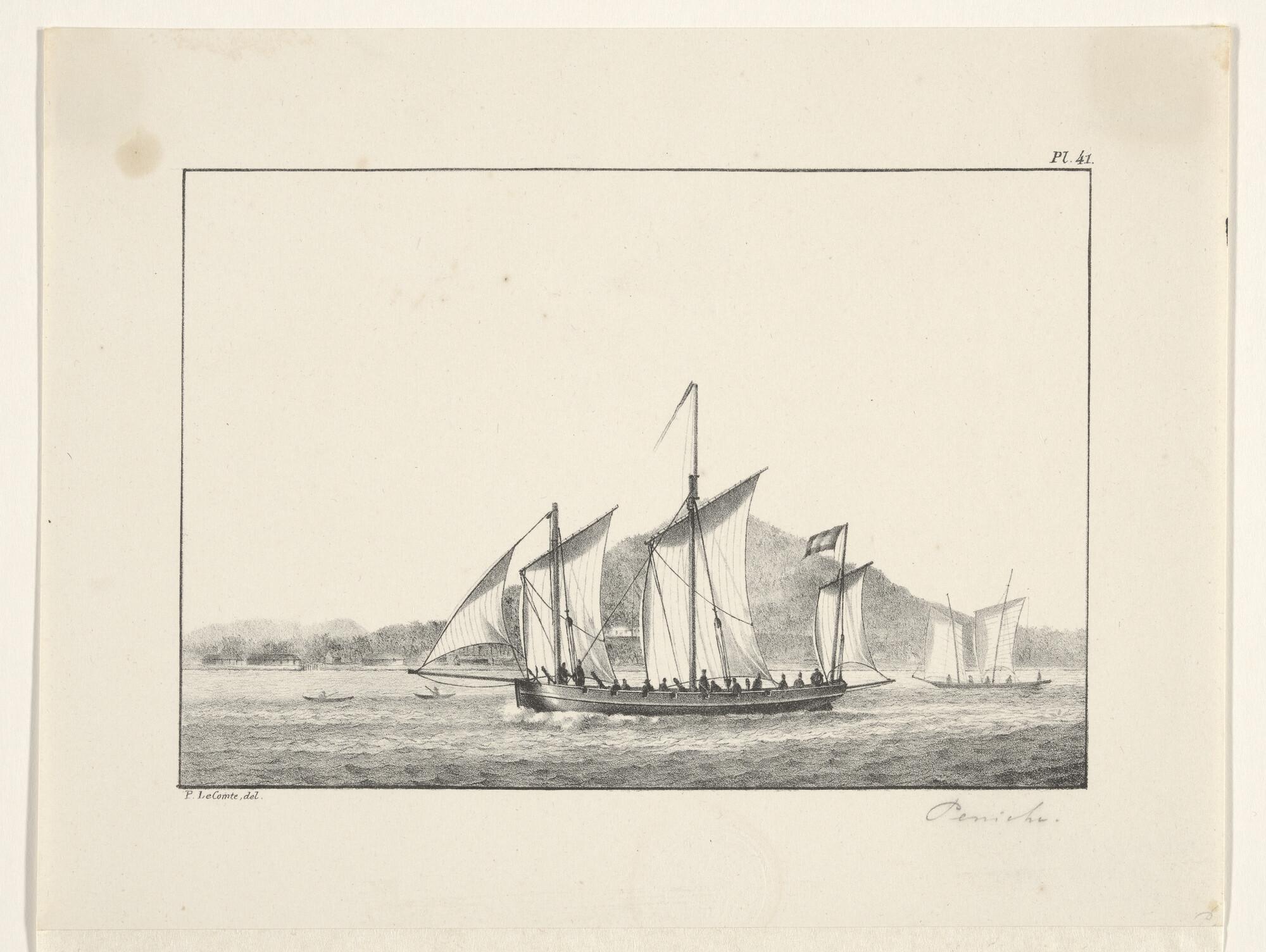 Prent van een marszeil met uitgeënterd volk op de Ra