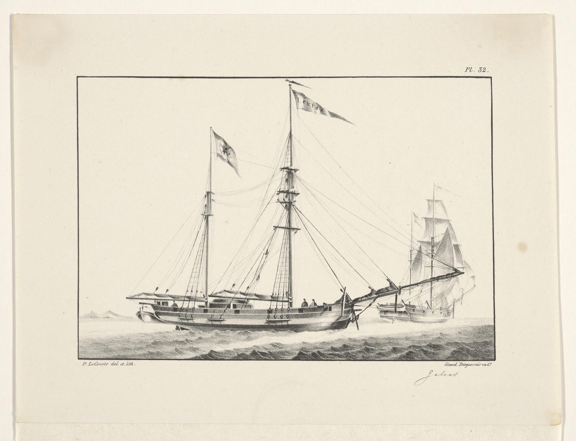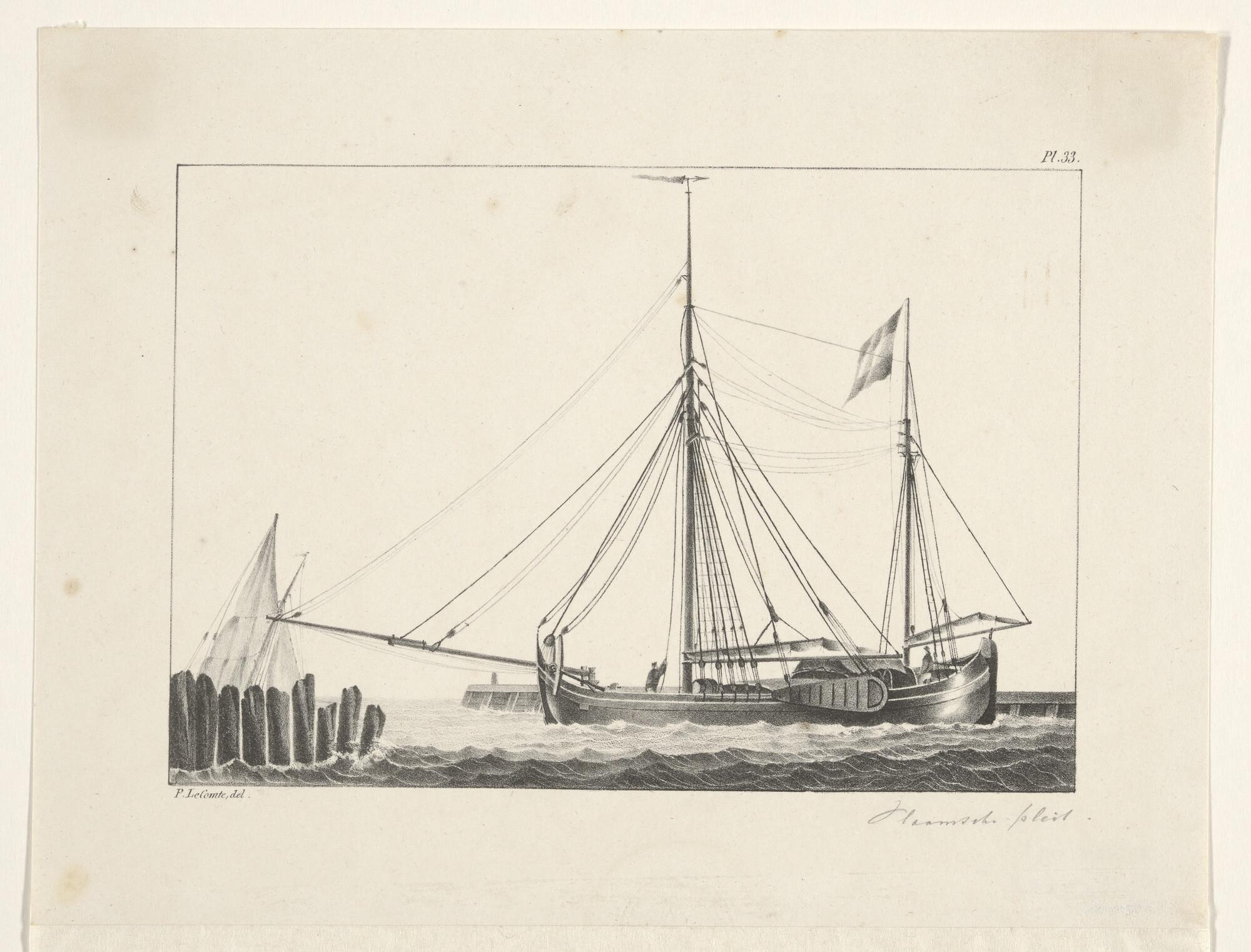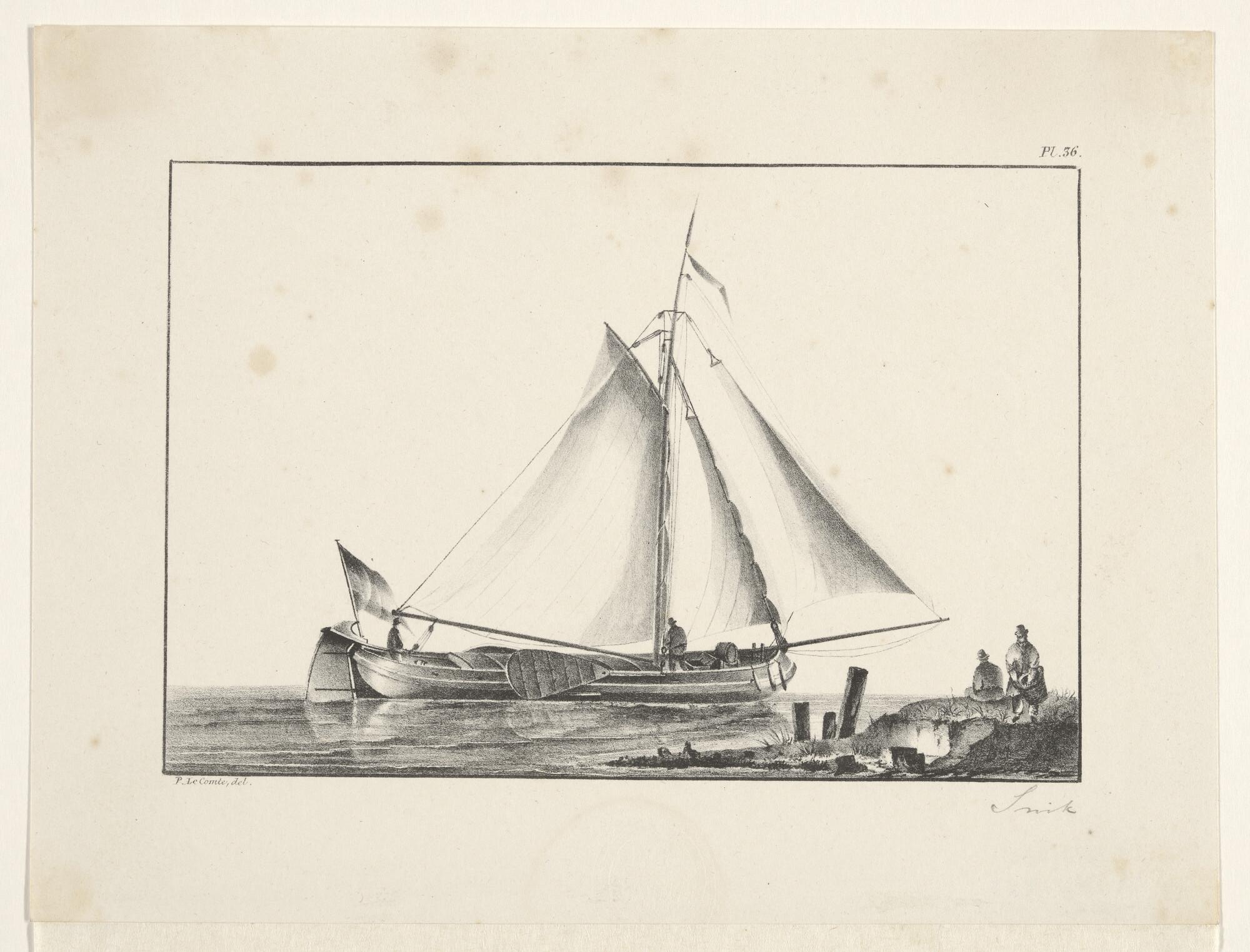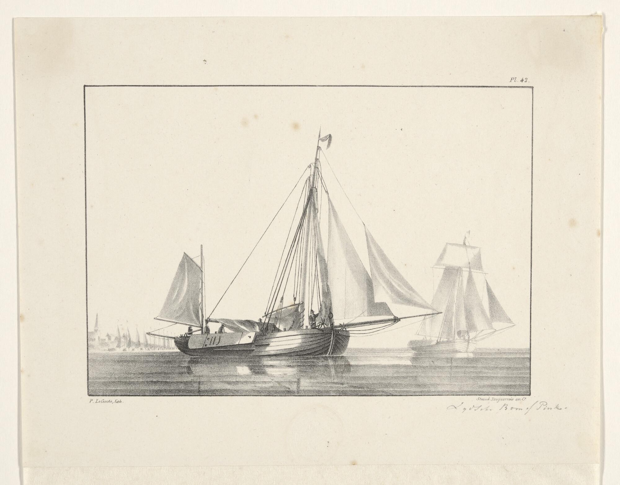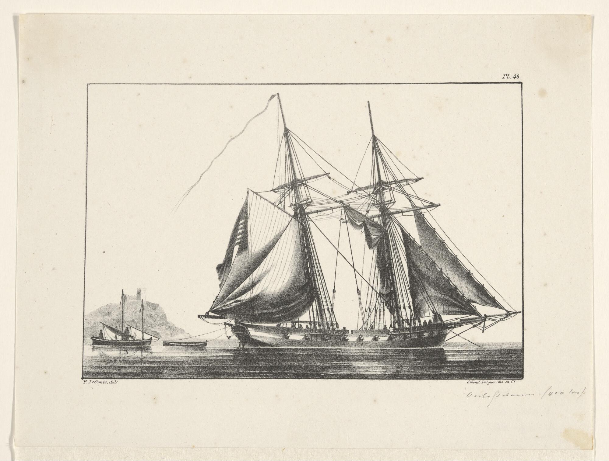 Prent van een marszeil met uitgeënterd volk op de Ra
