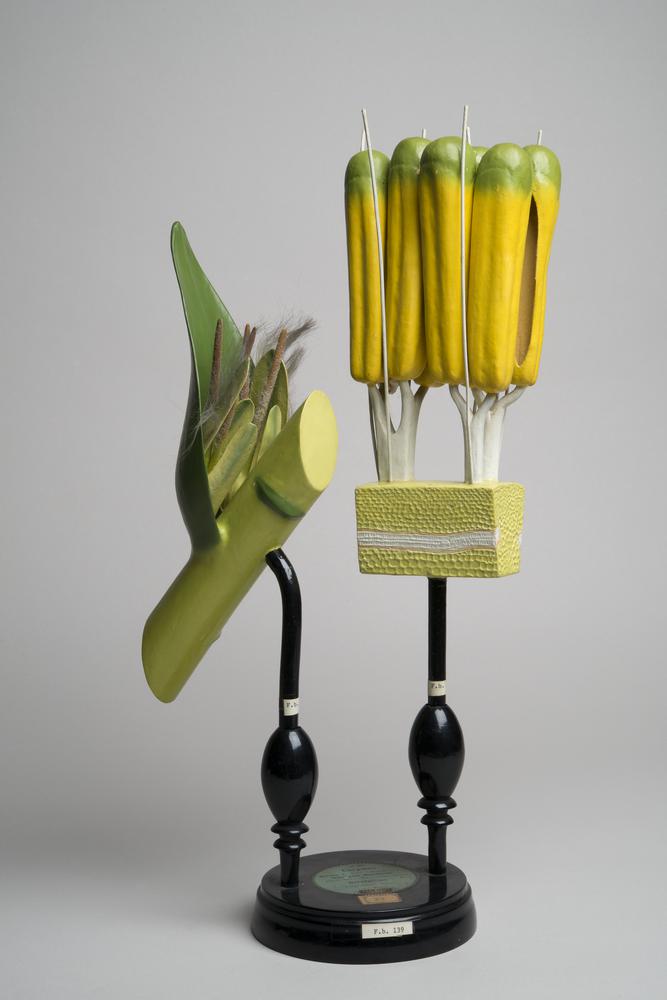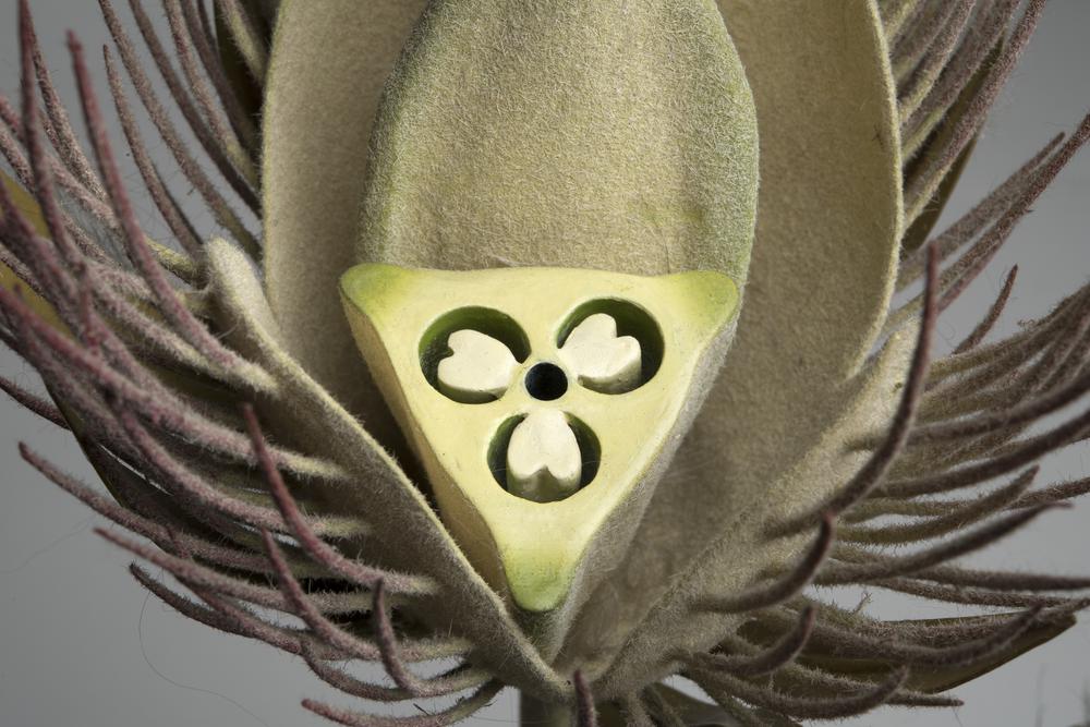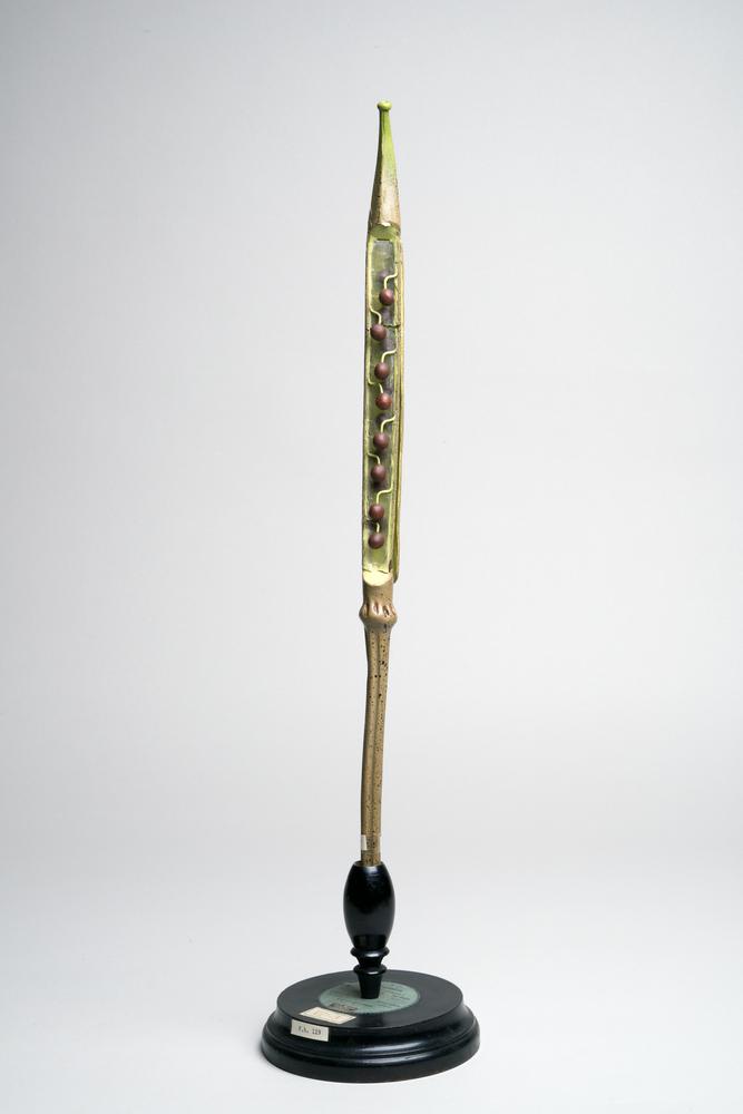 Papier-machémodel vruchtkapsel en zaad van gewone kl...