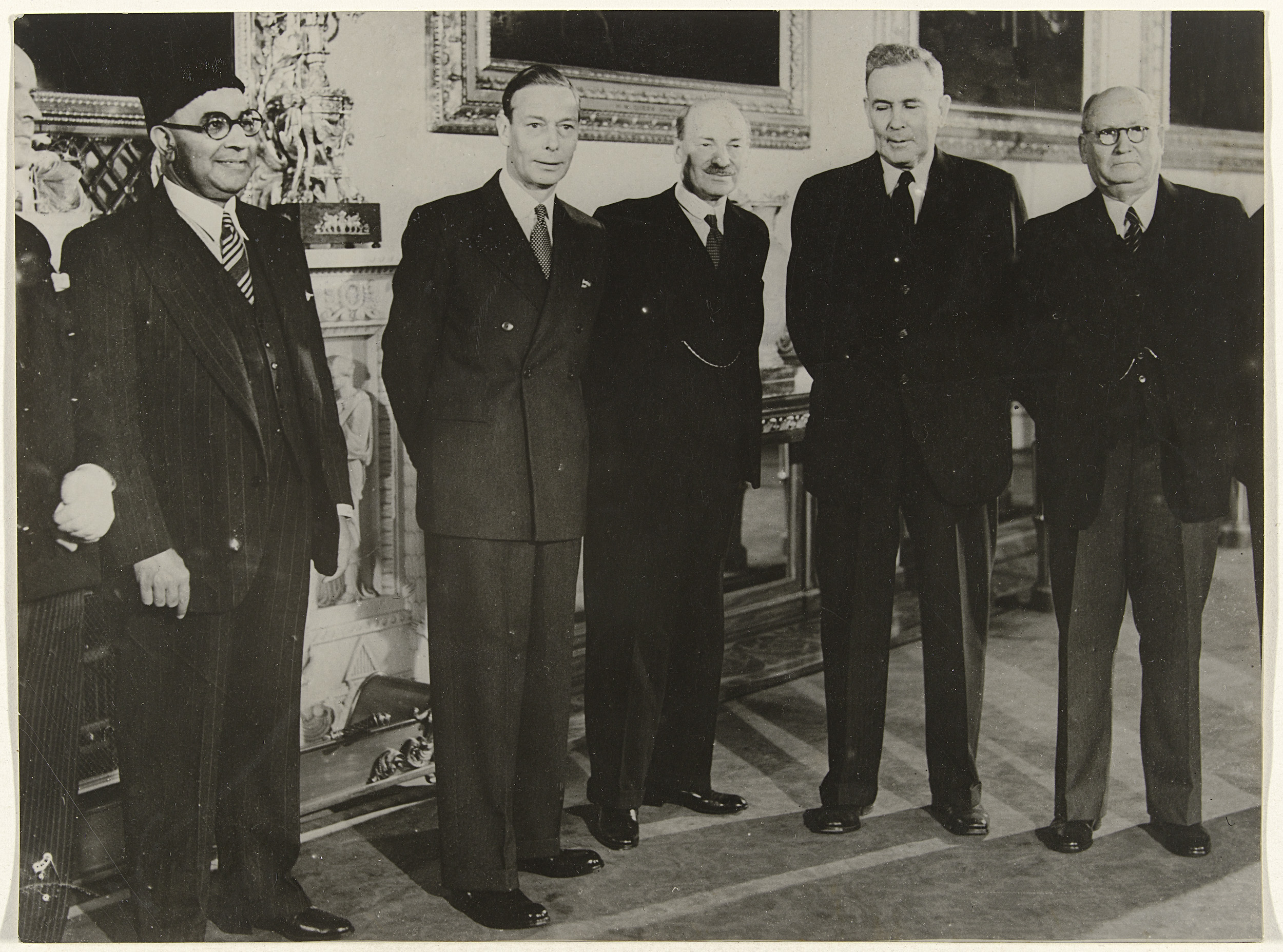 Minister presidenten Attlee, Ali Khan, Chifley en Ma...