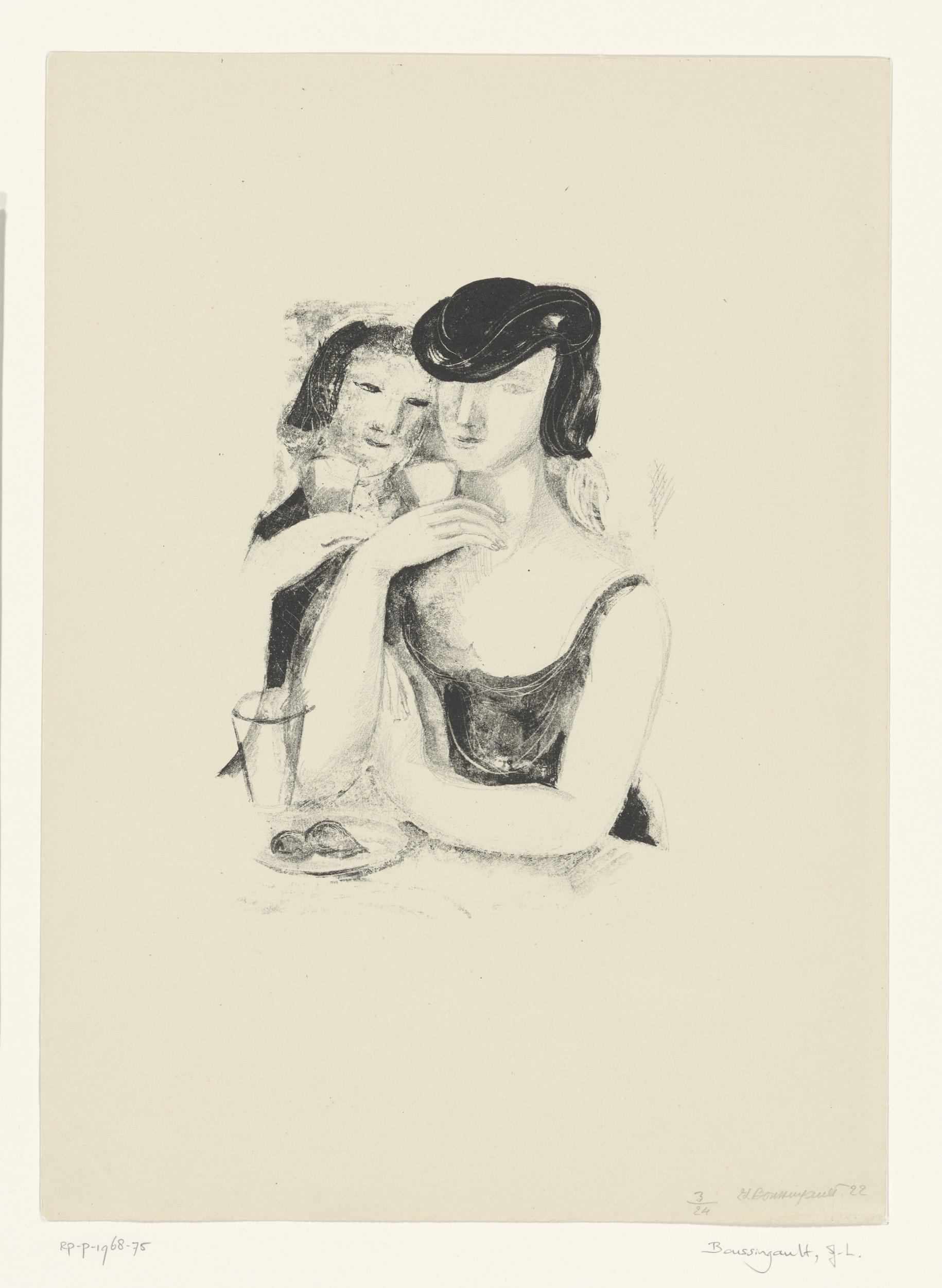 Omslag voor programmaboekje met vrouw met twee kinde...