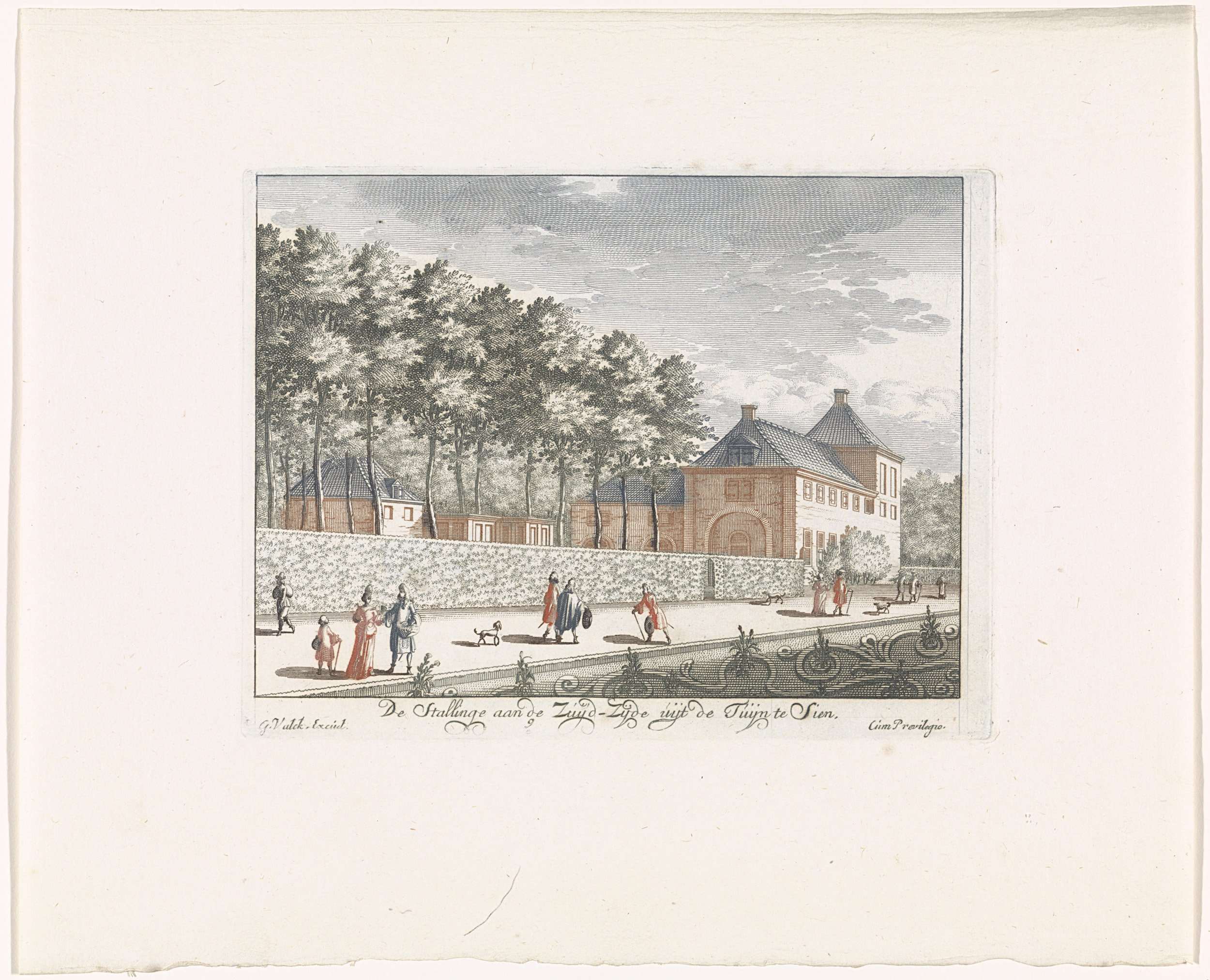 Gezicht op de stallen aan de zuidzijde van Paleis So...