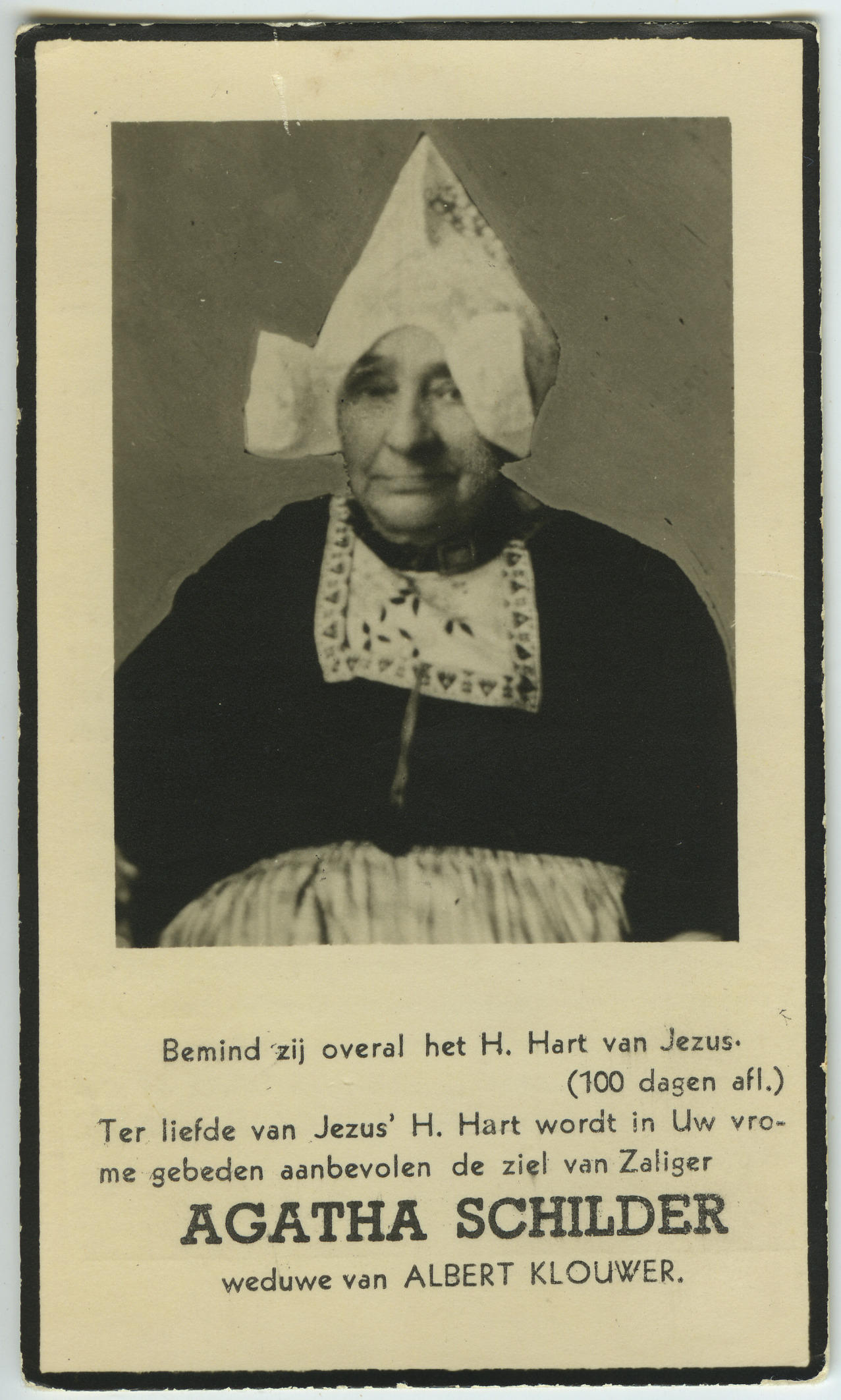 Bidprentje van Agatha Schilder, 1952 (bidprentje)