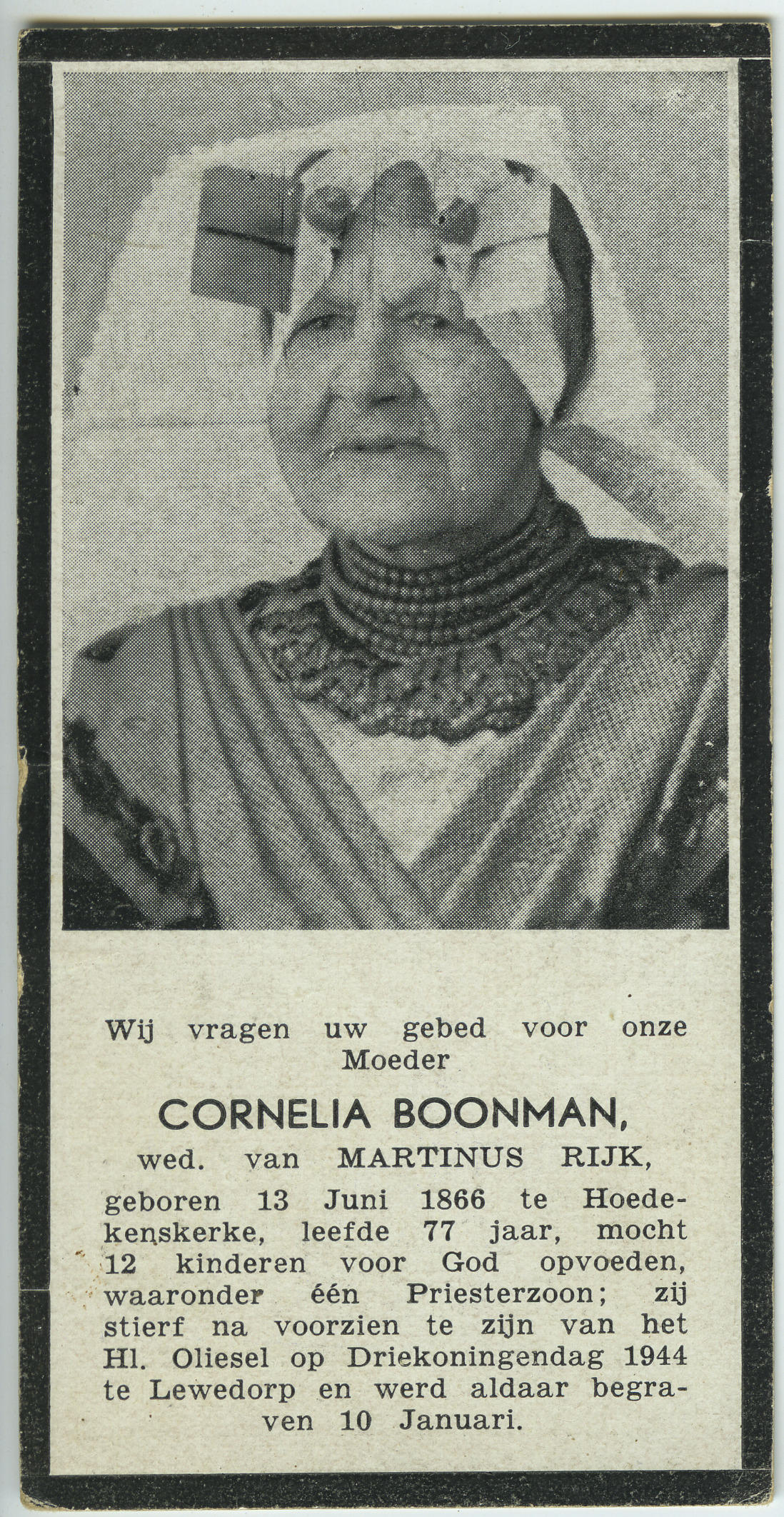 Bidprentje van Cornelia Boonman, 1944 (bidprentje)